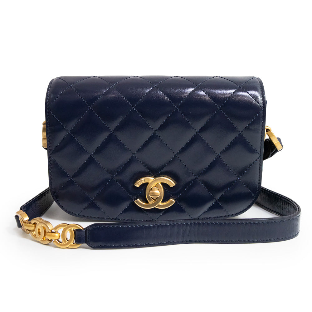 【未使用 展示品】シャネル CHANEL マトラッセ ミニ メッセンジャー ショルダーバッグ 斜め掛け シャイニーカーフスキン レザー スウェード ネイビー アンティークゴールド金具 AS3396