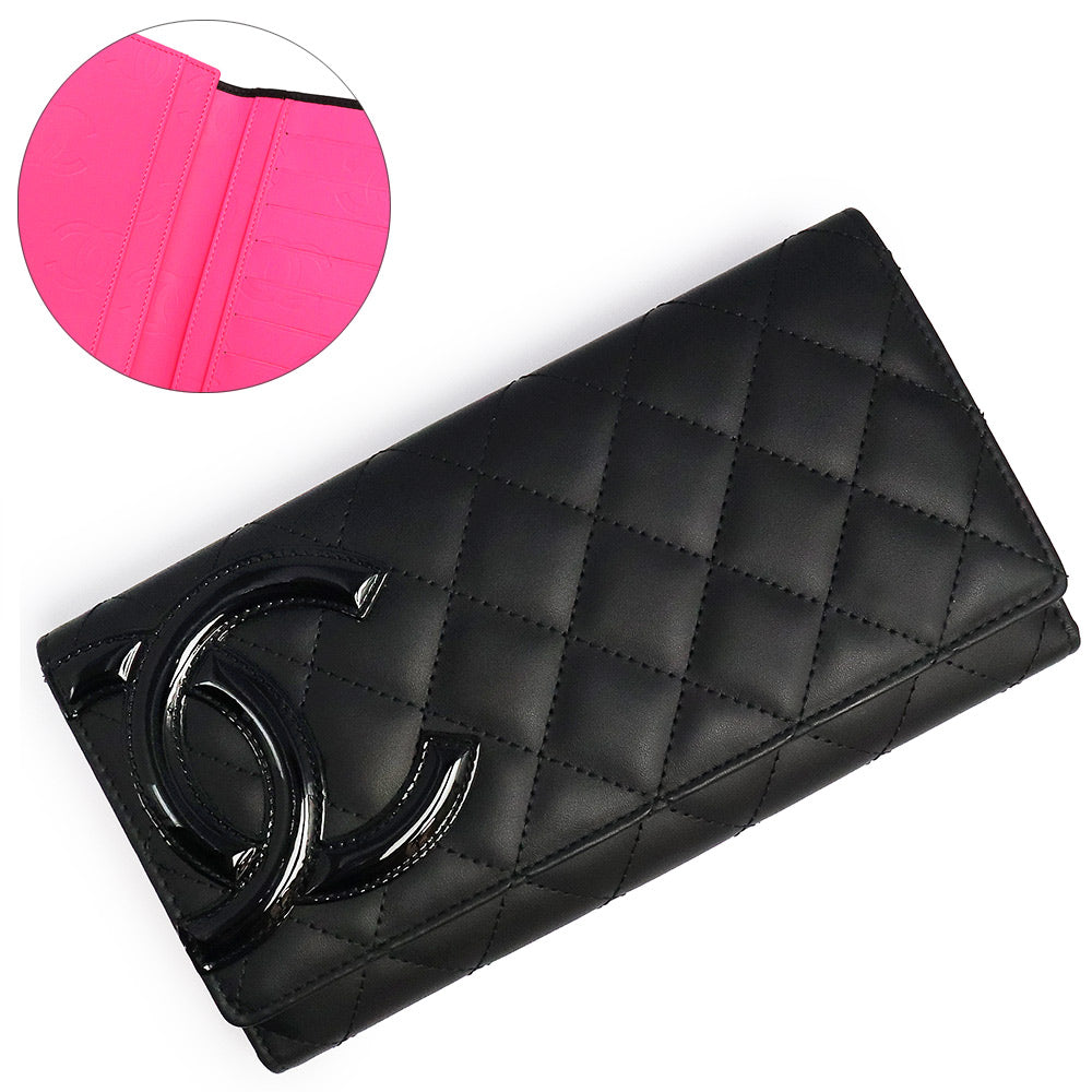 【新品・未使用品】シャネル CHANEL カンボンライン Wホック キルティングウォレット 二つ折り長財布 カーフスキン レザー ブラック ピンク シルバー金具 A46643