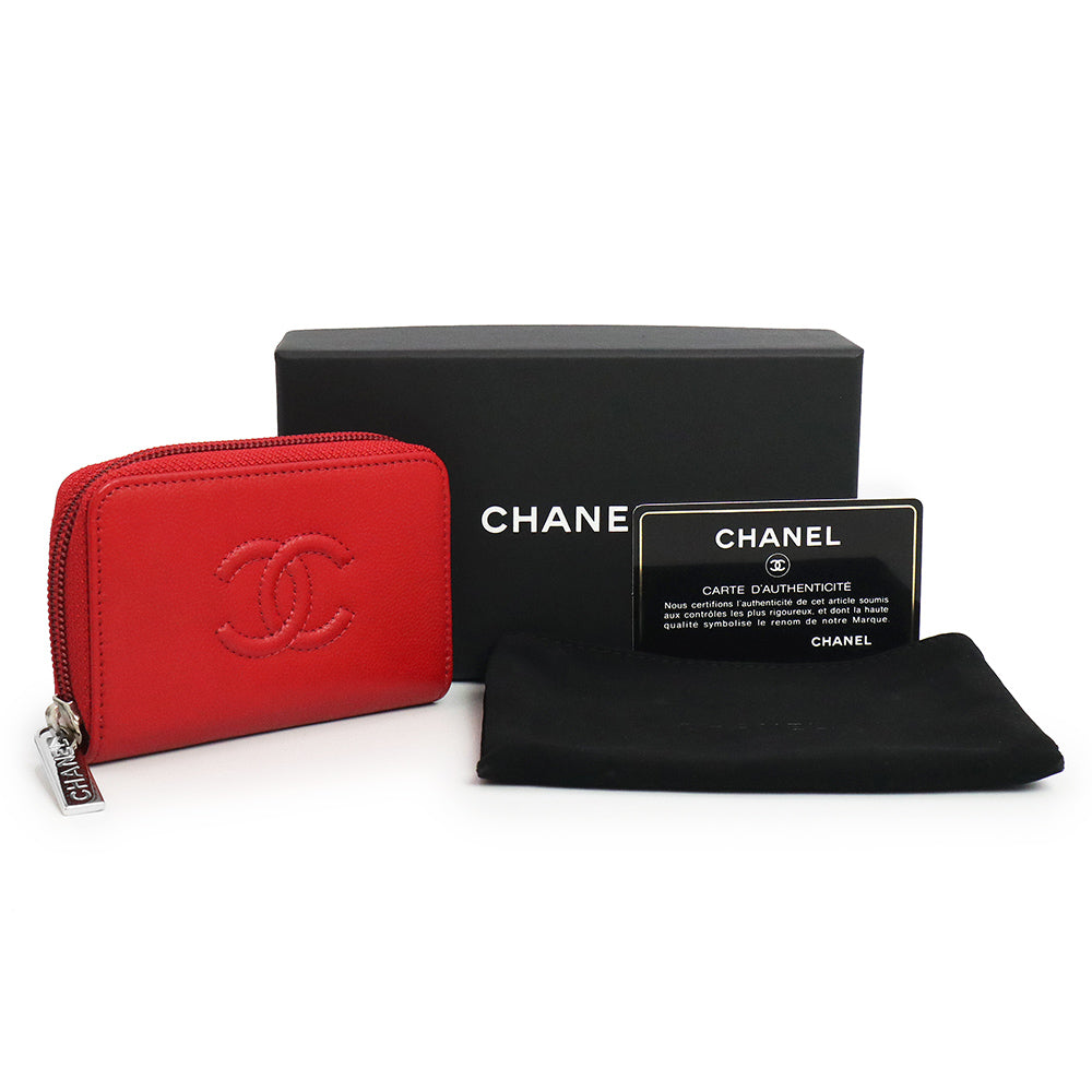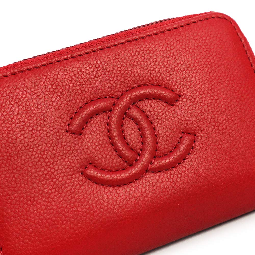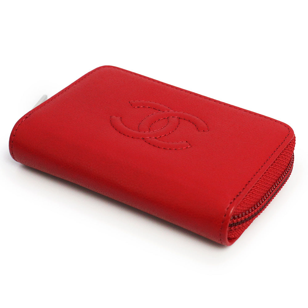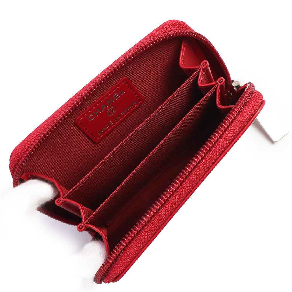 【未使用 展示品】シャネル CHANEL ココステッチ ジップ カード コイン パスケース 名刺入れ 定期入れ 小銭入れ 財布 カーフスキン レザー レッド シルバー金具 A68890 箱付