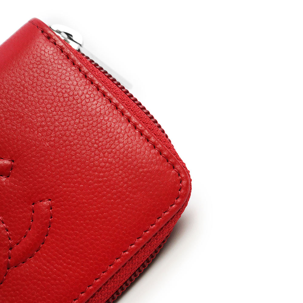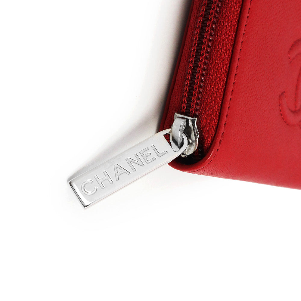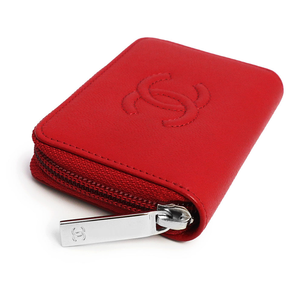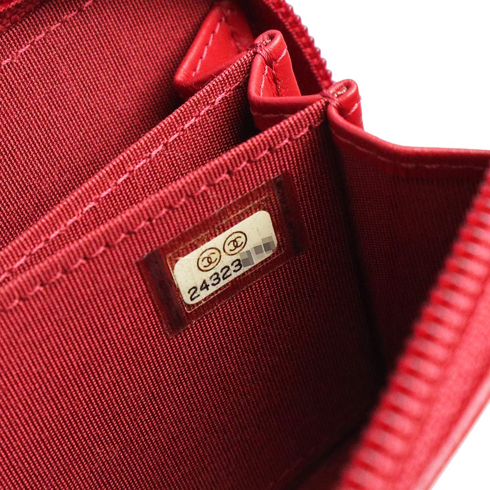 【未使用 展示品】シャネル CHANEL ココステッチ ジップ カード コイン パスケース 名刺入れ 定期入れ 小銭入れ 財布 カーフスキン レザー レッド シルバー金具 A68890 箱付