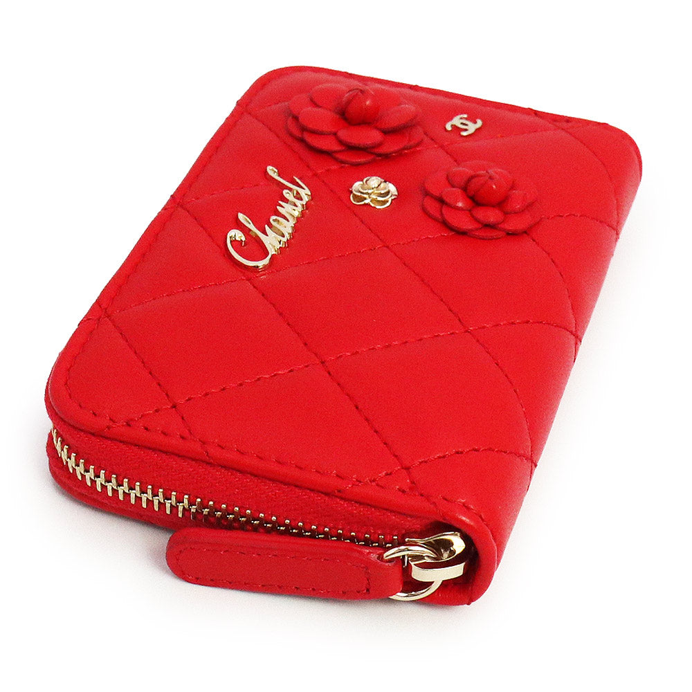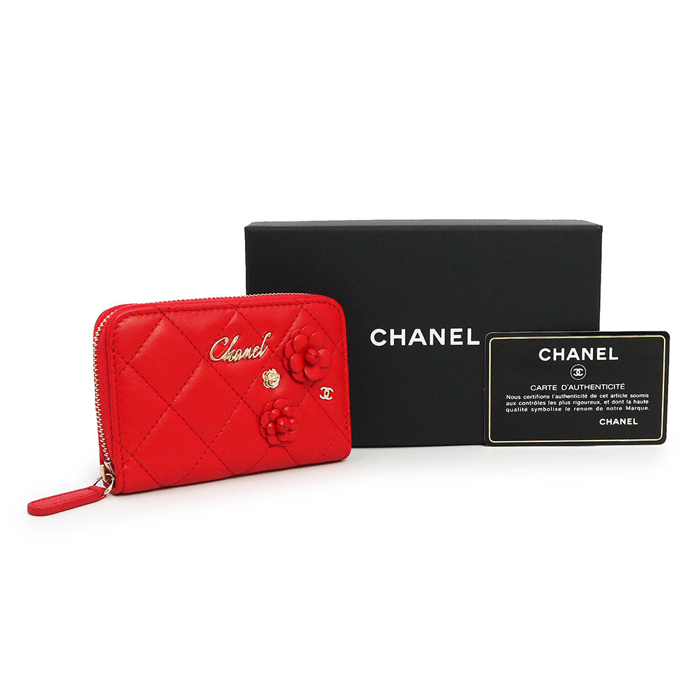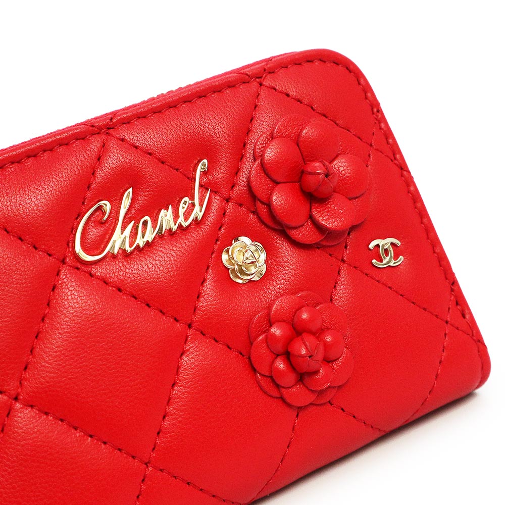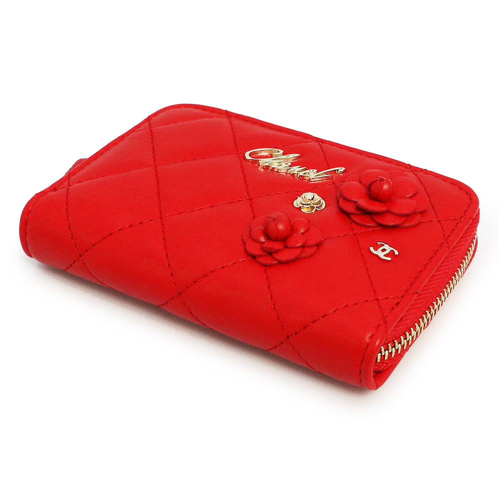 【新品・未使用品】シャネル CHANEL カメリア ロゴ ココマーク ジップ カード コイン パスケース 名刺入れ 定期入れ 小銭入れ 財布 ラムスキン レザー レッド シャンパンゴールド金具 AP0053 箱付