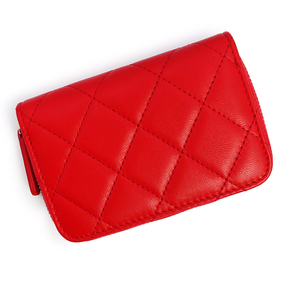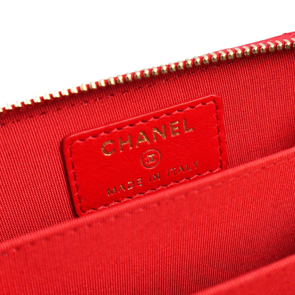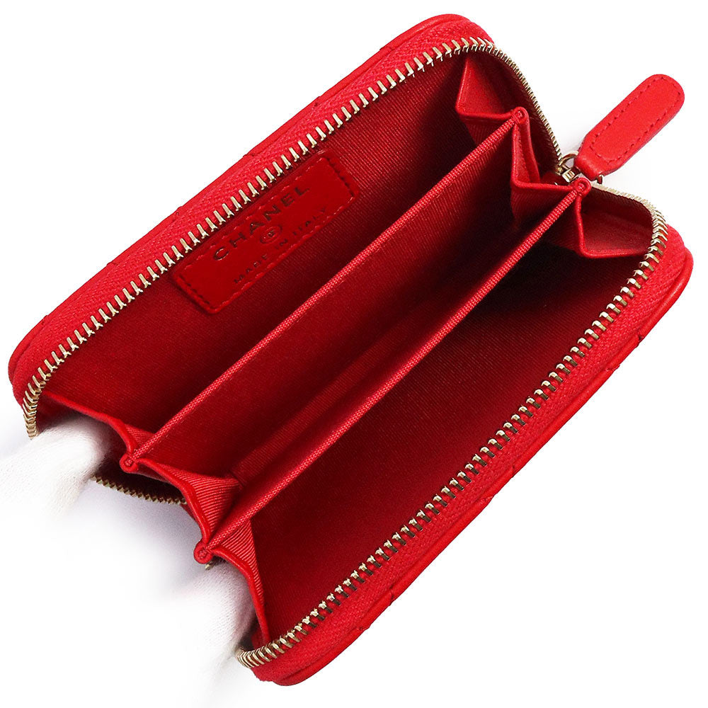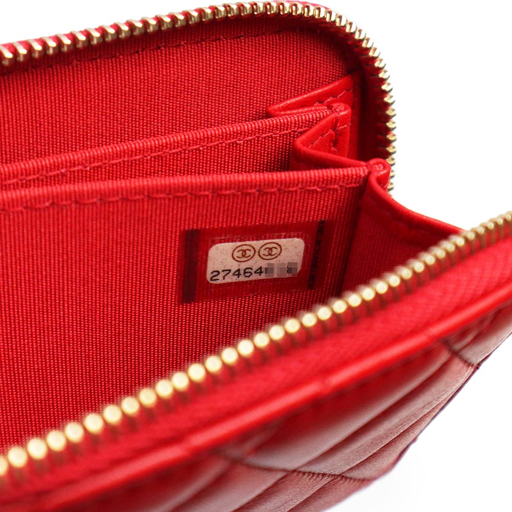 【新品・未使用品】シャネル CHANEL カメリア ロゴ ココマーク ジップ カード コイン パスケース 名刺入れ 定期入れ 小銭入れ 財布 ラムスキン レザー レッド シャンパンゴールド金具 AP0053 箱付