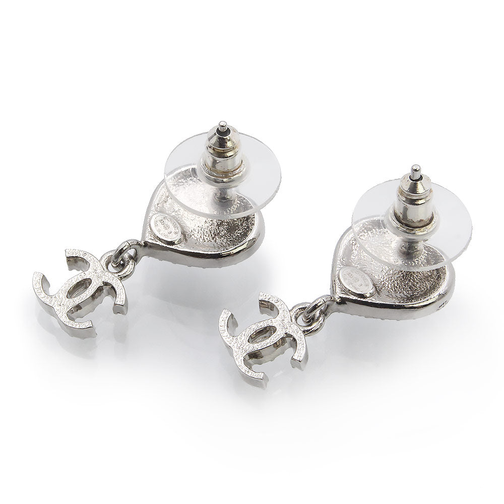 【新品・未使用品】シャネル CHANEL ココマーク ハート ラインストーン スイング ピアス シルバー ABB634 箱付