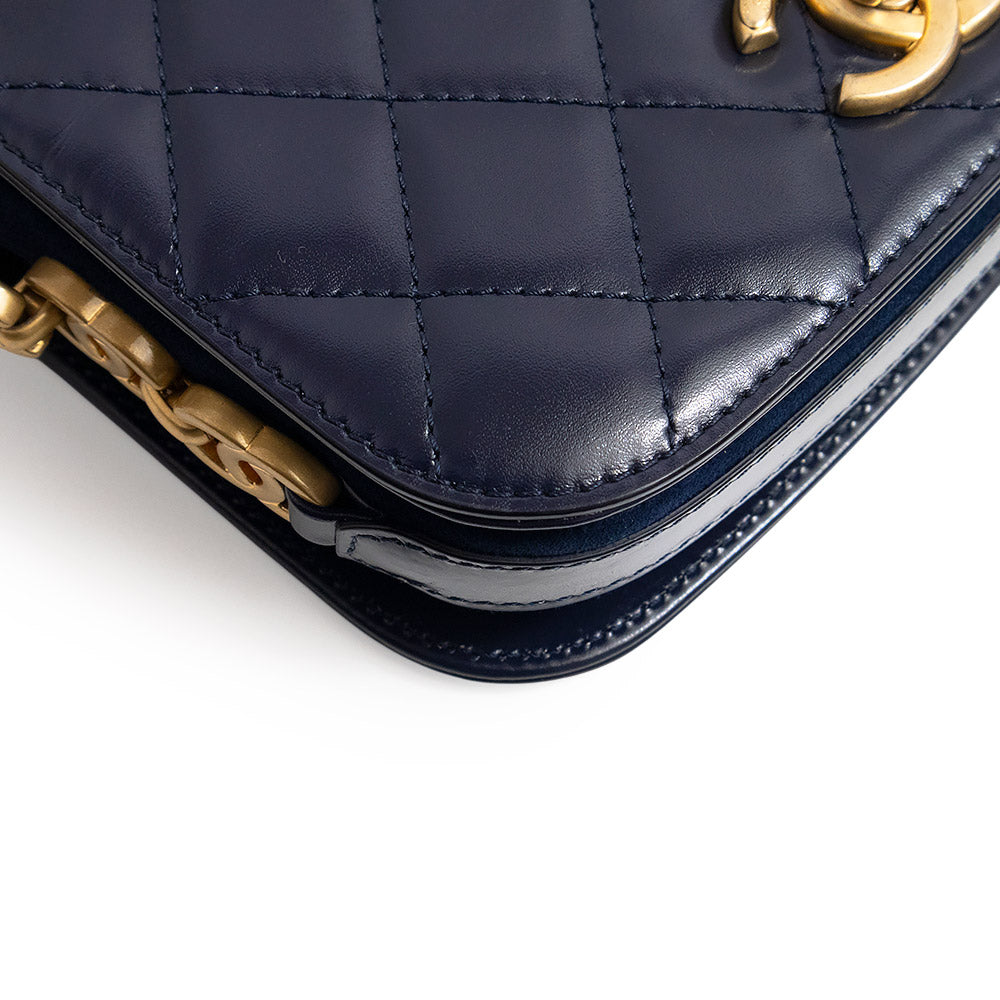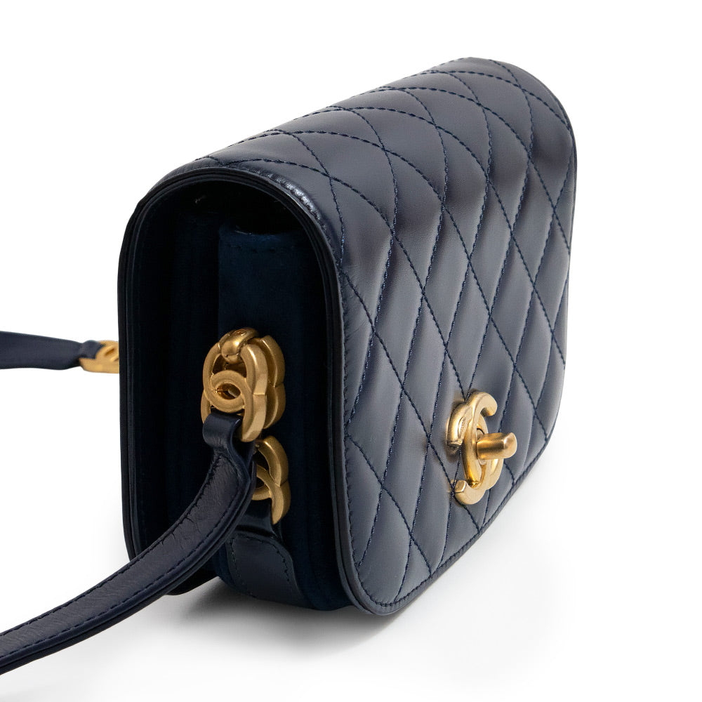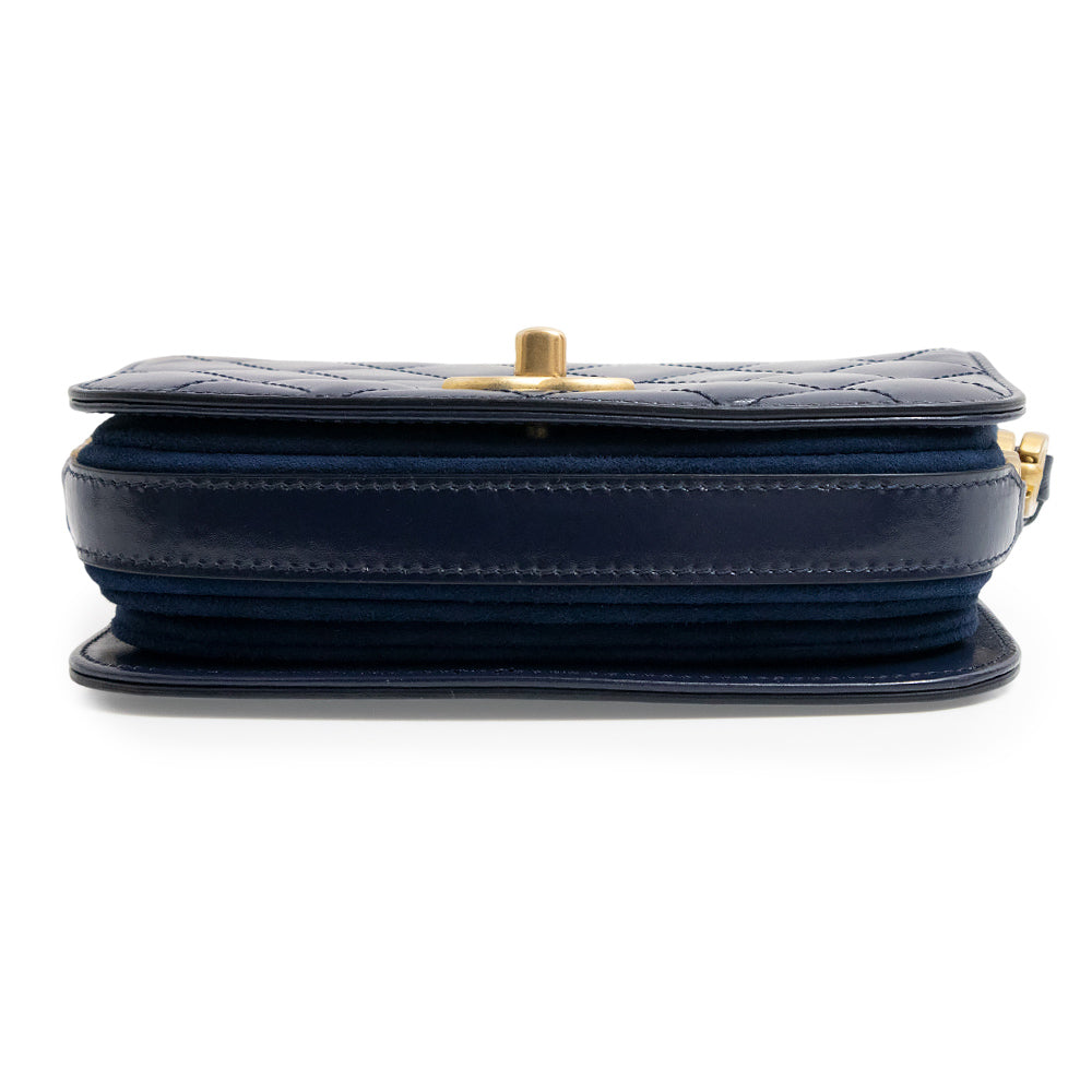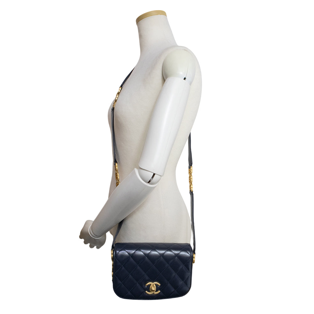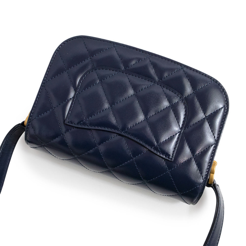 【未使用 展示品】シャネル CHANEL マトラッセ ミニ メッセンジャー ショルダーバッグ 斜め掛け シャイニーカーフスキン レザー スウェード ネイビー アンティークゴールド金具 AS3396