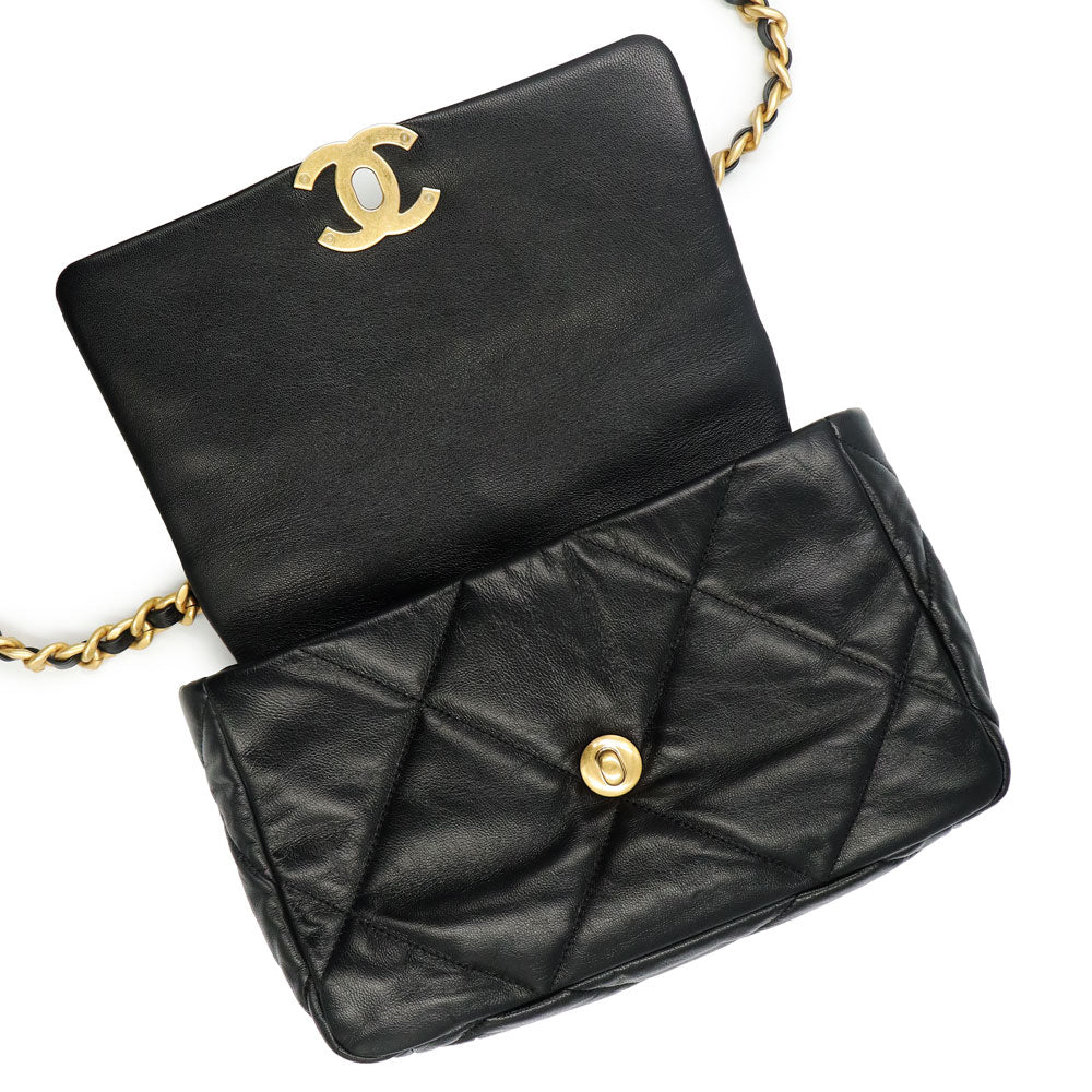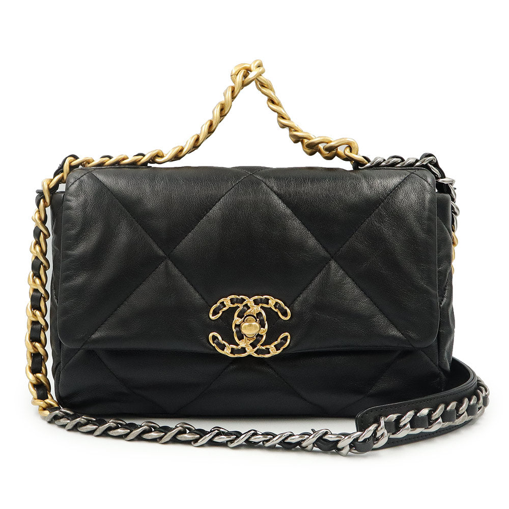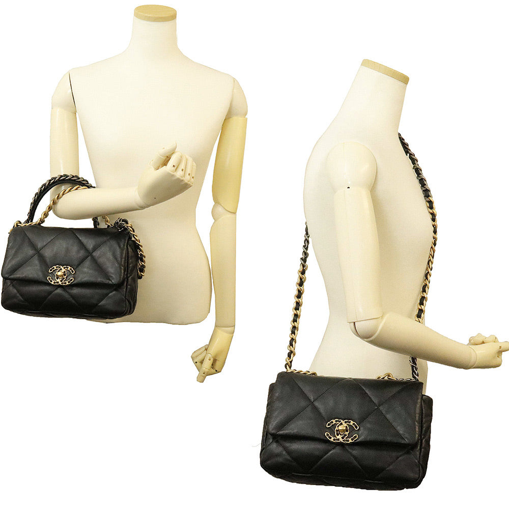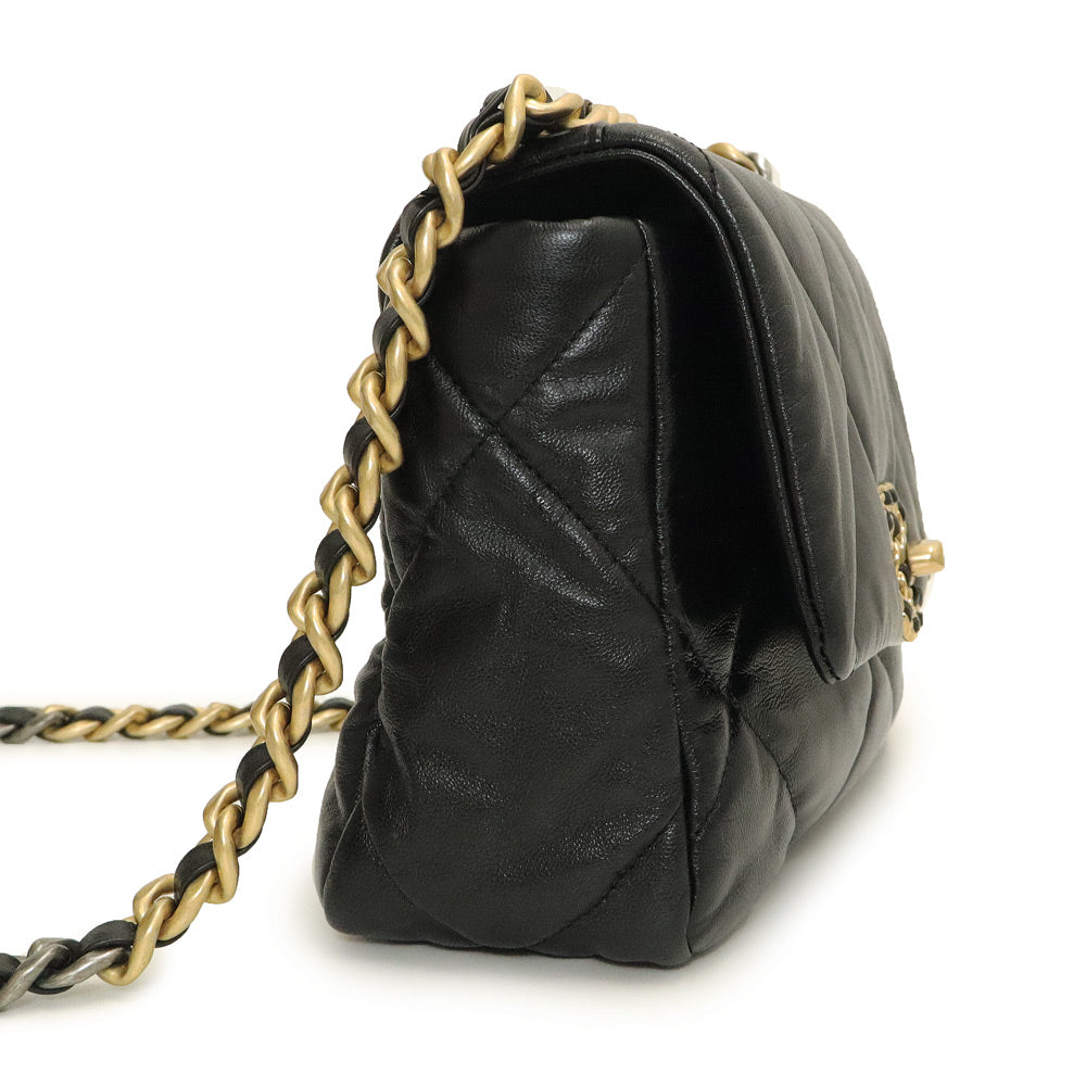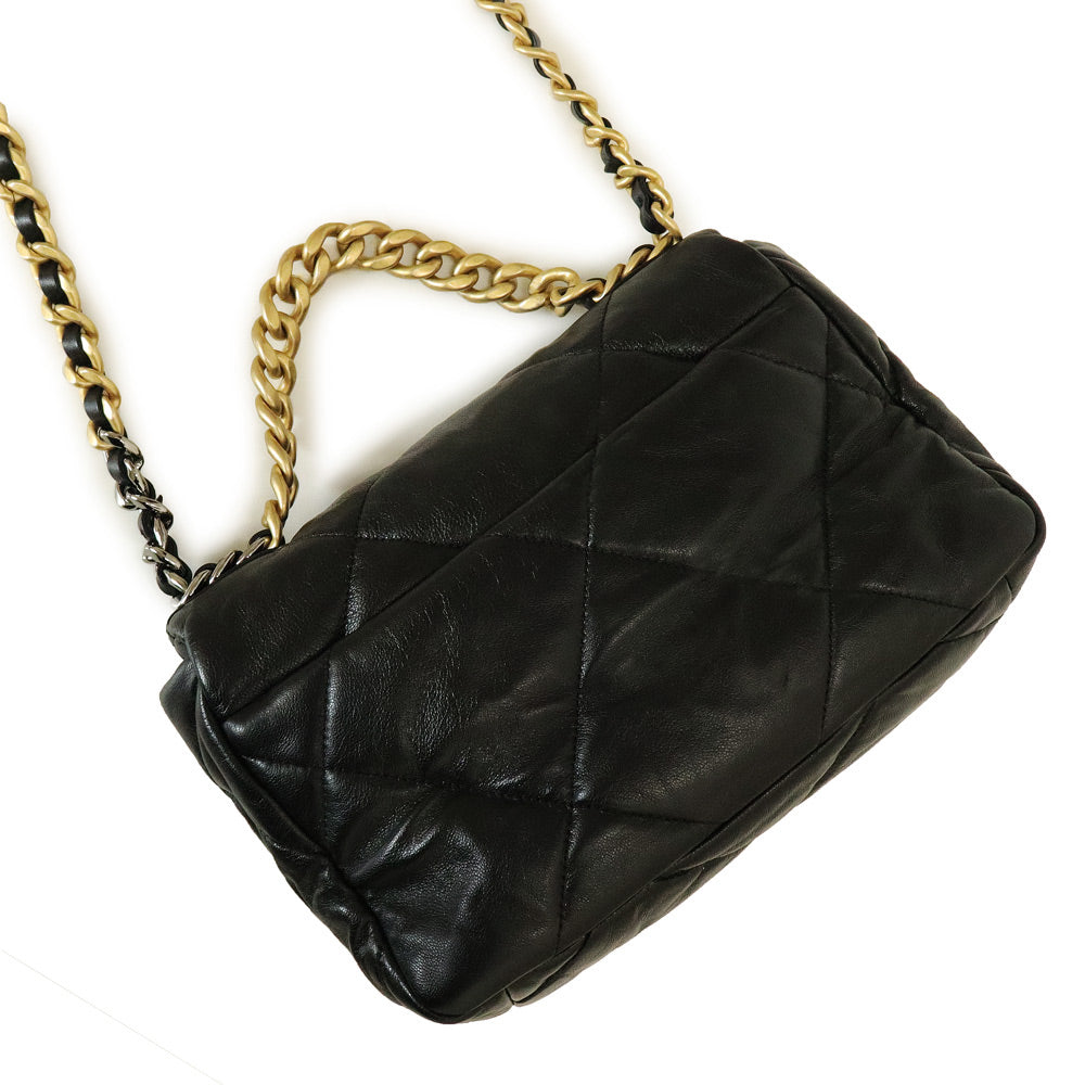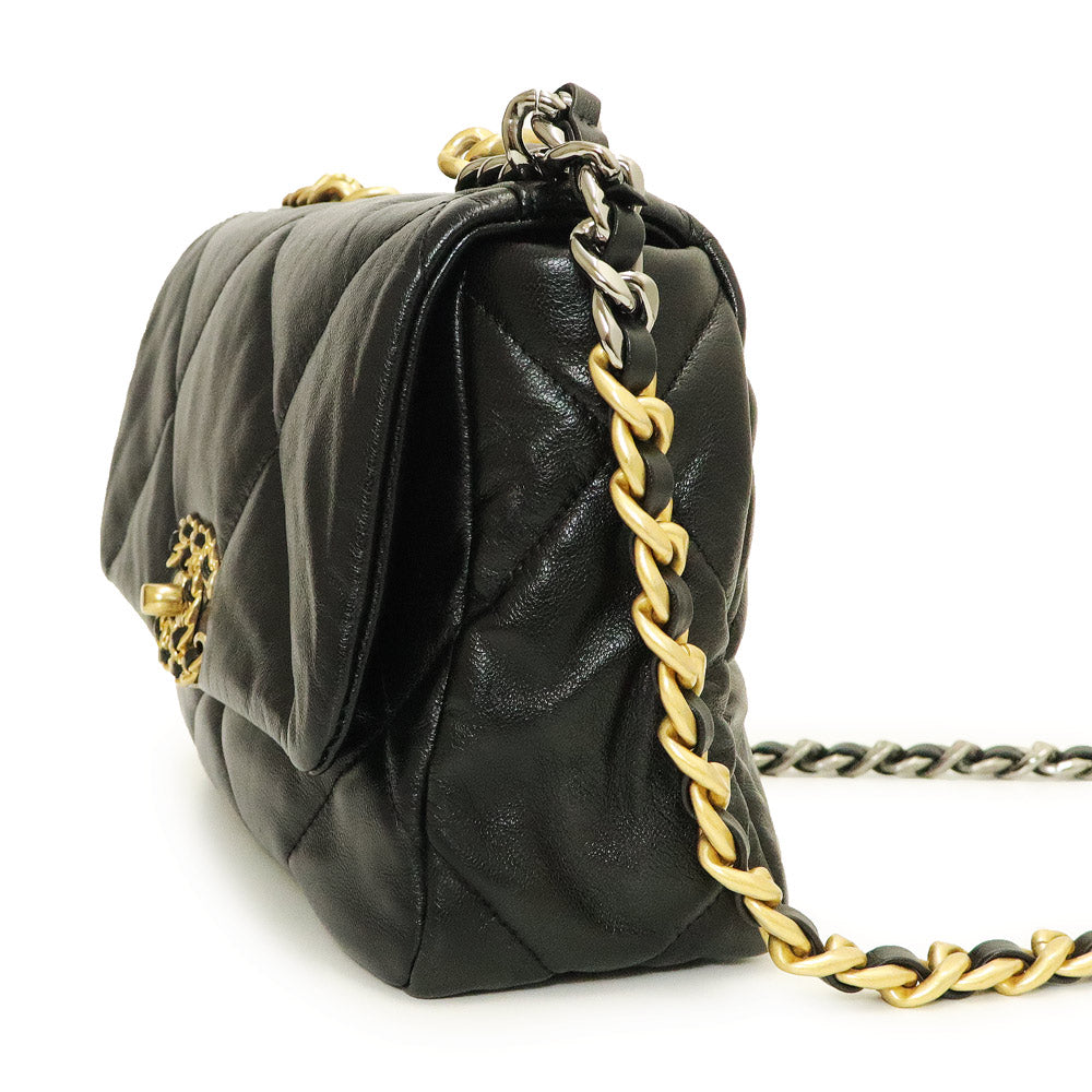 【美品】シャネル CHANEL 19 ナインティーン ココマーク マトラッセ チェーン 2WAY ショルダー ハンドバッグ 斜め掛け シャイニーカーフスキン ブラック アンティークゴールド アンティークシルバー金具 AS1160