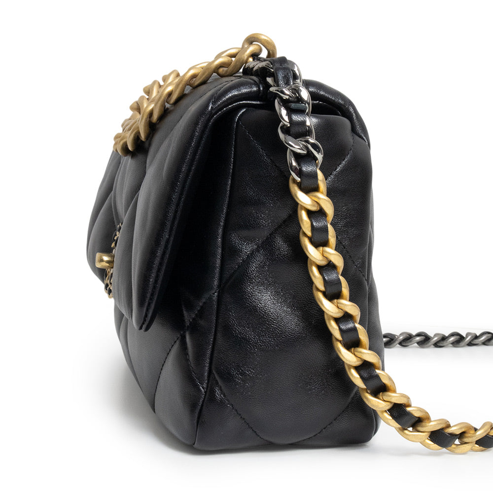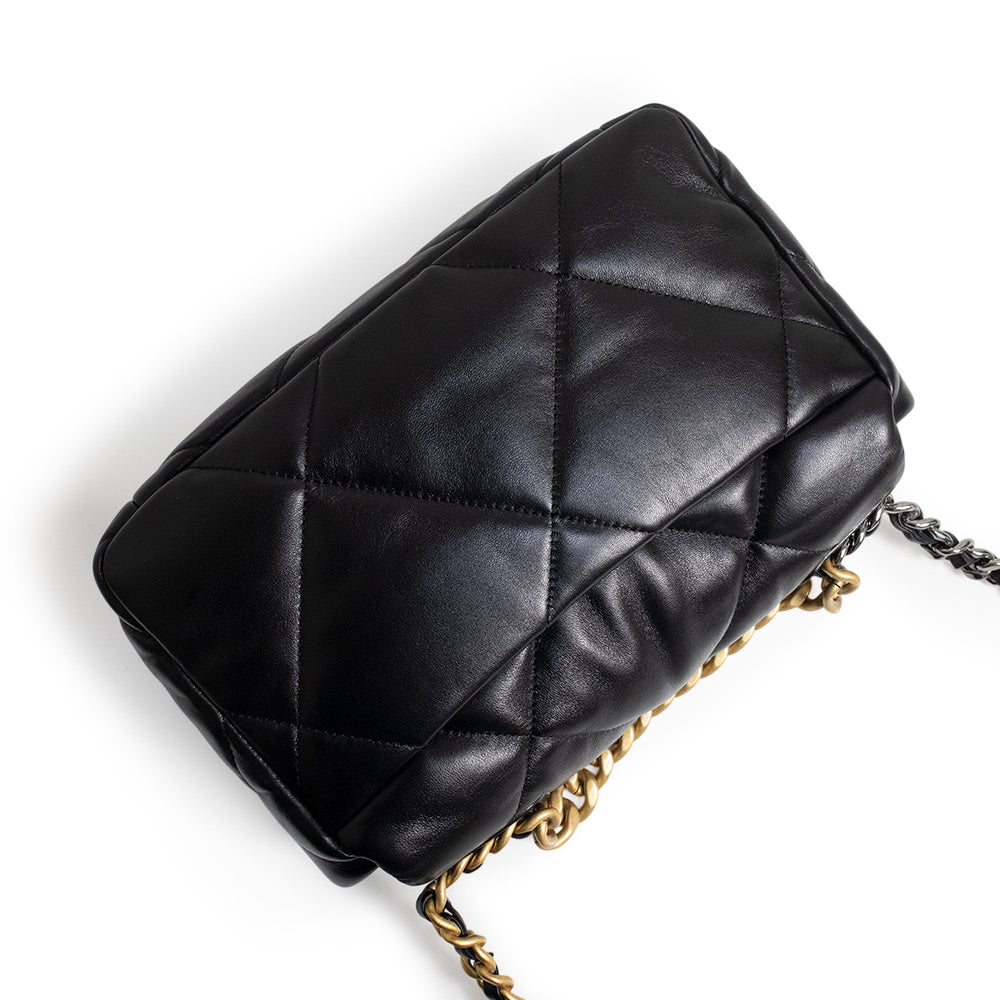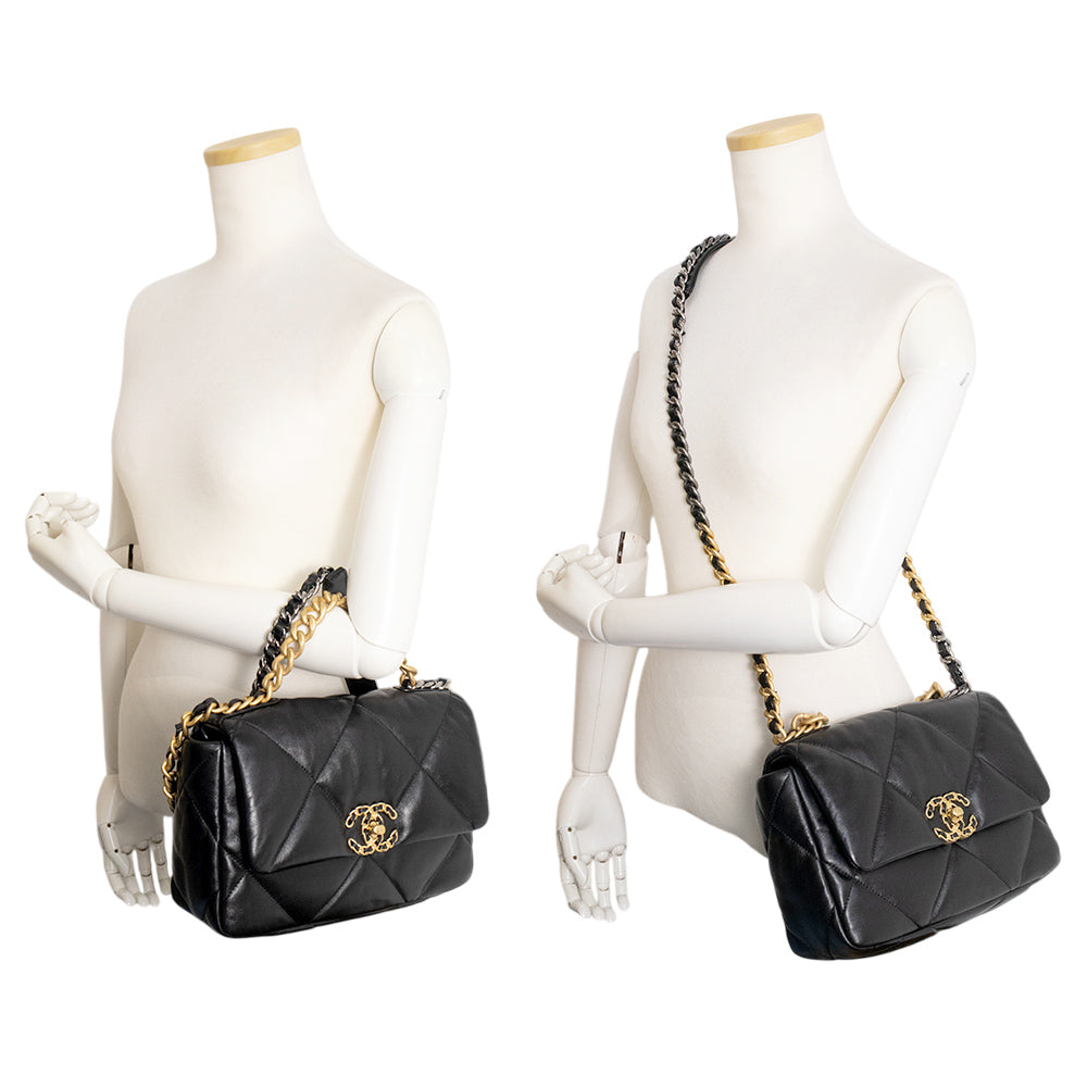 【新品・未使用品】シャネル CHANEL 19 ナインティーン ココマーク マトラッセ チェーン 2Way 斜め掛け ショルダー ハンドバッグ シャイニーラムスキン レザー ブラック アンティークゴールド×アンティークシルバー金具 AS1160 箱付