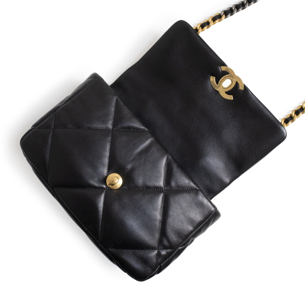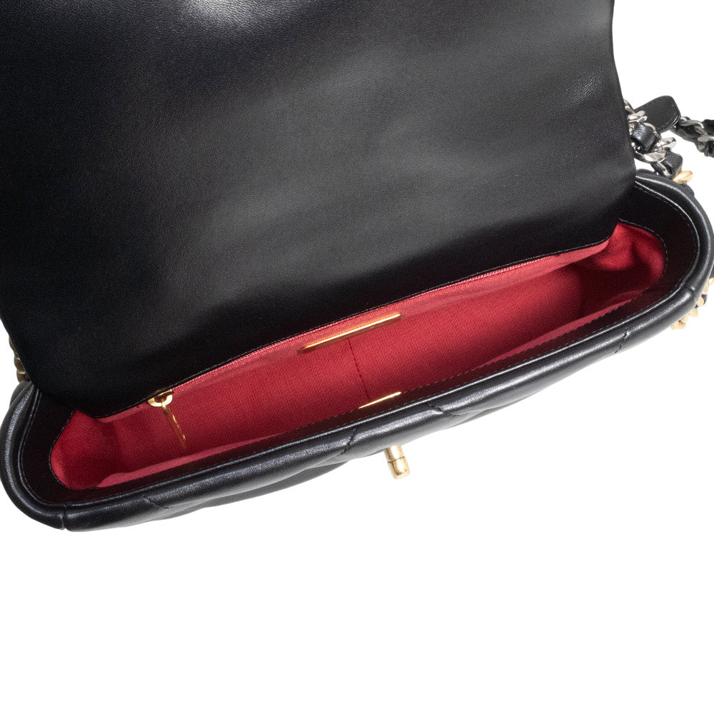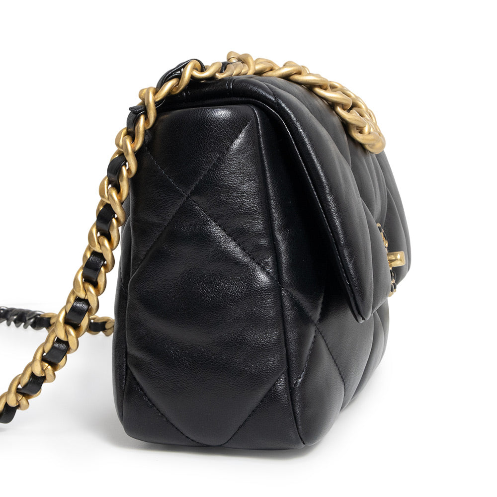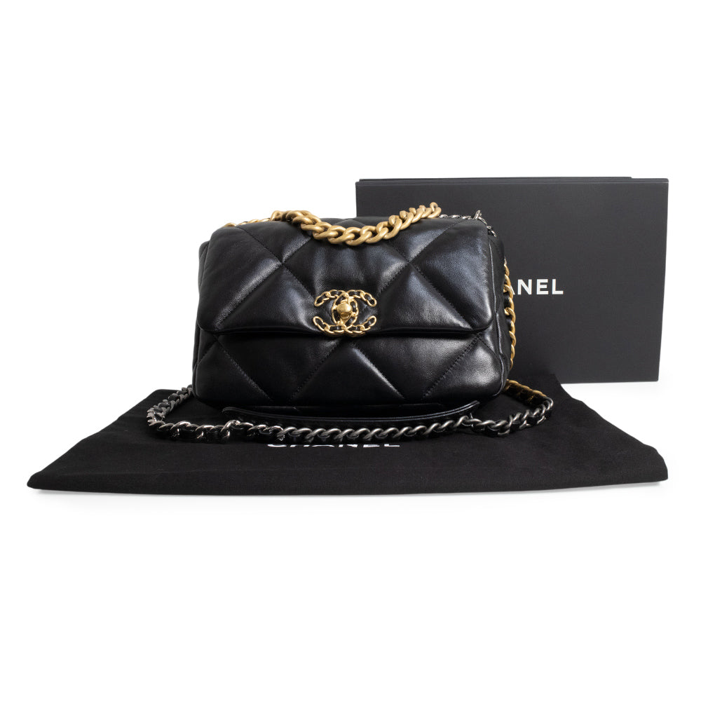 【新品・未使用品】シャネル CHANEL 19 ナインティーン ココマーク マトラッセ チェーン 2Way 斜め掛け ショルダー ハンドバッグ シャイニーラムスキン レザー ブラック アンティークゴールド×アンティークシルバー金具 AS1160 箱付