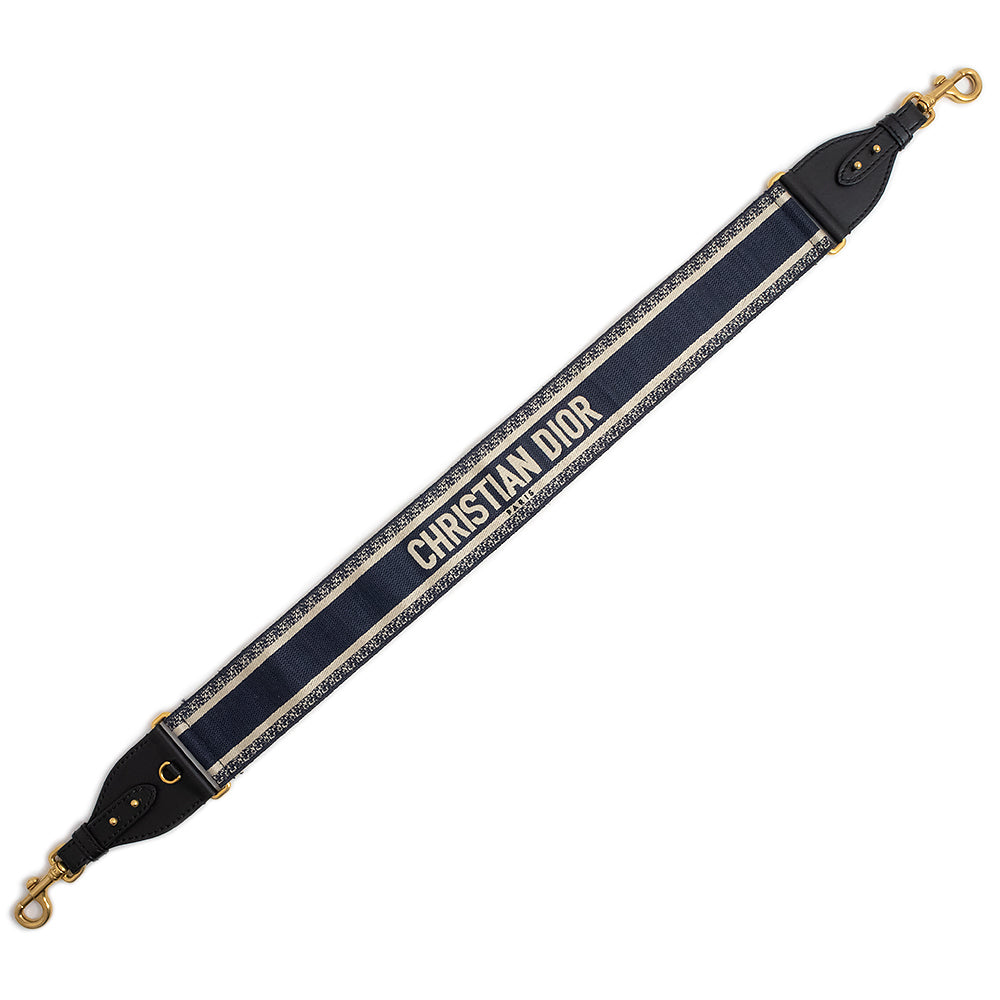 メゾンのバッグを個性あふれるスタイルにカスタマイズできる、刺繍入りショルダーストラップ。センターにCHRISTIAN DIOR PARISシグネチャーがデザインされ、両端はブラックカーフスキンで縁取りされています。2つのアンティークゴールドトーンのメタル製スナップフックを使って、お気に入りのバッグに取り付けることが可能です。 |