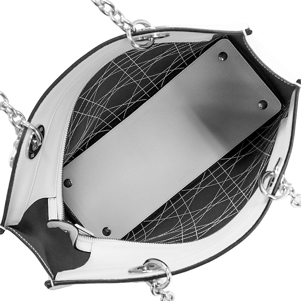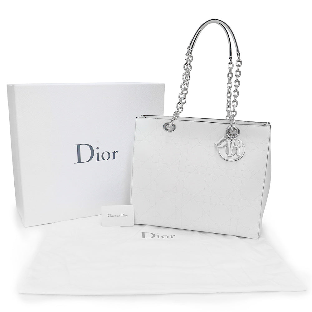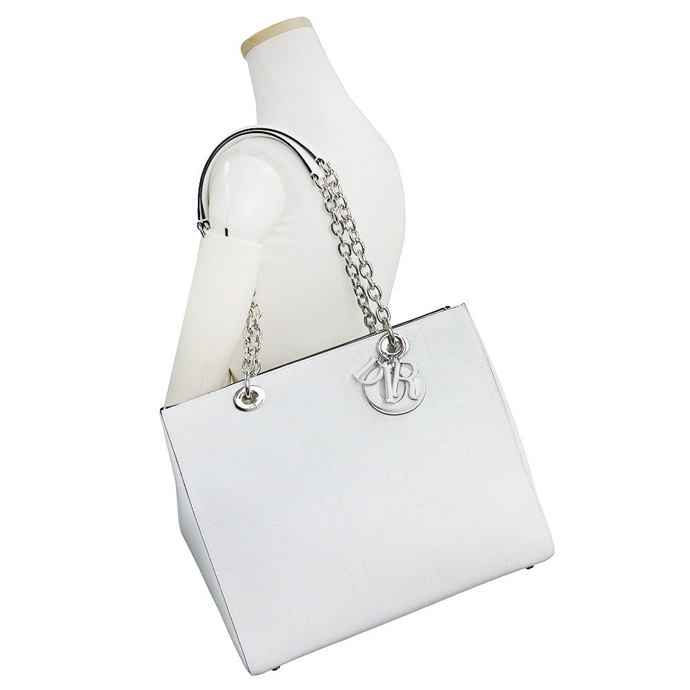 【未使用 展示品】クリスチャンディオール Christian Dior ULTRADIOR カナージュ チェーン トートバッグ グレインレザー ホワイト 白 シルバー金具 M1350PVCQ