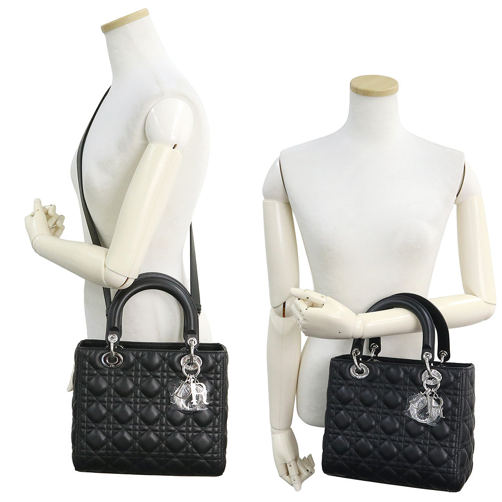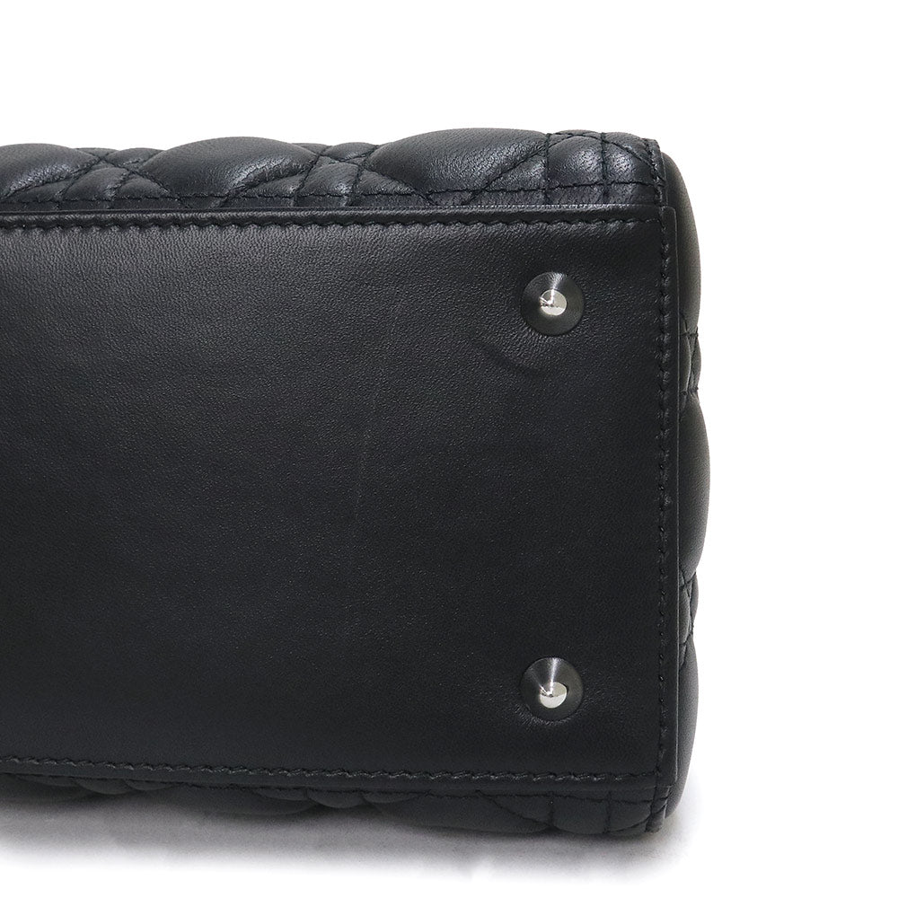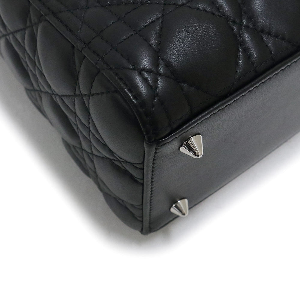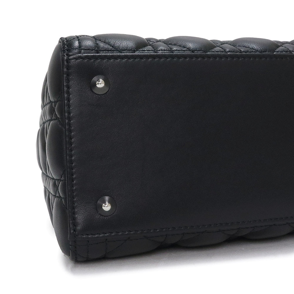【未使用 展示品】クリスチャンディオール Christian Dior レディディオール ミディアム 2way ショルダー ハンドバッグ 斜め掛け カナージュ ラムスキン レザー ブラック シルバー金具 M0565PNGE 箱付