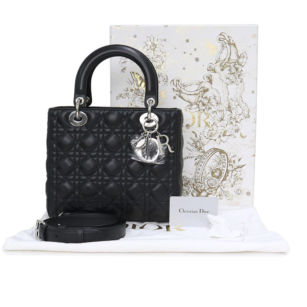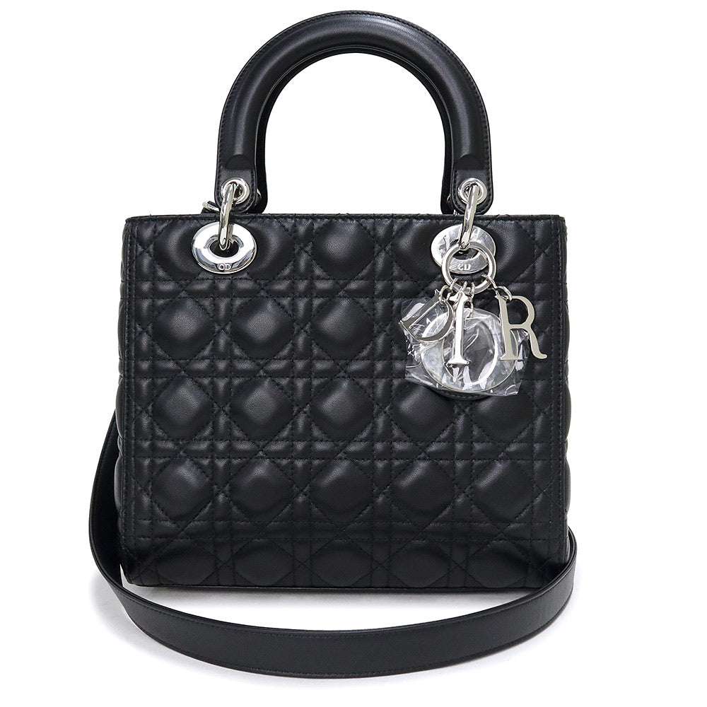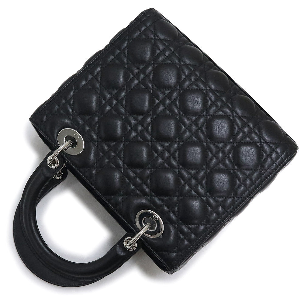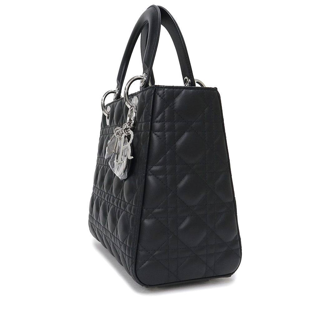 【未使用 展示品】クリスチャンディオール Christian Dior レディディオール ミディアム 2way ショルダー ハンドバッグ 斜め掛け カナージュ ラムスキン レザー ブラック シルバー金具 M0565PNGE 箱付