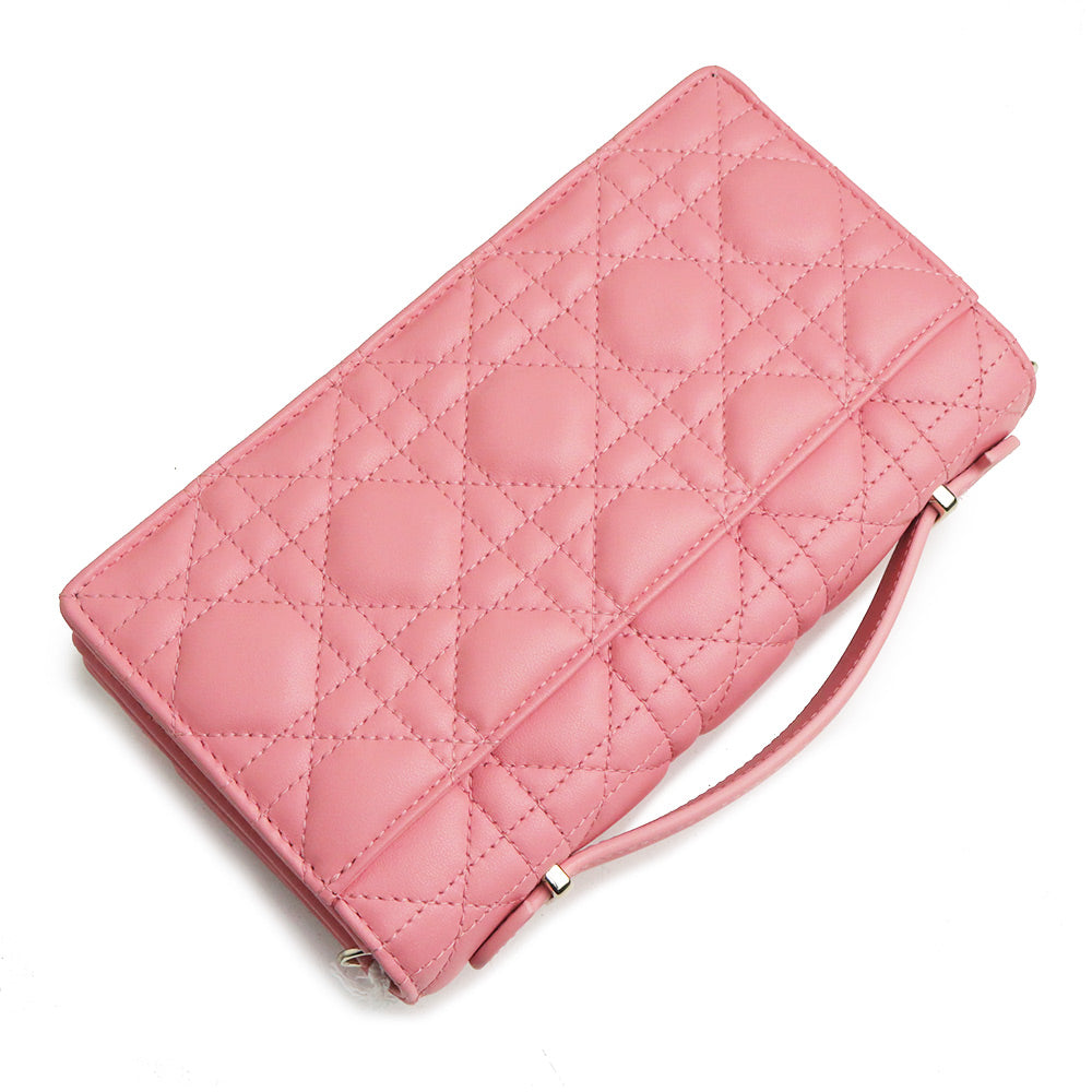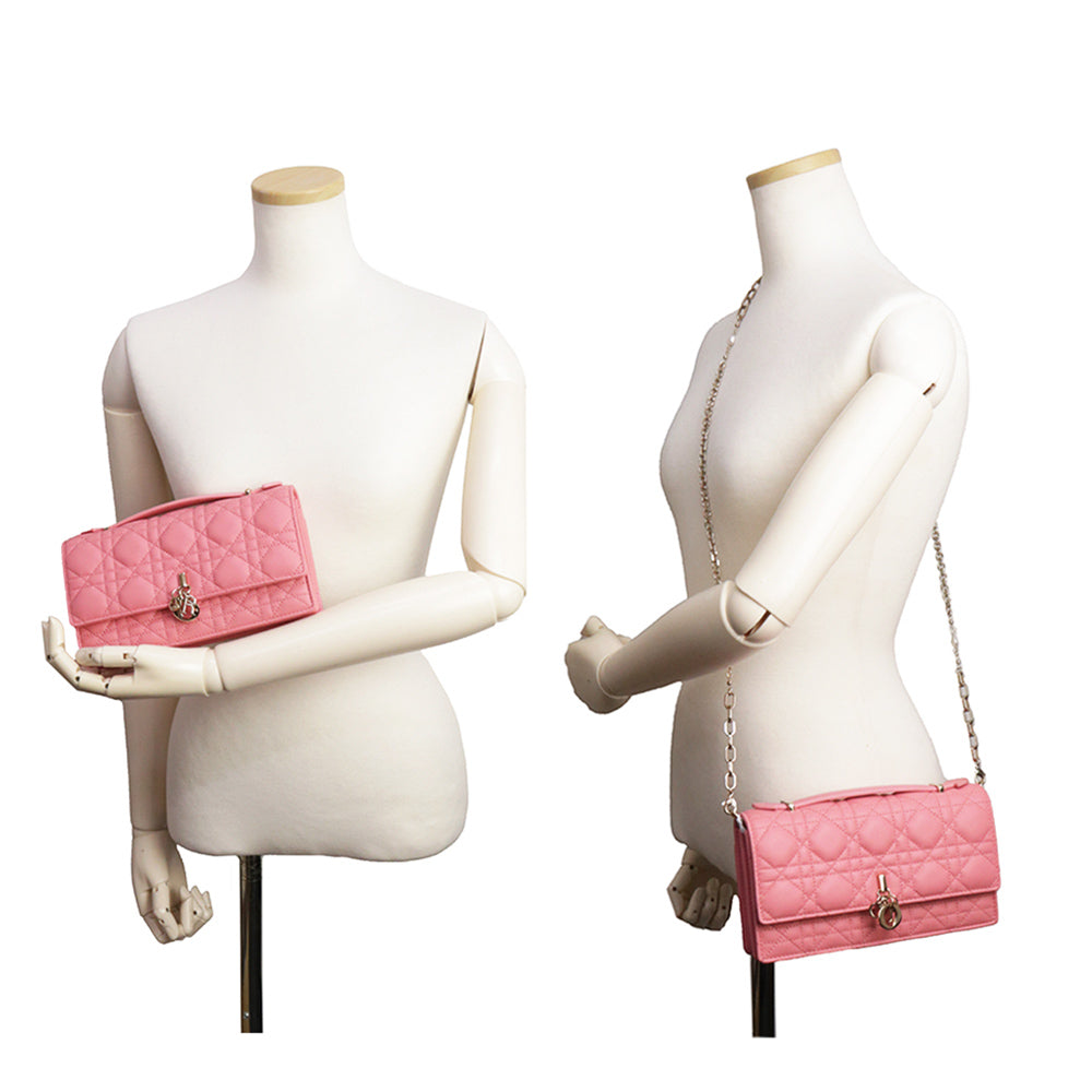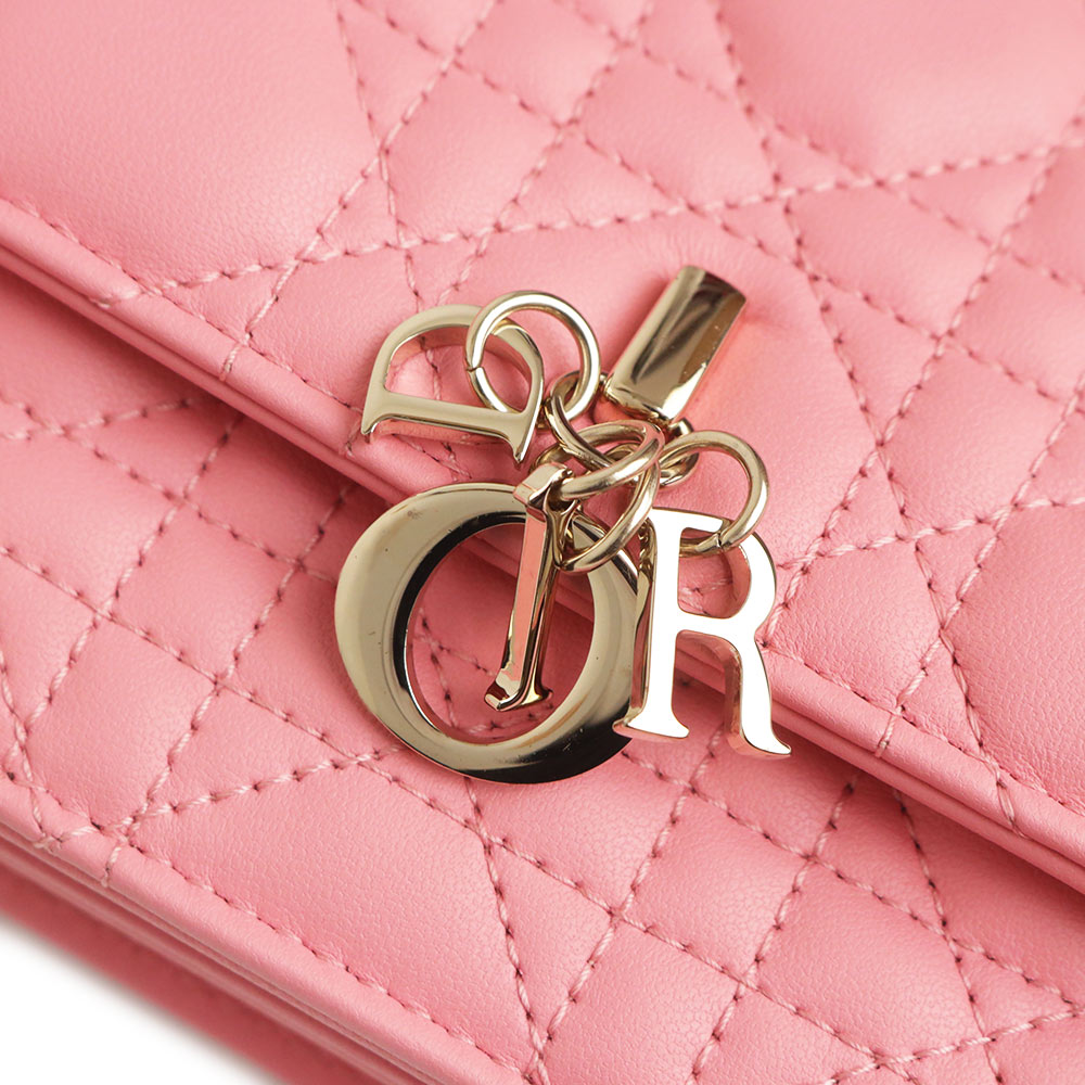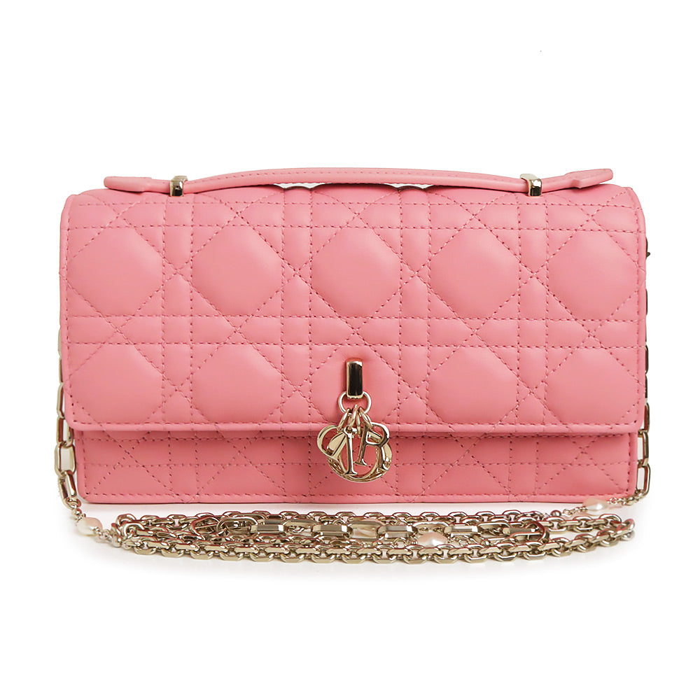 【未使用 展示品】クリスチャンディオール Christian Dior My Dior ミニバッグ クラッチ チェーン ショルダー 斜め掛け カナージュ ラムスキン レザー ピンク ゴールド金具 S0980ONMJ