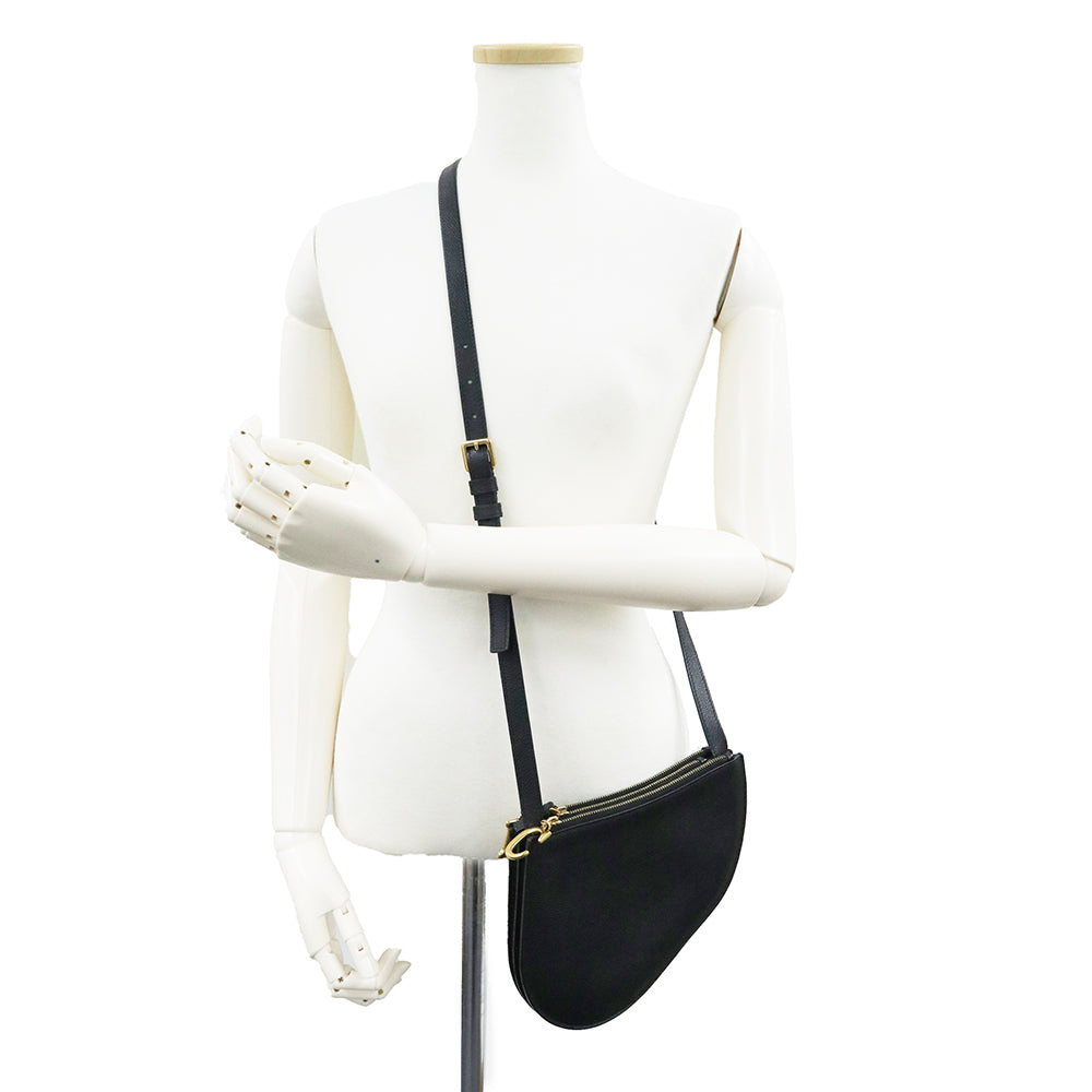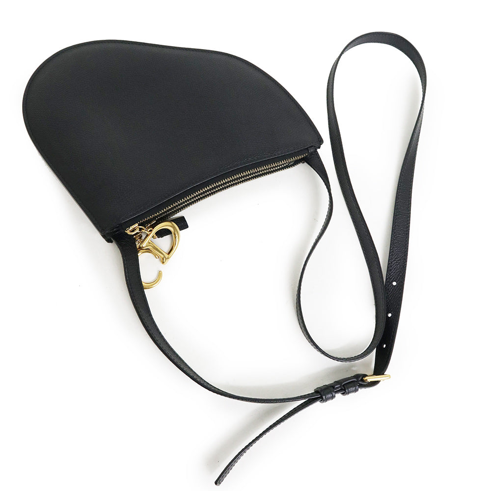 【未使用 展示品】クリスチャンディオール Christian Dior カーフスキン レザー サドル 斜め掛け ショルダーバッグ ブラック 黒 S5642CWVG レディース