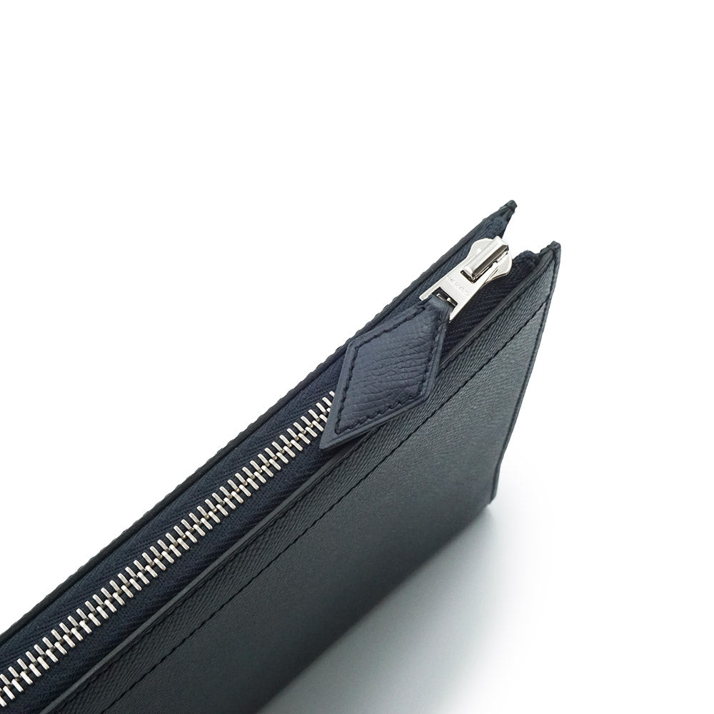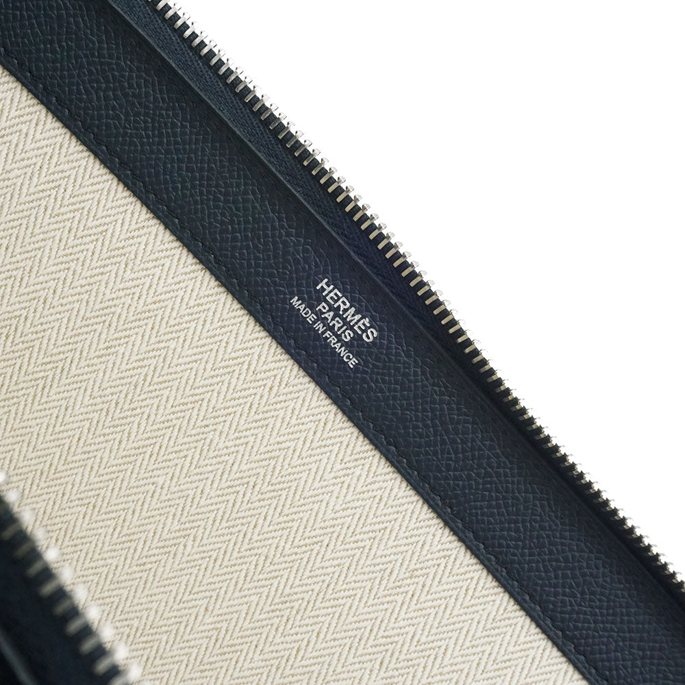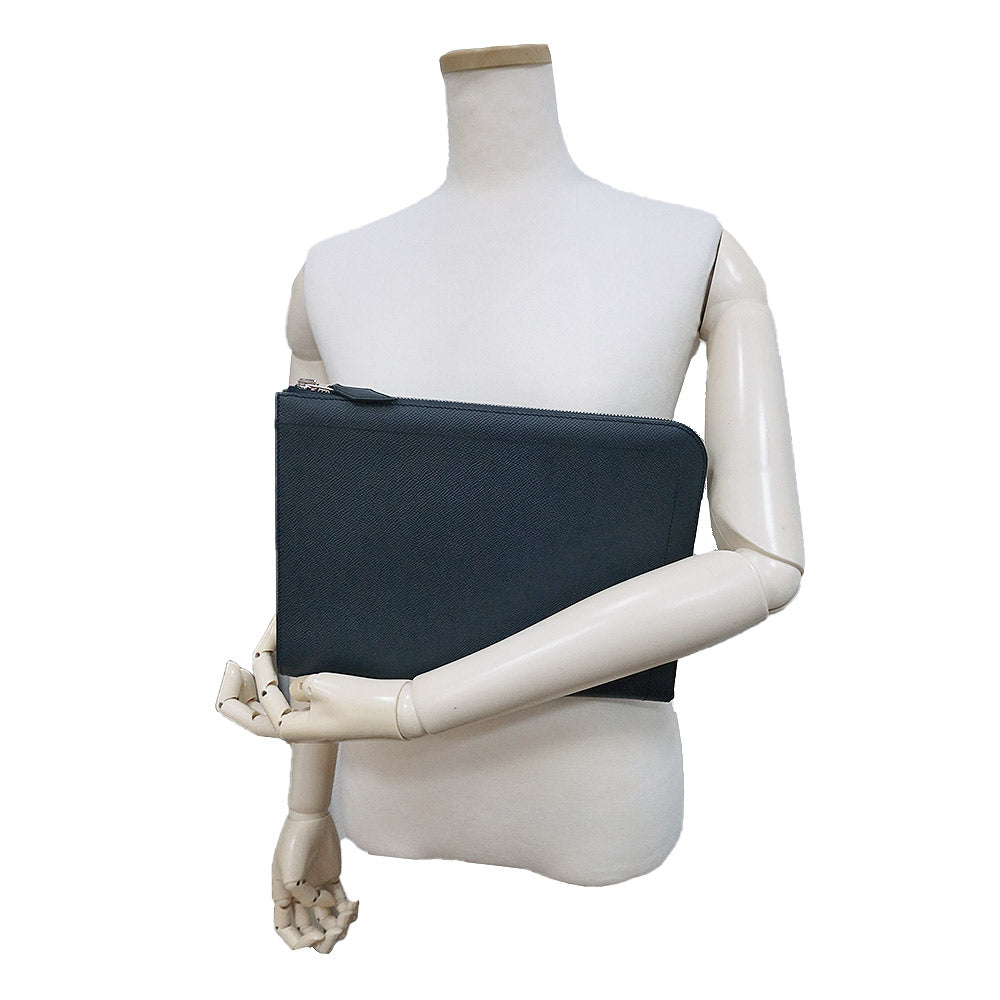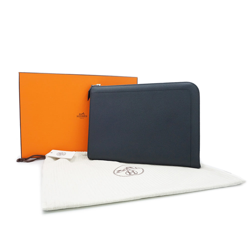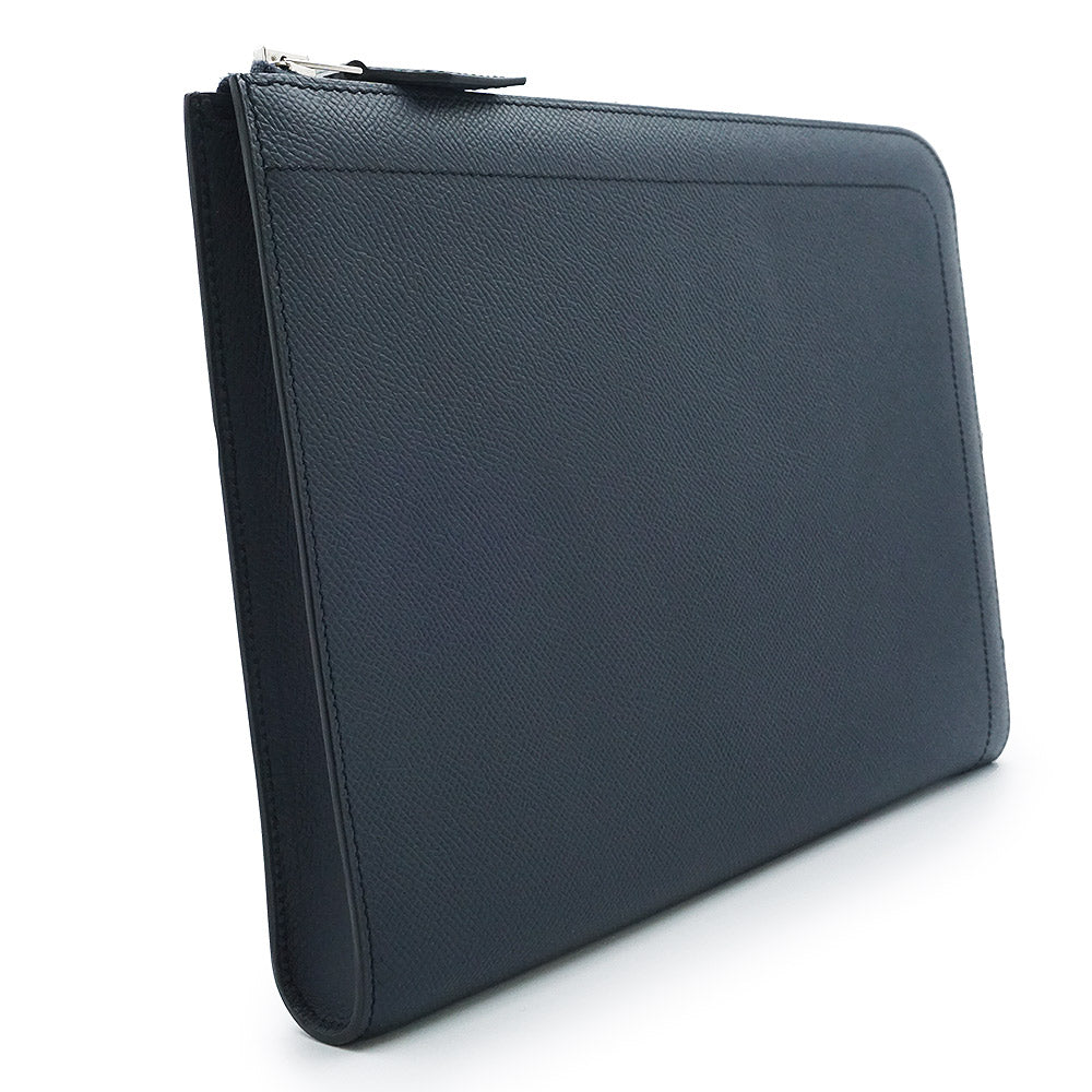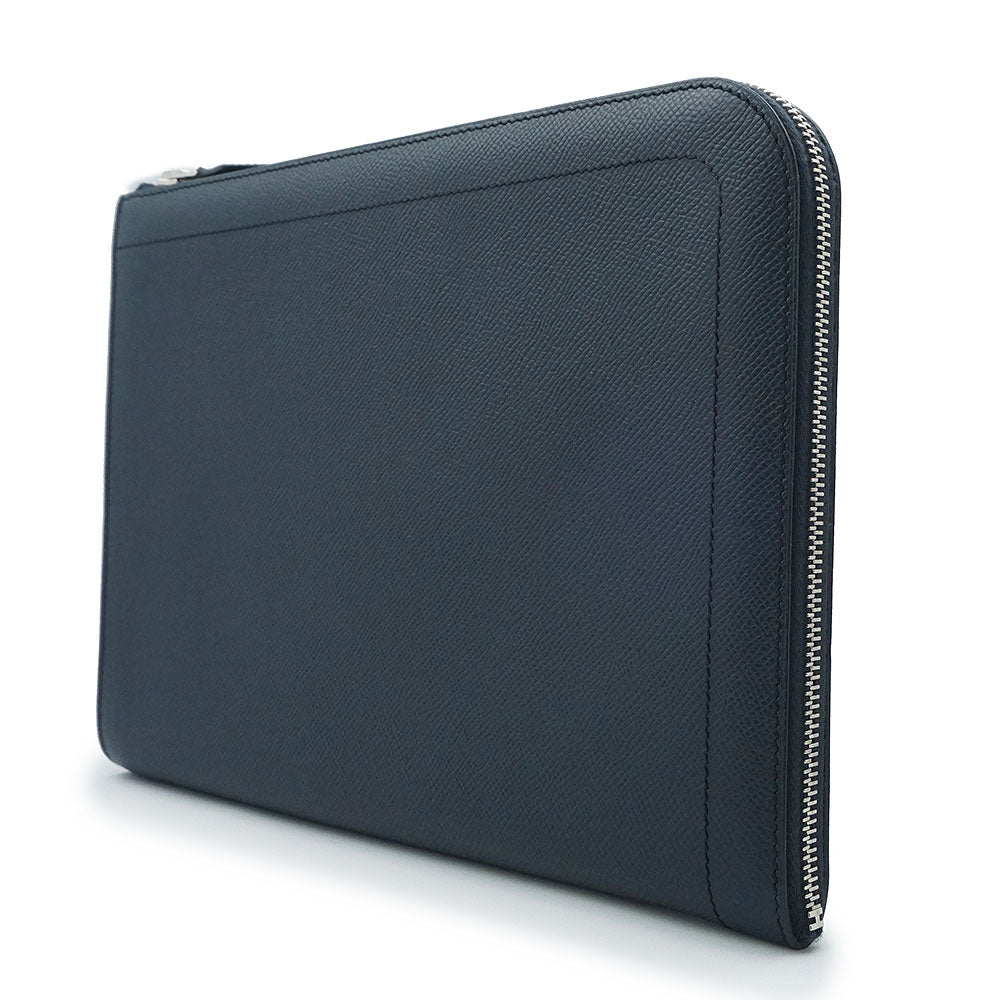 【新品・未使用品】エルメス HERMES ジップ タブレット トラベル ドキュメントケース ポーチ セカンド クラッチバッグ ヴォーエプソン レザー ブルーインディゴ ネイビー シルバー金具 D刻印