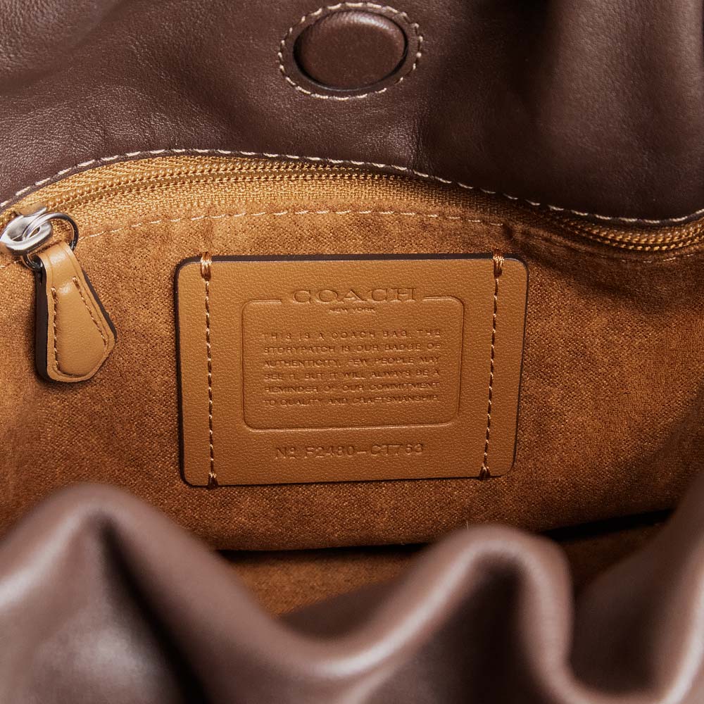 洗練された印象のCOACH「フェイ ドローストリング バッグ」。日常使いにも便利なデザインです。取り外し・調節可能なストラップ付きで、ショルダーや斜め掛けなどスタイルに合わせた持ち方をお楽しみいただけます。シルバー金具がブラウンレザーに上品なアクセントを添えます。