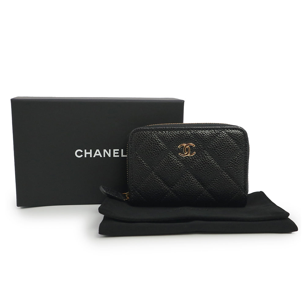 【新品・未使用品】シャネル CHANEL マトラッセ クラシック ジップ コインパース コインケース 小銭入れ 財布 キャビアスキン レザー ブラック ゴールド金具 AP0216