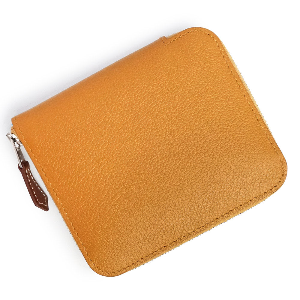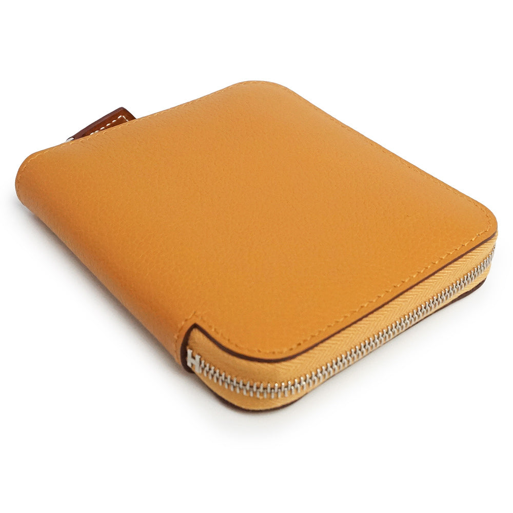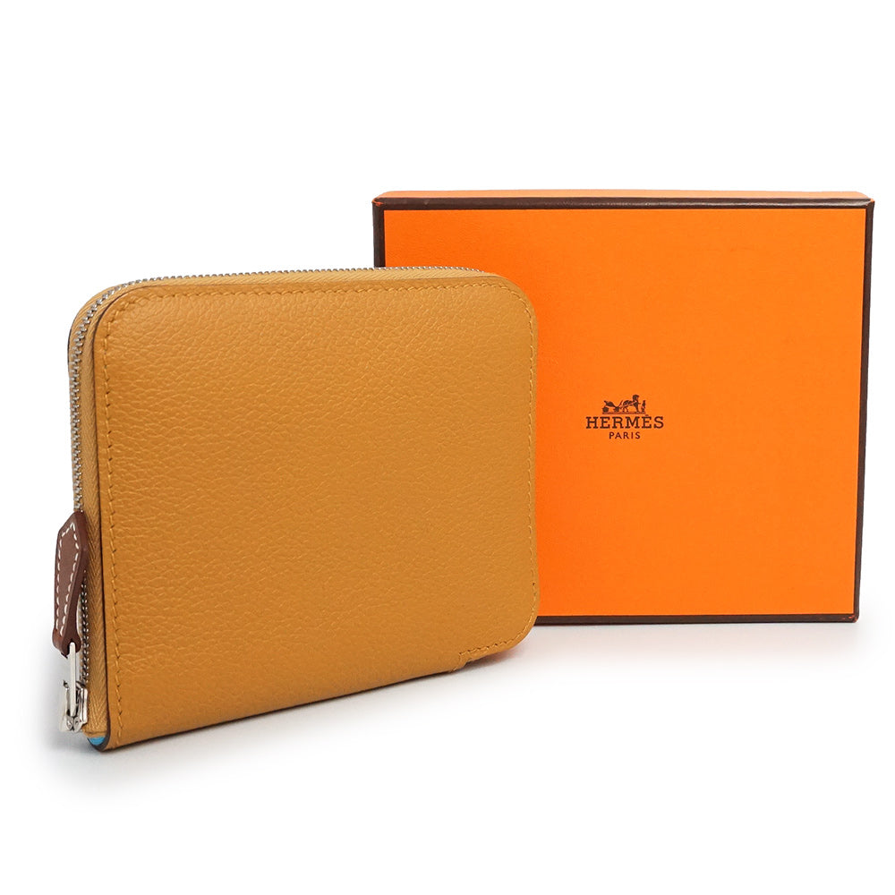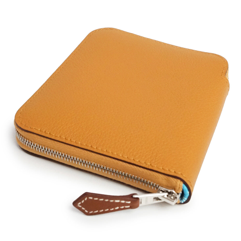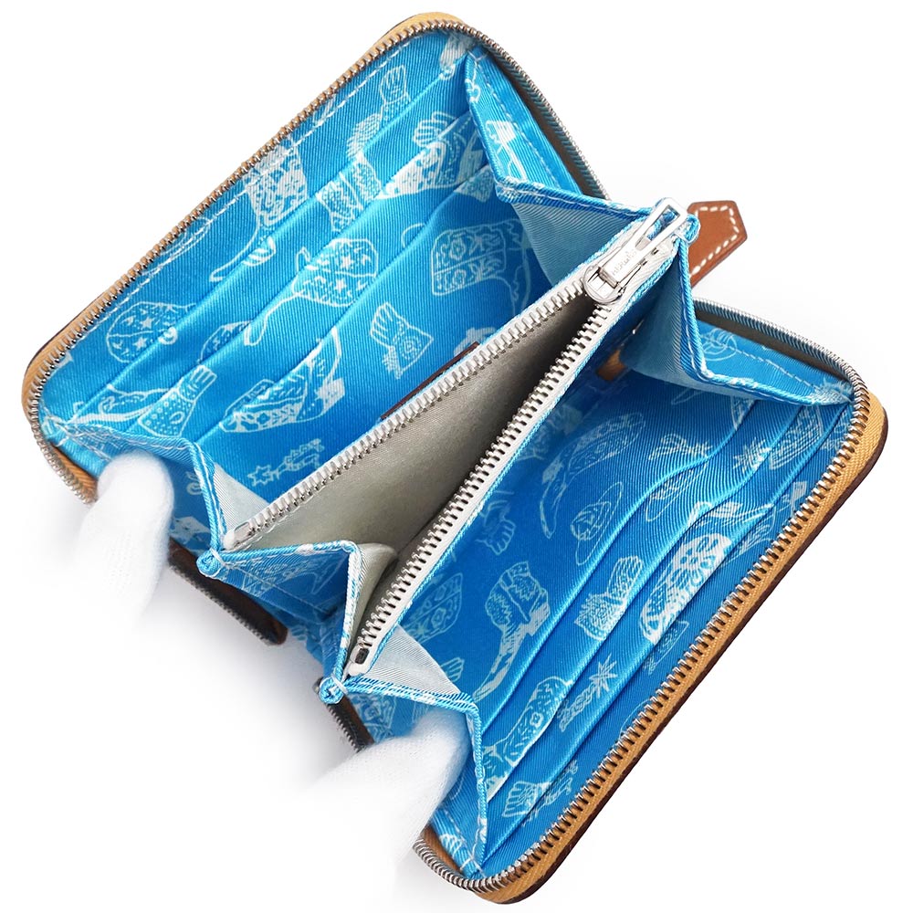 エルメスのジップコインケース、アザップコンパクト シルクイン。内生地にラグジュアリー感溢れるシルクスカーフが使われており、エルメスならではの高級感を感じさせます。キュートなルックスと上質な素材どちらも兼ね備えたアイテム。ファスナーを開けるとマチが広がり、中身が出し入れしやすいのも嬉しいポイント。プレゼントにもオススメです。 |