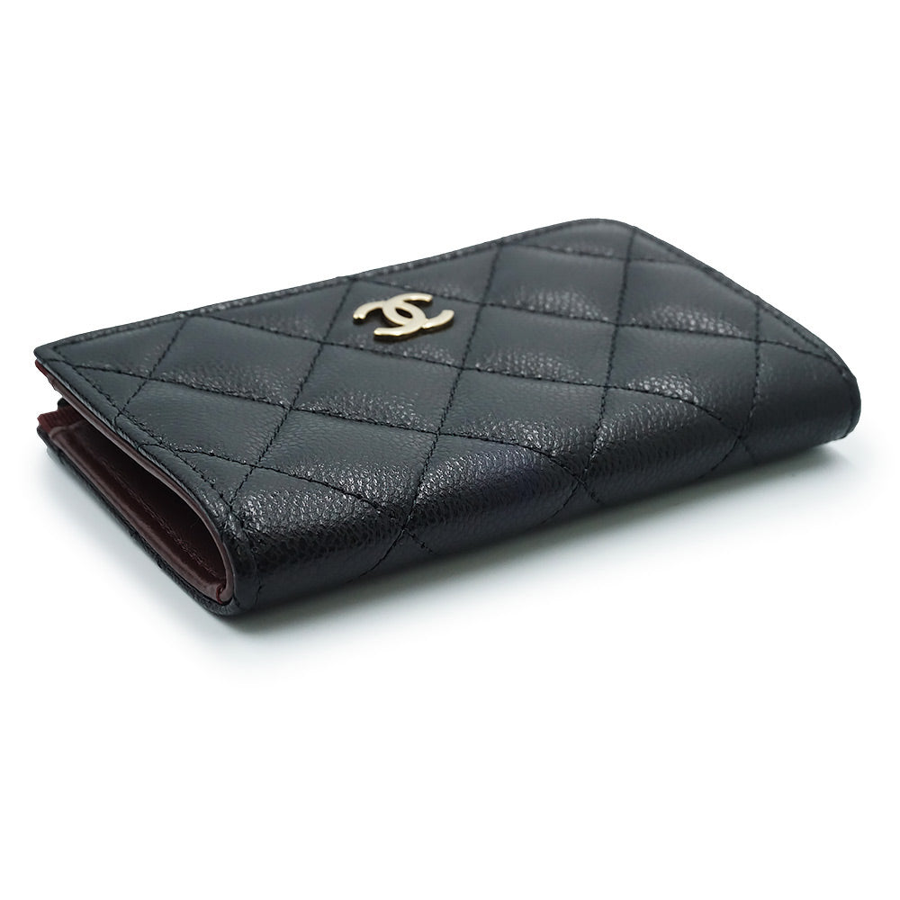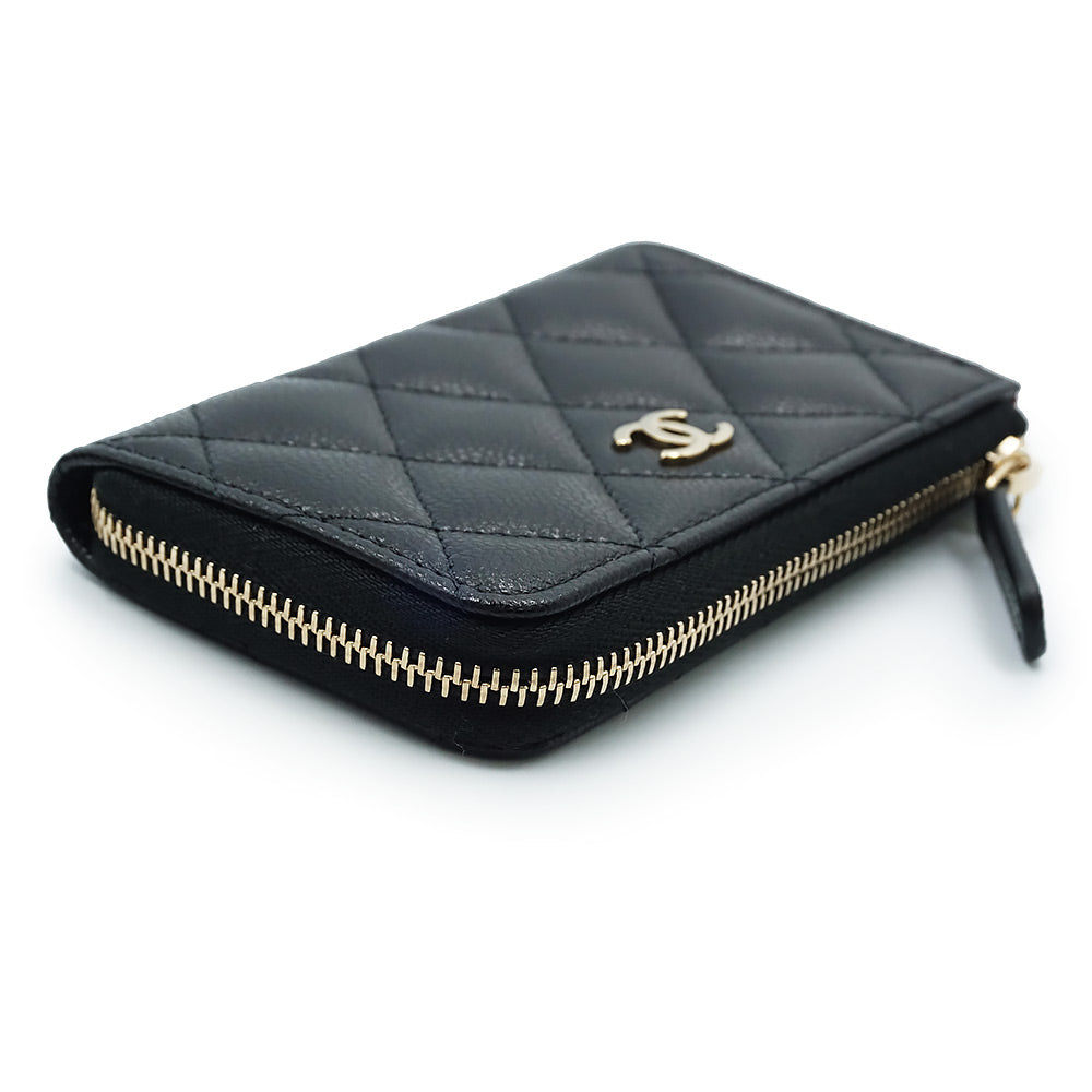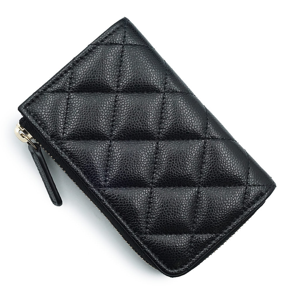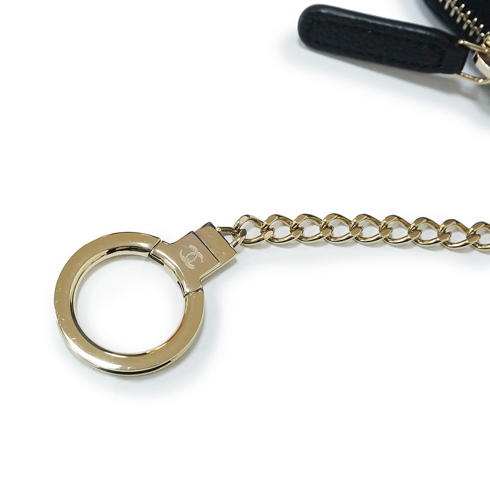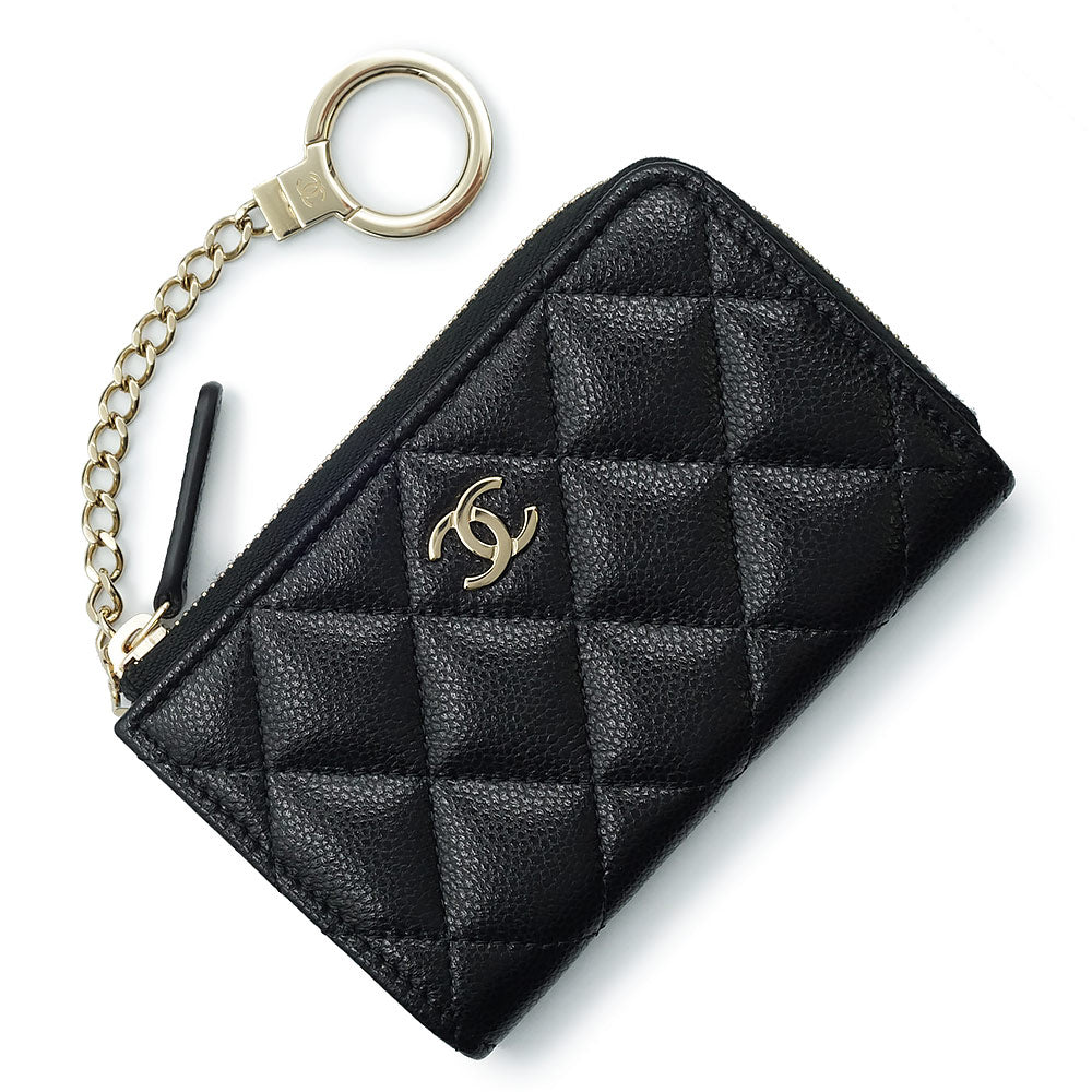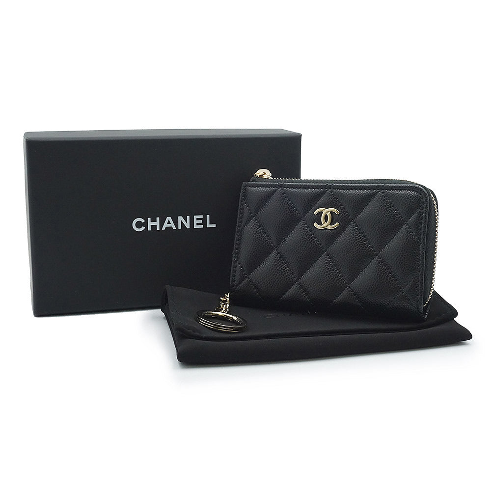 【未使用 展示品】シャネル CHANEL マトラッセ キーリング付き コインケース 小銭入れ 財布 キャビアスキン レザー ブラック ゴールド金具 AP0221 箱付