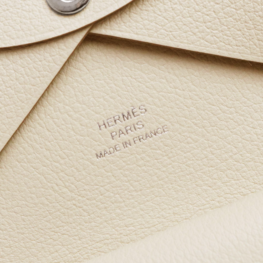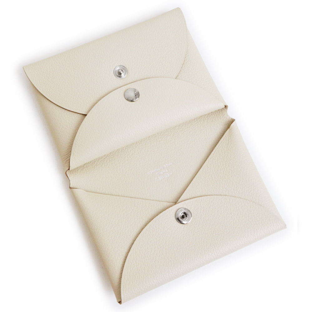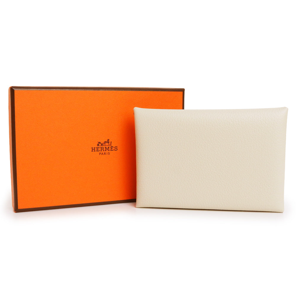 【新品・未使用品】エルメス HERMES カルヴィ デュオ コンパクト カード パス コインケース 名刺 定期 小銭入れ 財布 ヴォーエバーカラー レザー ベトン オフホワイト シルバー金具 W刻印