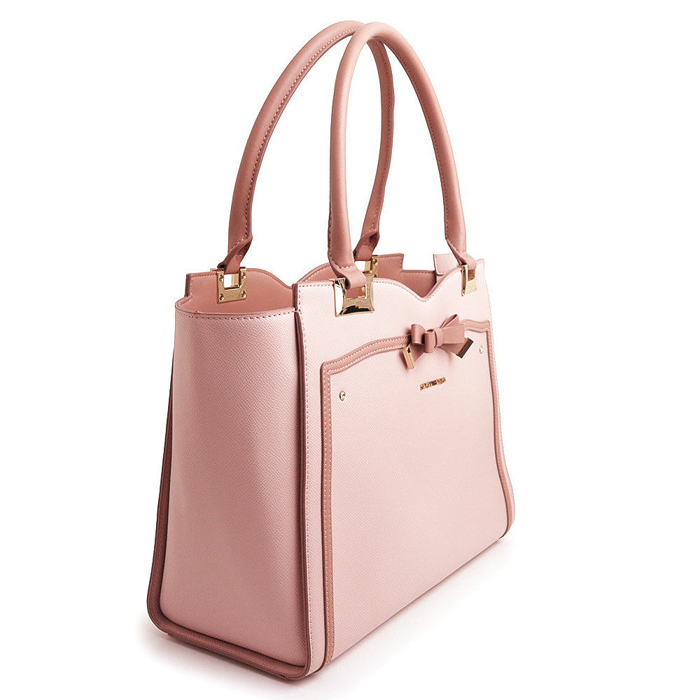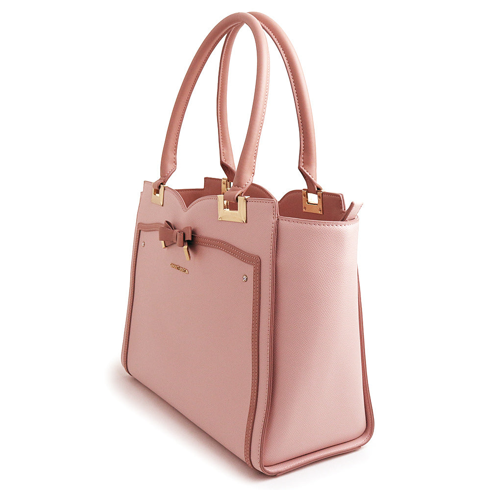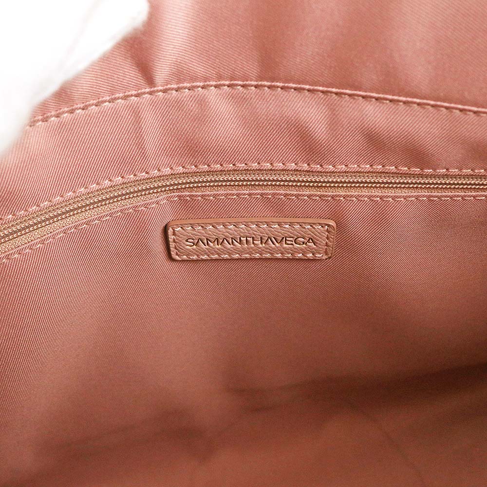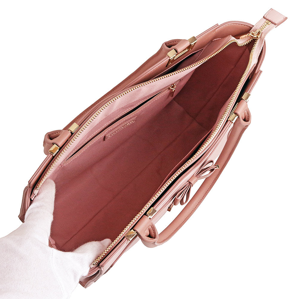 【中古】サマンサベガ Samantha Vega ソリッドリボン トートバッグ 合成皮革 ピンクベージュ ゴールド金具 SA6473AW02729