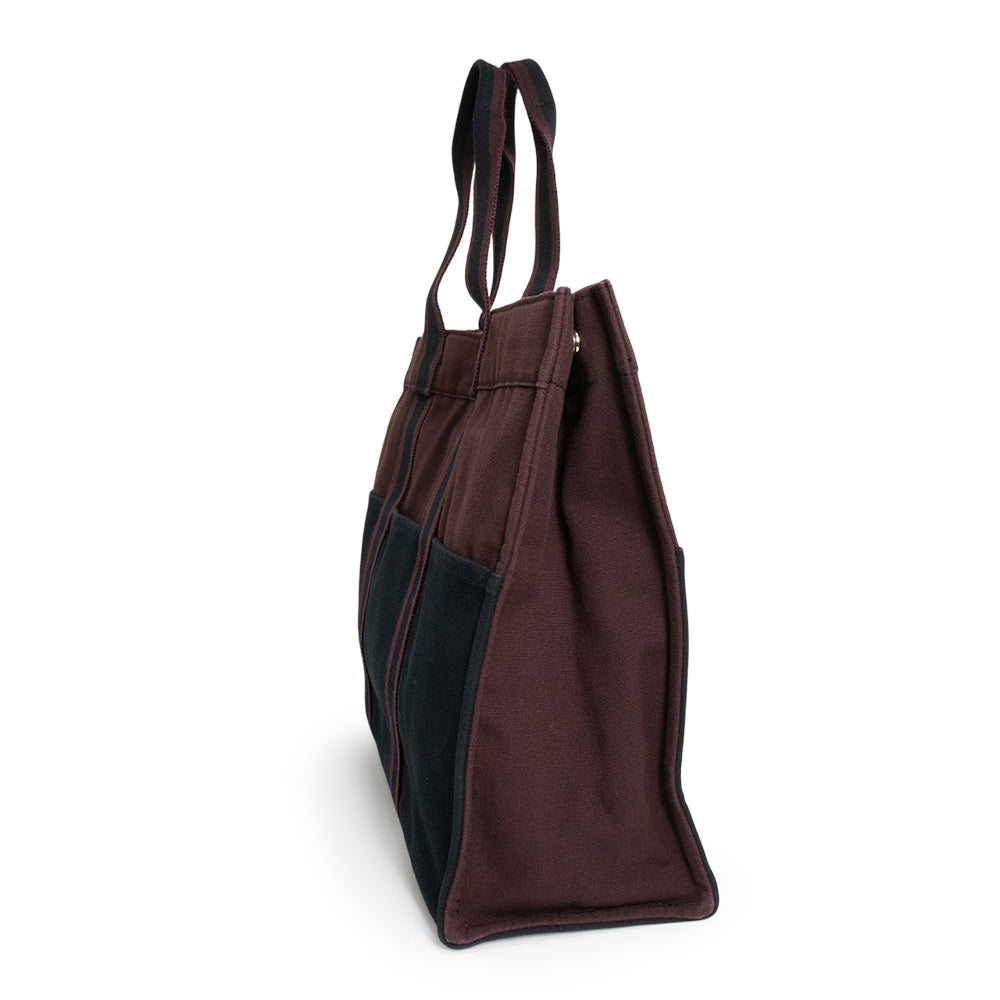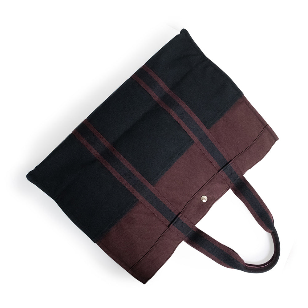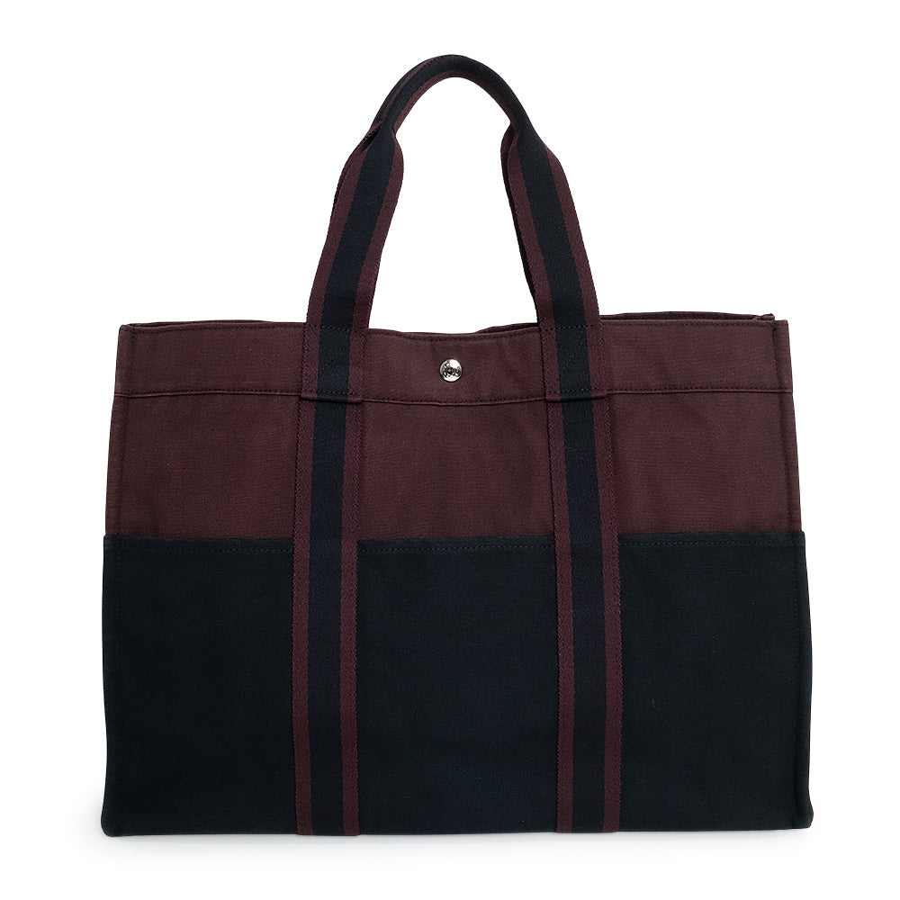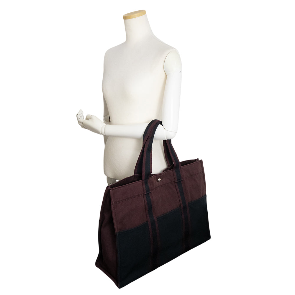 【中古】エルメス HERMES フールトゥ GM トート ハンドバッグ キャンバス Bordeaux ボルドー ワインレッド Black ブラック シルバー金具