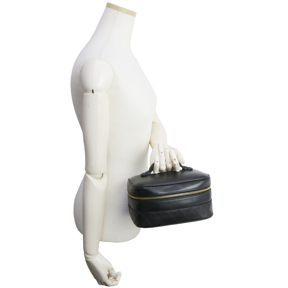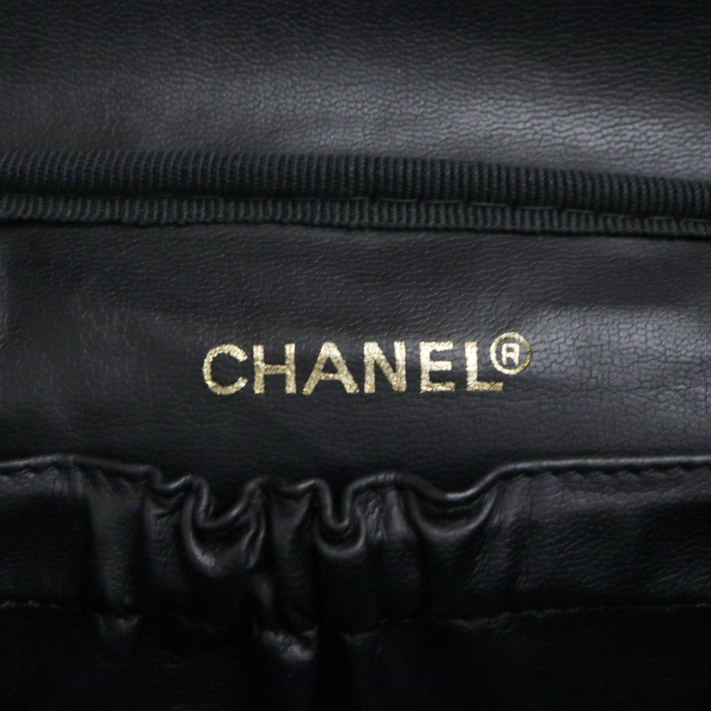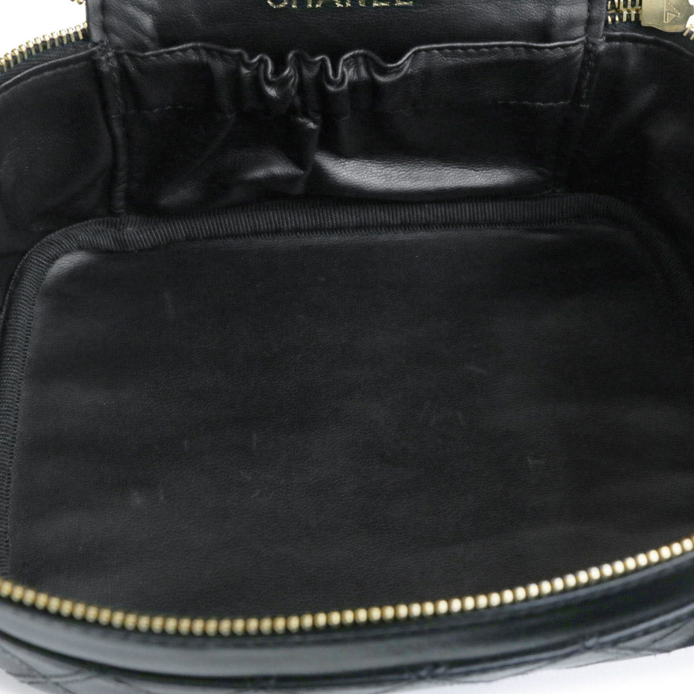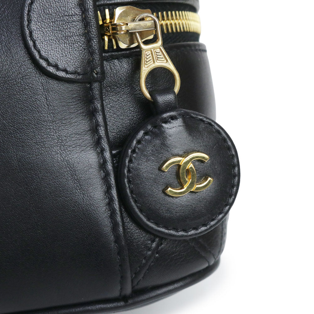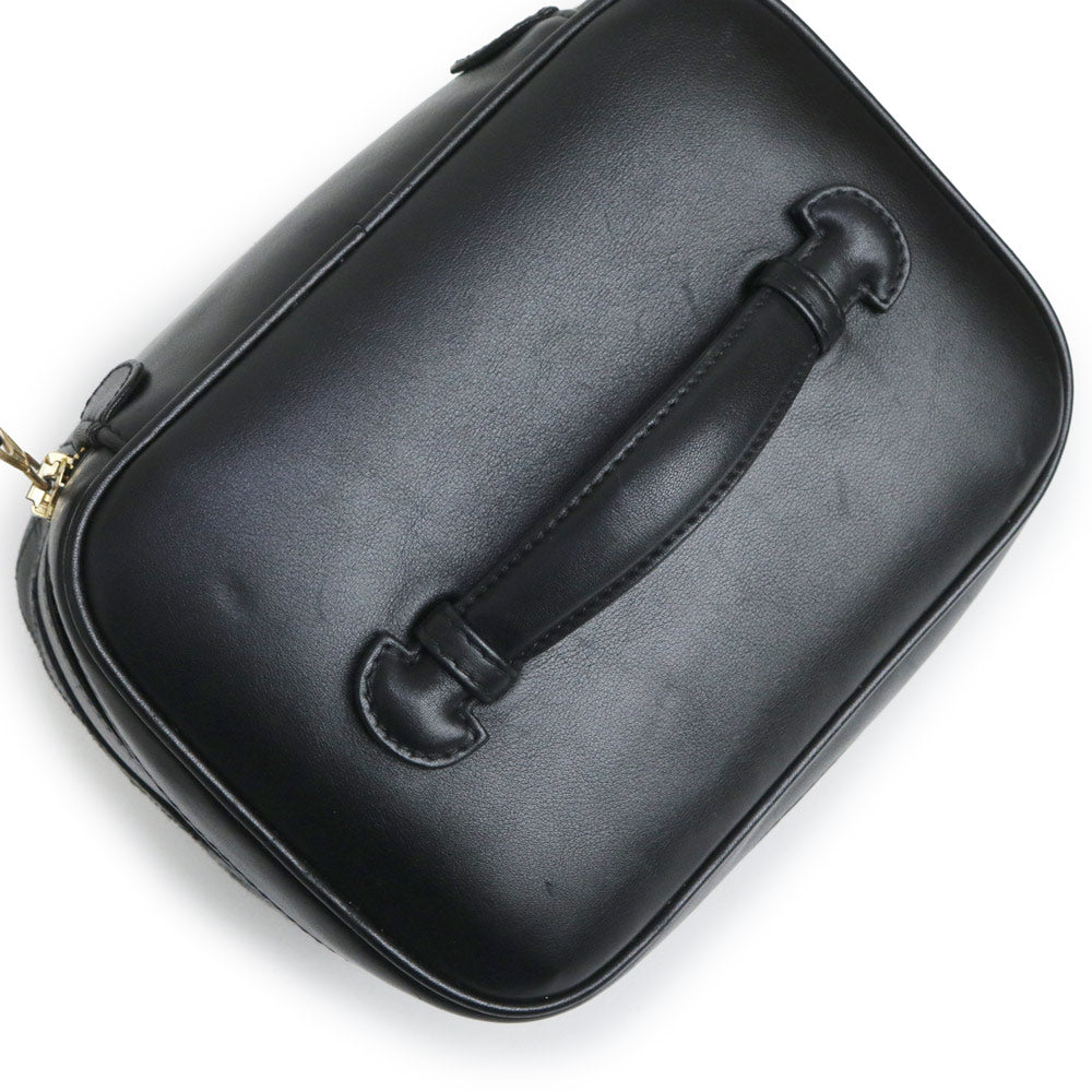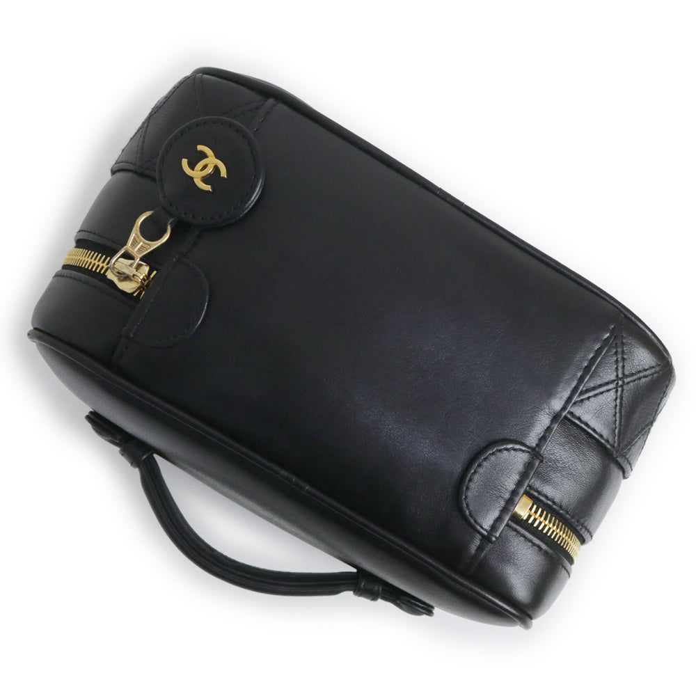 【中古】シャネル CHANEL ビコローレ バニティ ポーチ ハンドバッグ ラムスキン レザー ブラック ゴールド金具 A01618