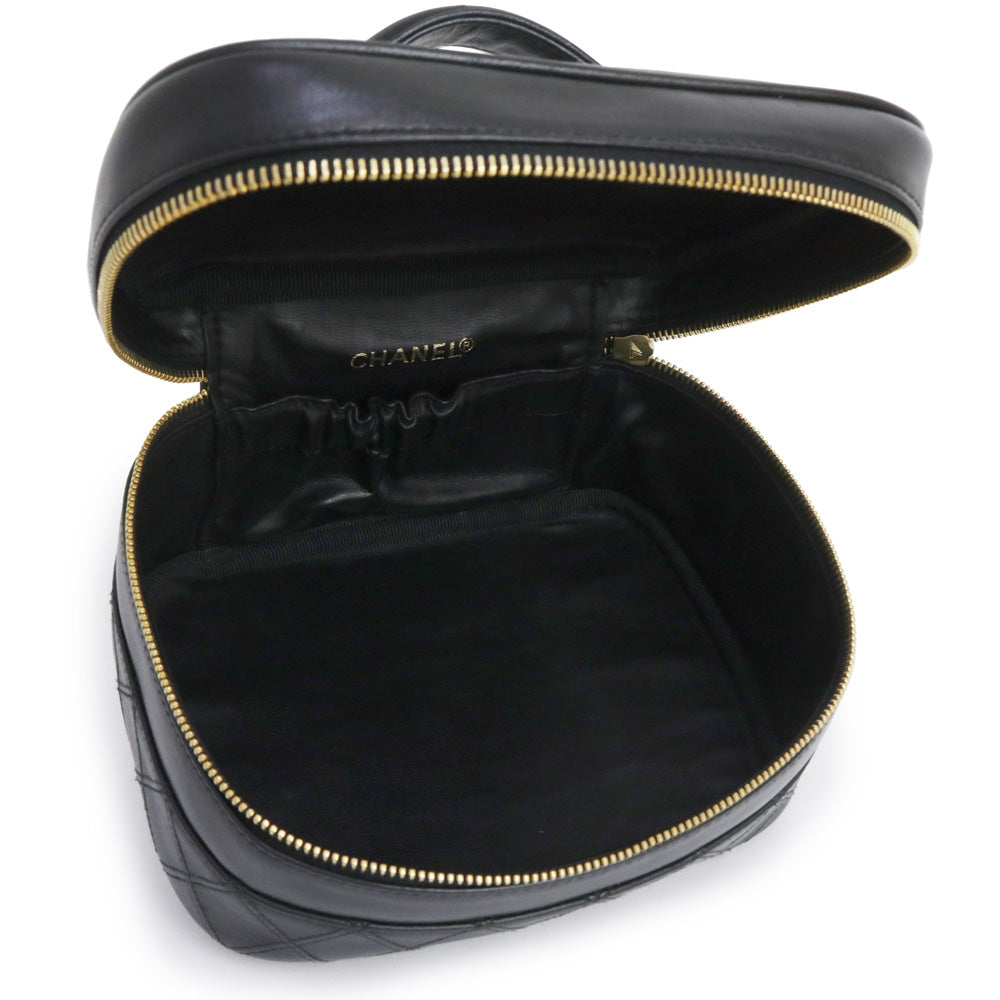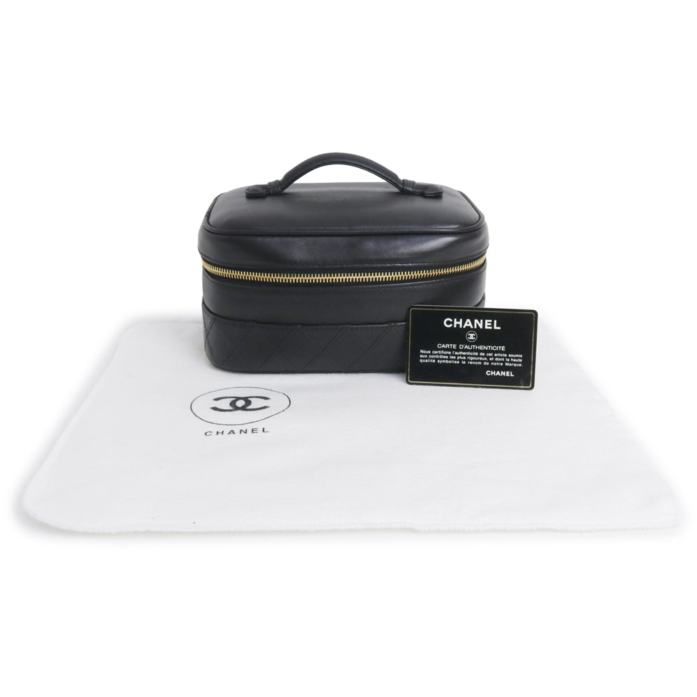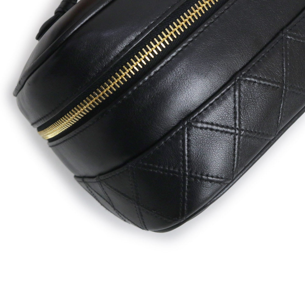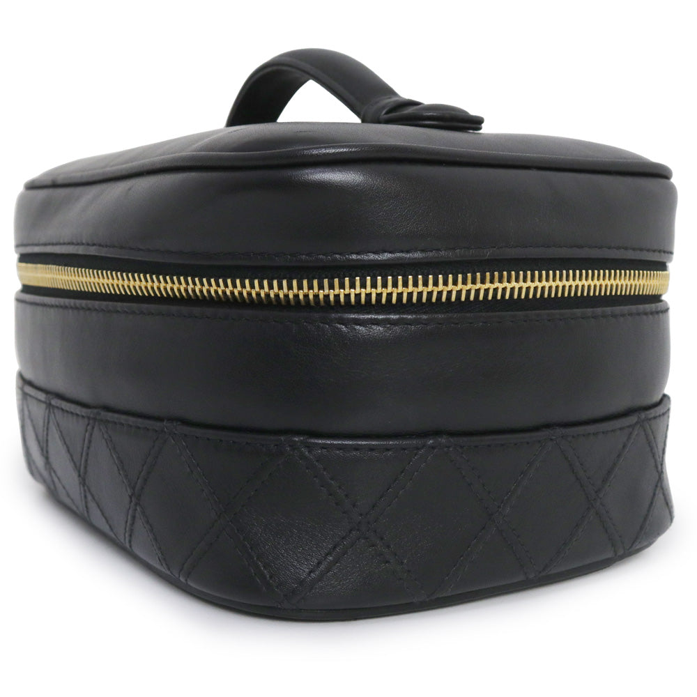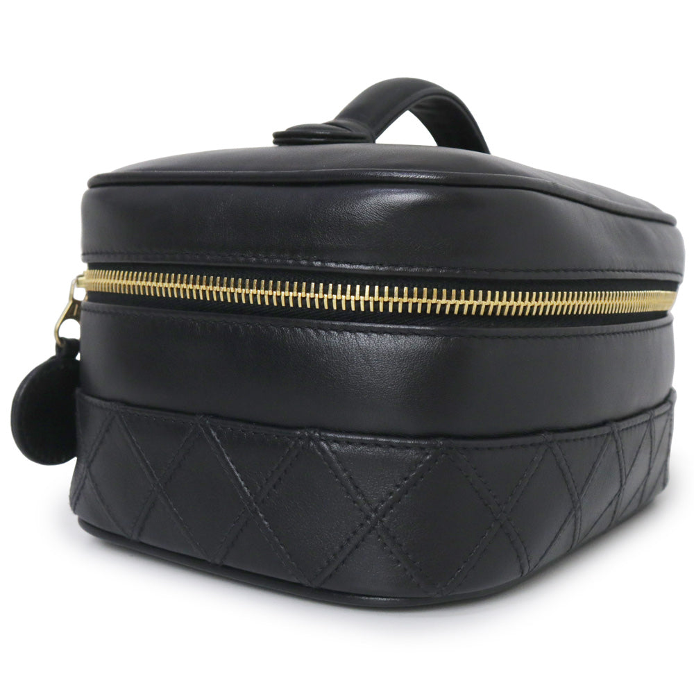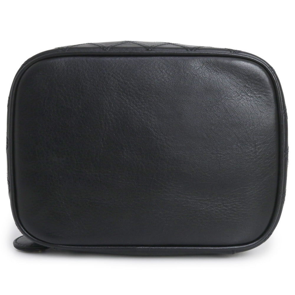 【中古】シャネル CHANEL ビコローレ バニティ ポーチ ハンドバッグ ラムスキン レザー ブラック ゴールド金具 A01618