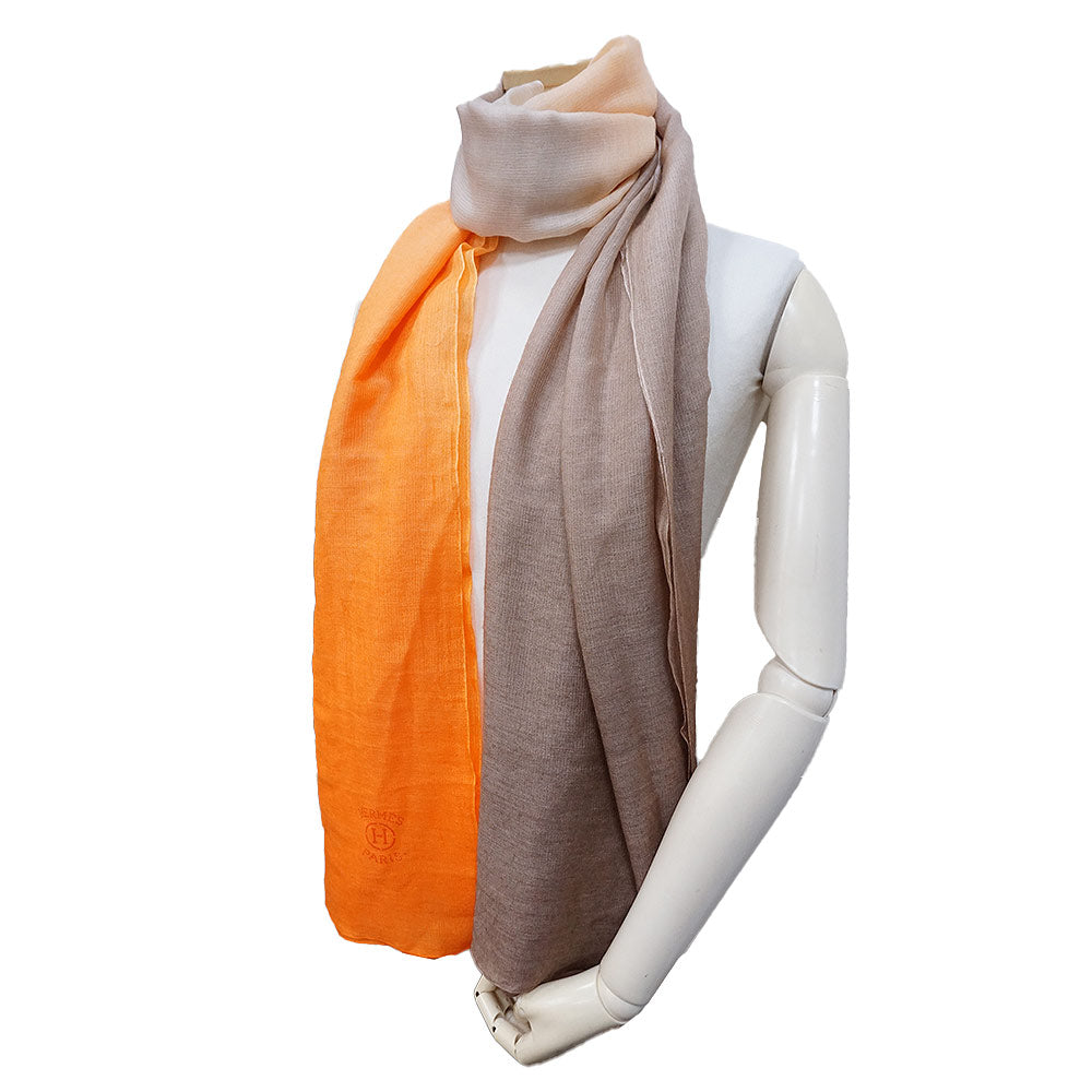 【中古】エルメス HERMES エトール プリュム スカーフ ストール ショール マフラー カシミア75% シルク25% グラデーション オレンジ ベージュ