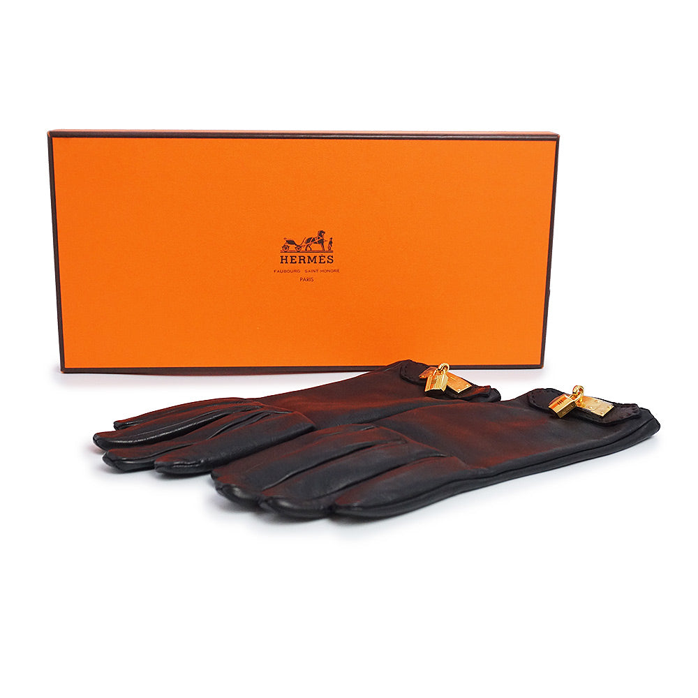 上質なラムスキン素材の気品溢れる「ケリーグローブ」。エルメスのカデナモチーフが揺れ動き目を惹きます。シルク100%のライニングは柔らかで暖か、触り心地も抜群。手元をエレガントに彩ってくれる、寒い冬のオシャレにピッタリのアイテムです。 |