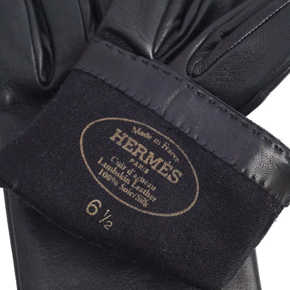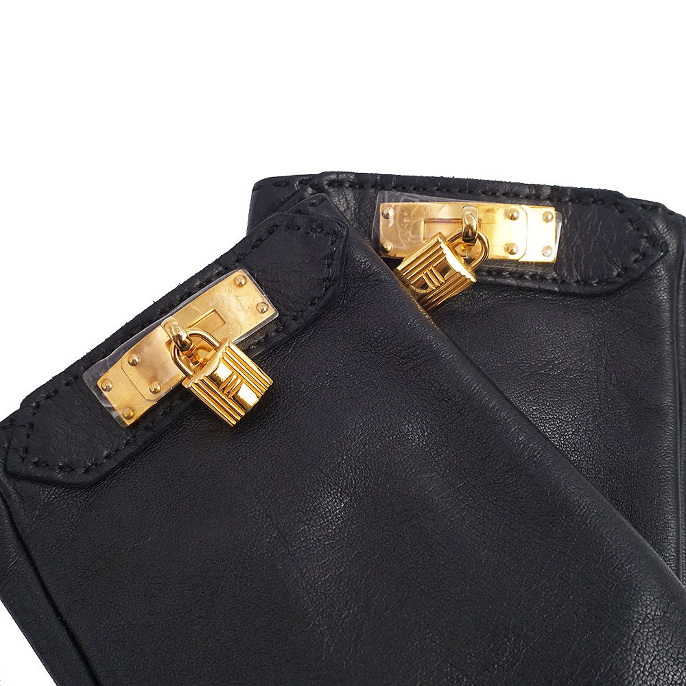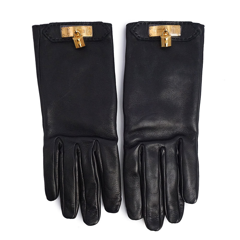 【中古】エルメス HERMES ケリー ソヤ 手袋 グローブ #6 1/2 ラムスキン レザー ノワール ブラック ゴールド金具 箱付