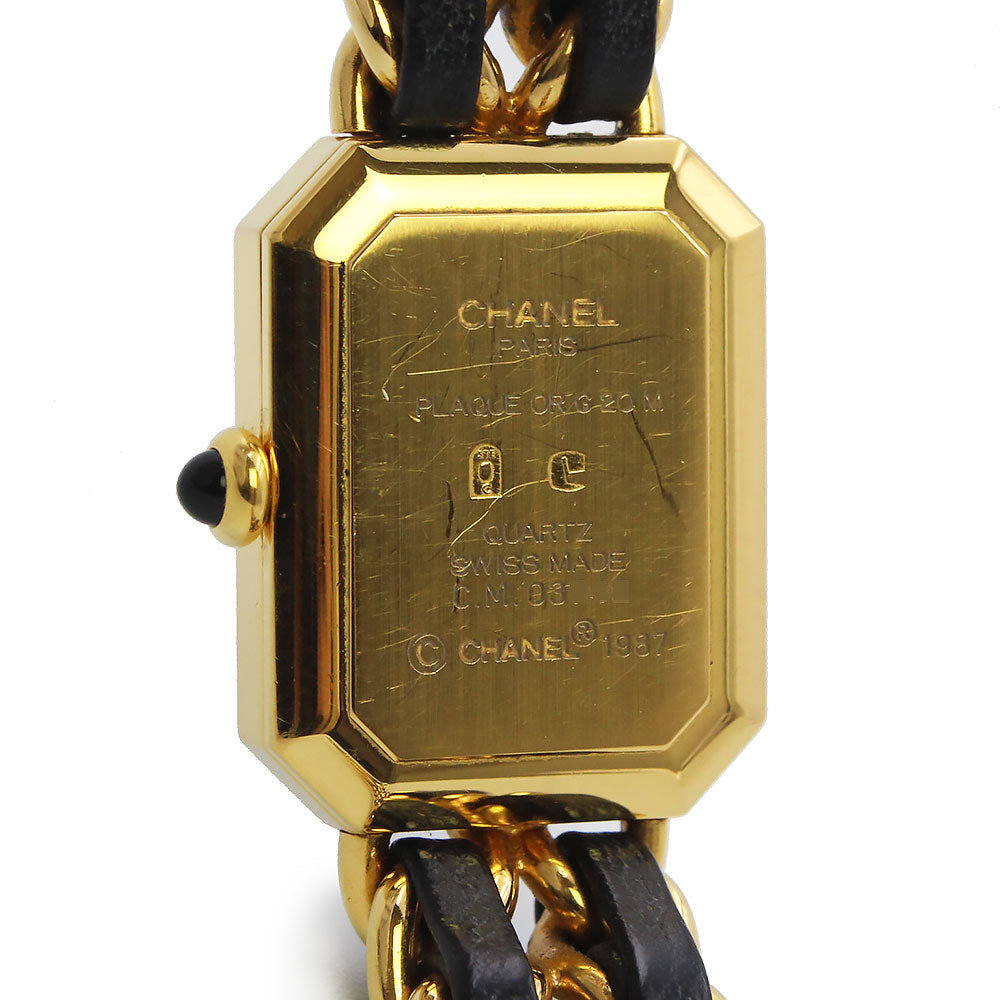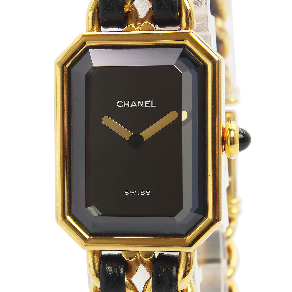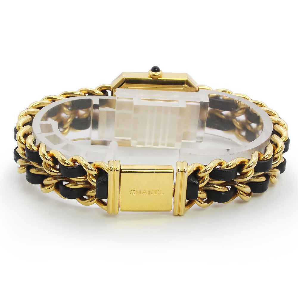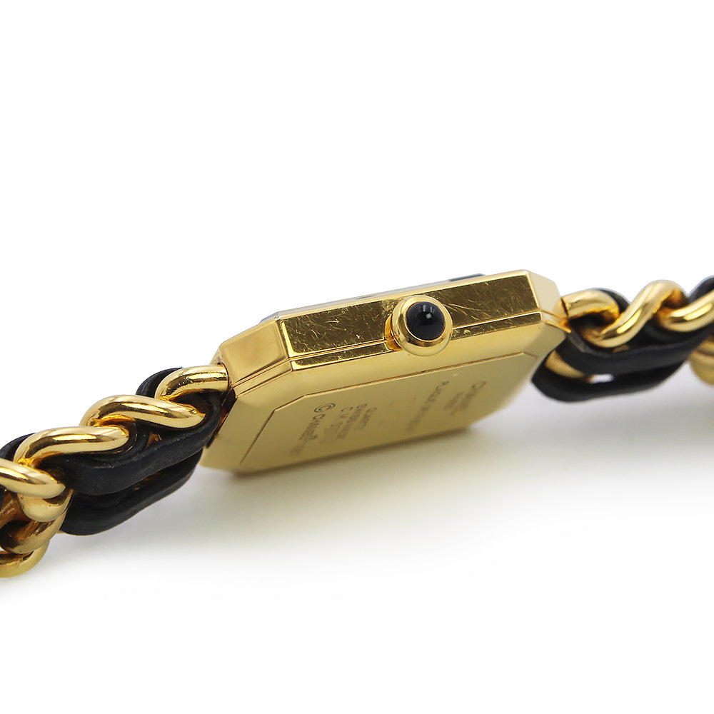 【中古】シャネル CHANEL プルミエール クオーツ 腕時計 XLサイズ カーフスキン レザー GP ブラック ゴールド H0001-XL