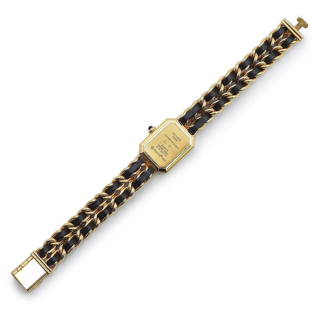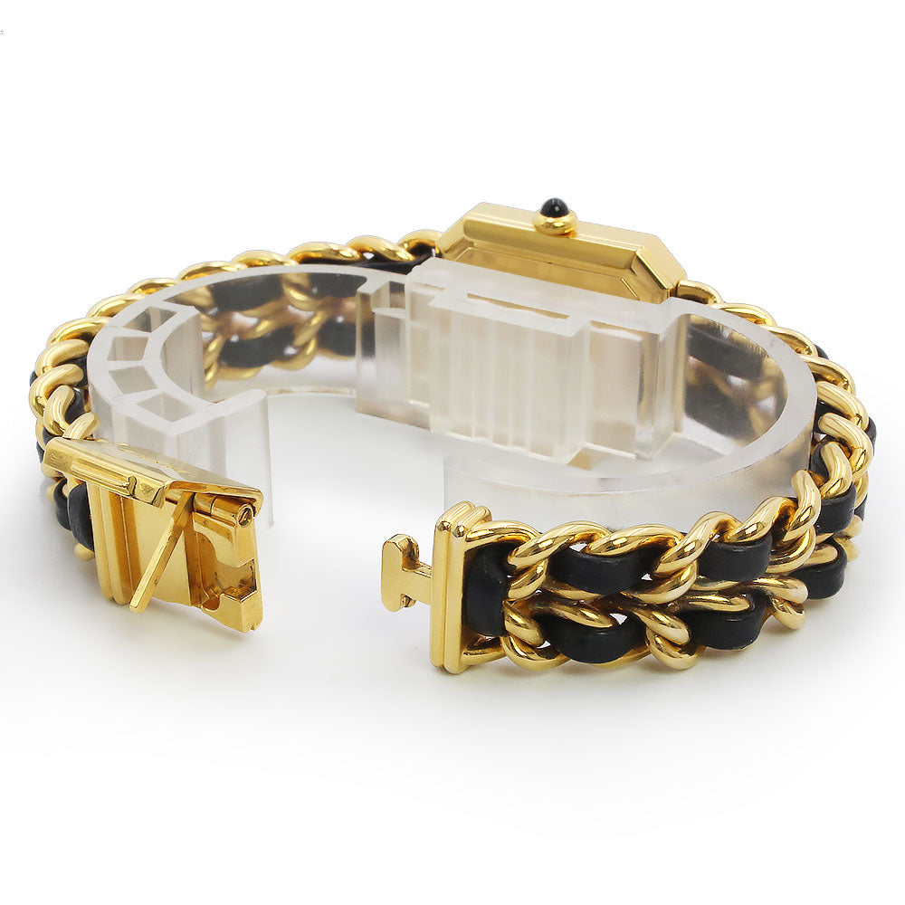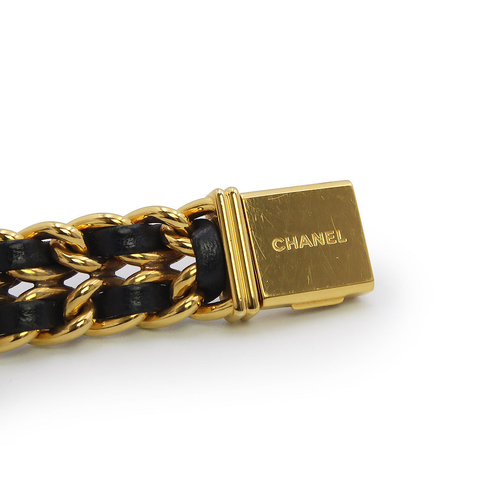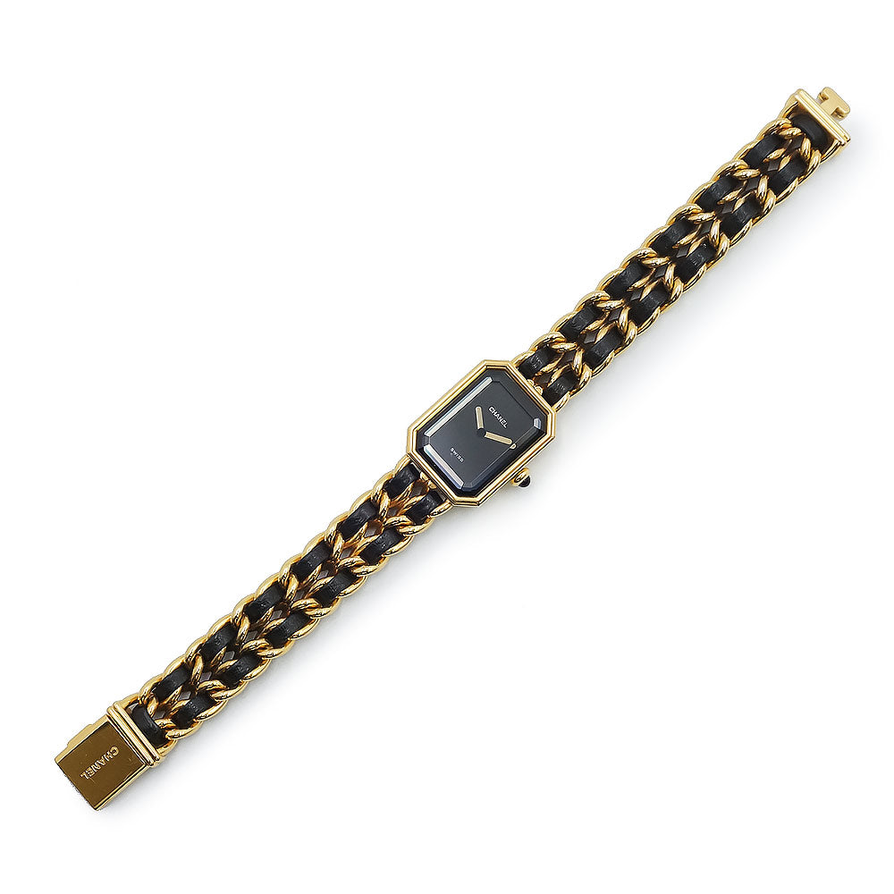 【中古】シャネル CHANEL プルミエール クオーツ 腕時計 XLサイズ カーフスキン レザー GP ブラック ゴールド H0001-XL