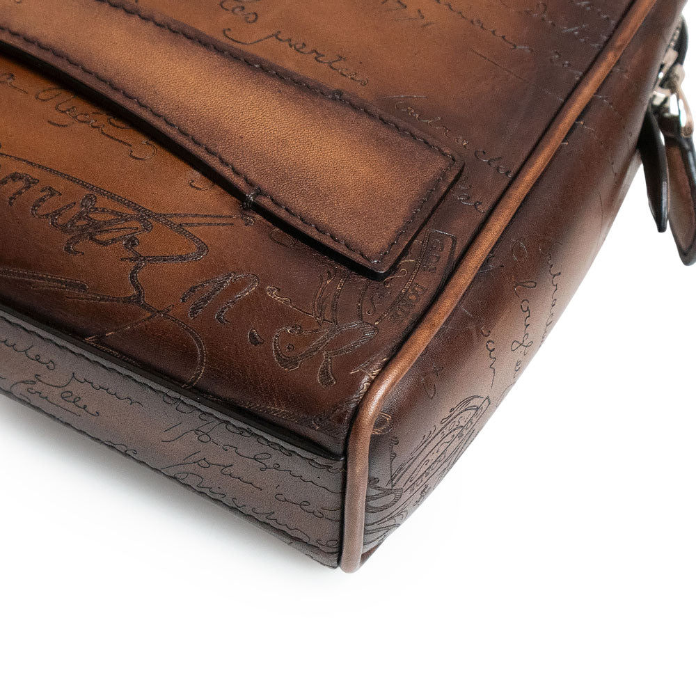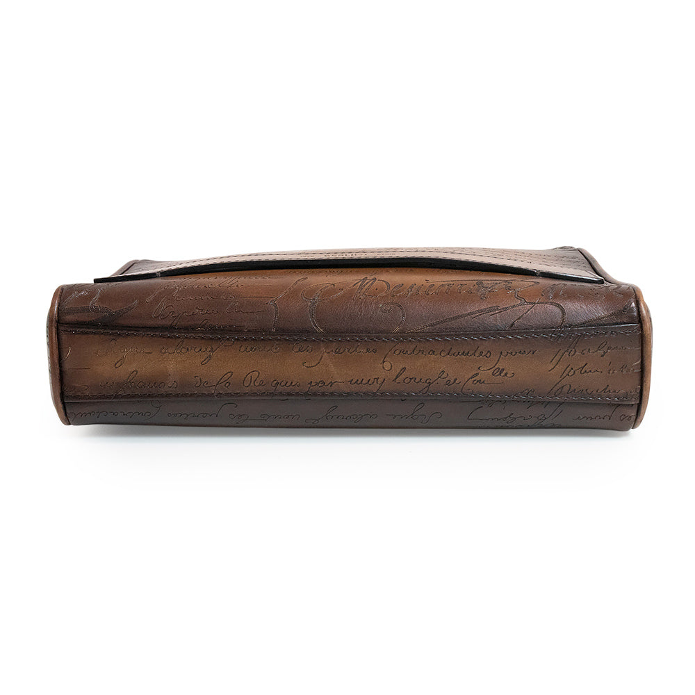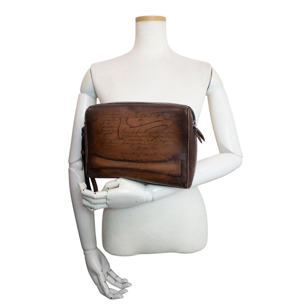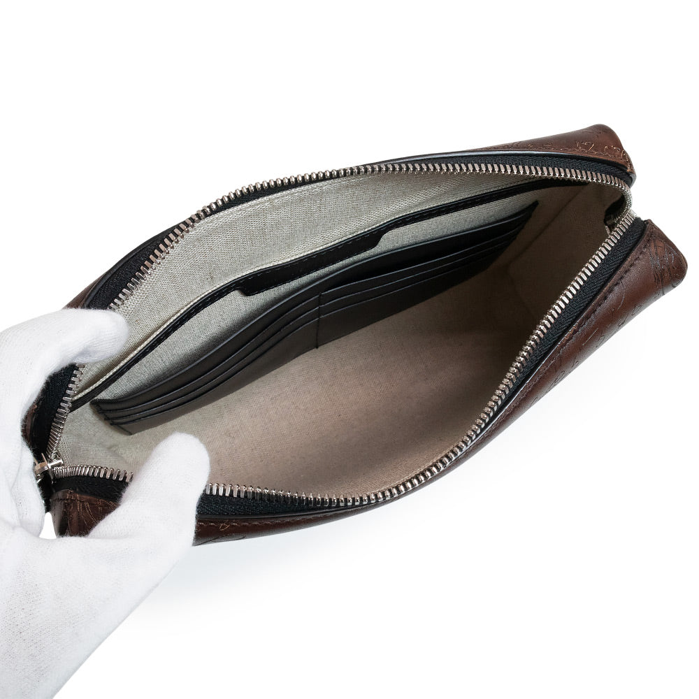 【中古】ベルルッティ Berluti ローズウッド ジップポーチ クラッチ セカンドバッグ ヴェネチアカーフレザー ブラウン シルバー金具 ROSEWOOD