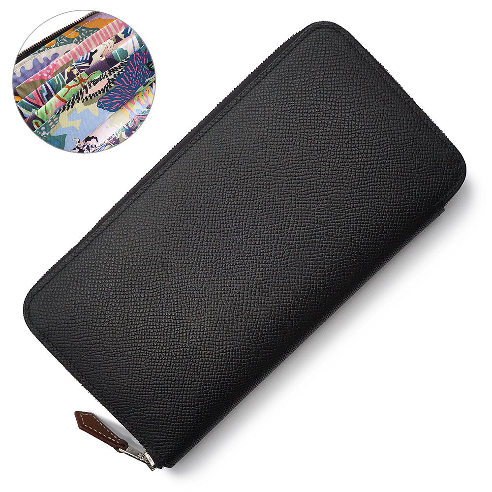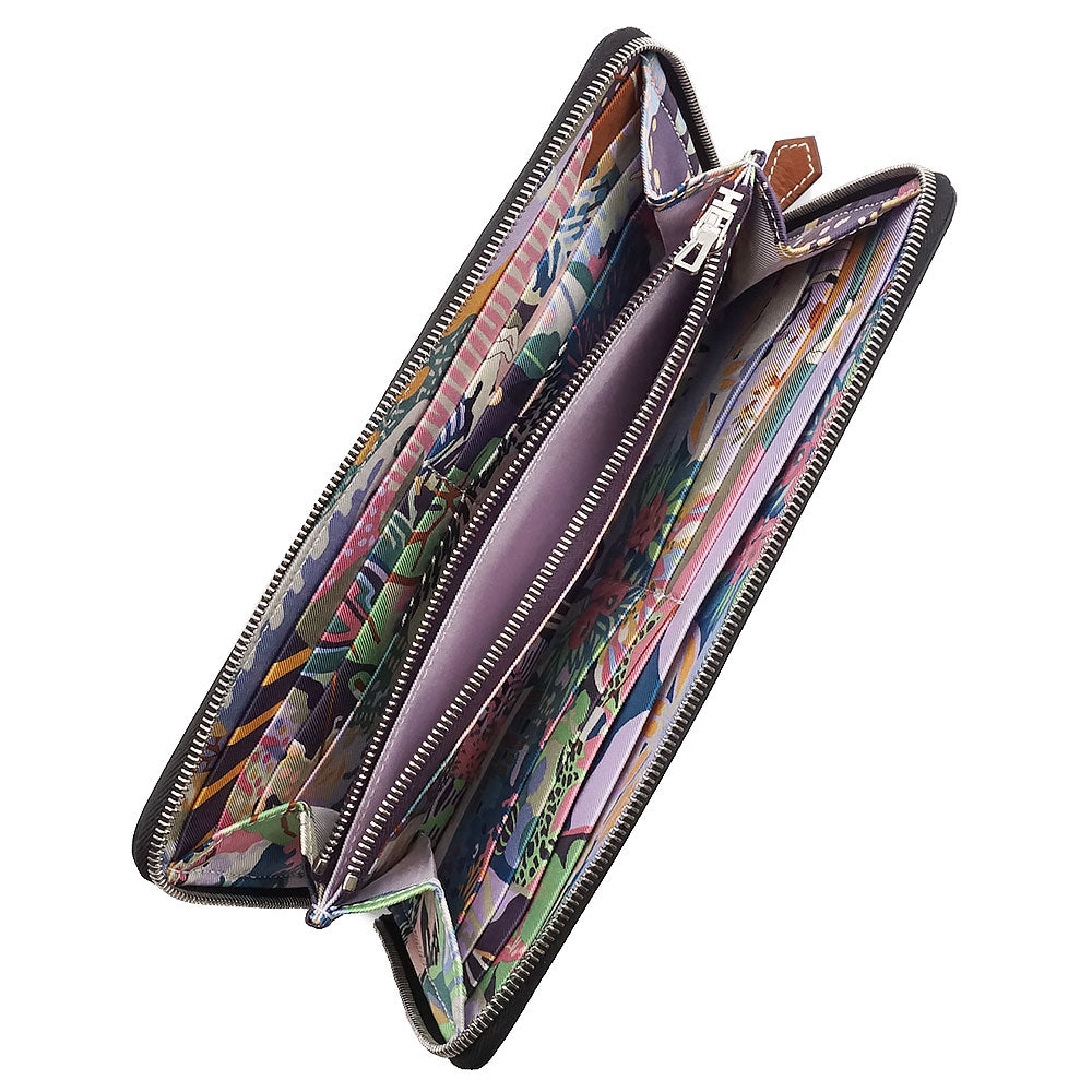 エルメスのジップ長財布、アザップロング シルクイン。内生地にラグジュアリー感溢れるシルクスカーフが使われており、エルメスならではの高級感を感じさせます。キュートなルックスと上質な素材どちらも兼ね備えた贅沢なアイテムです。 |