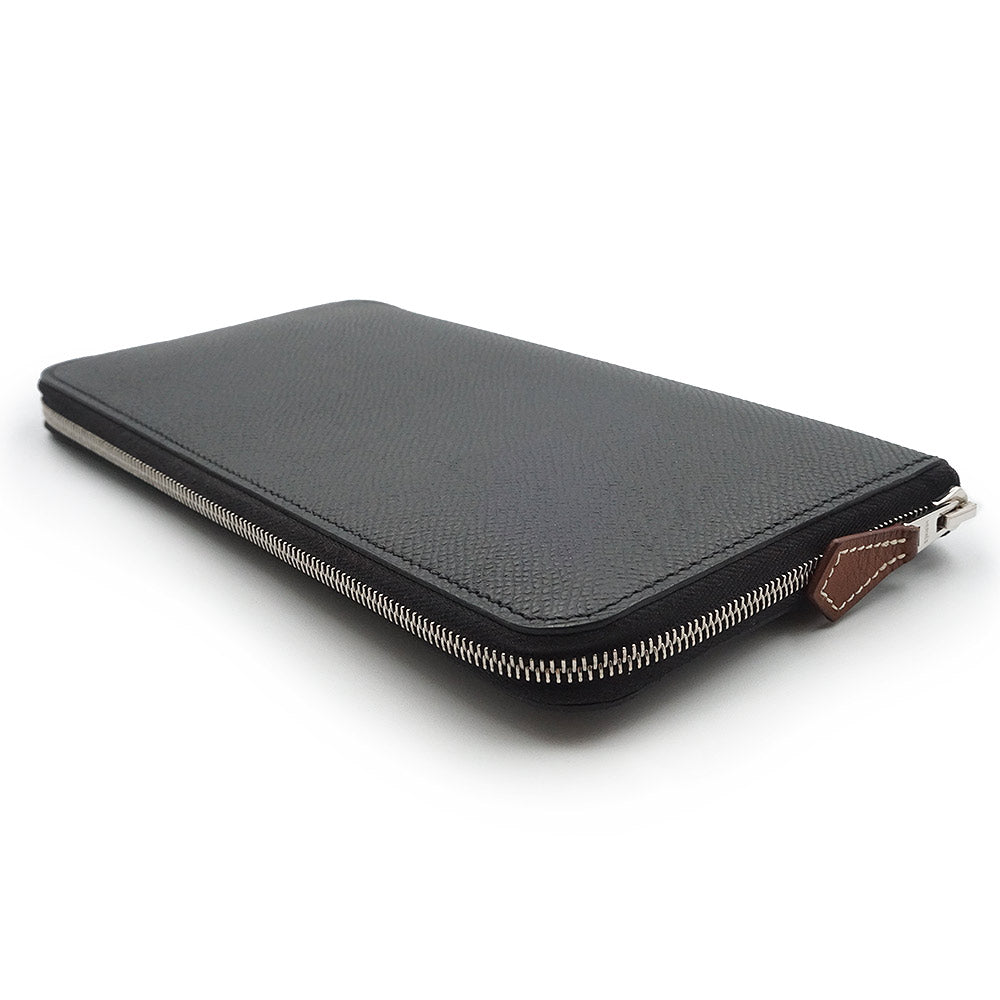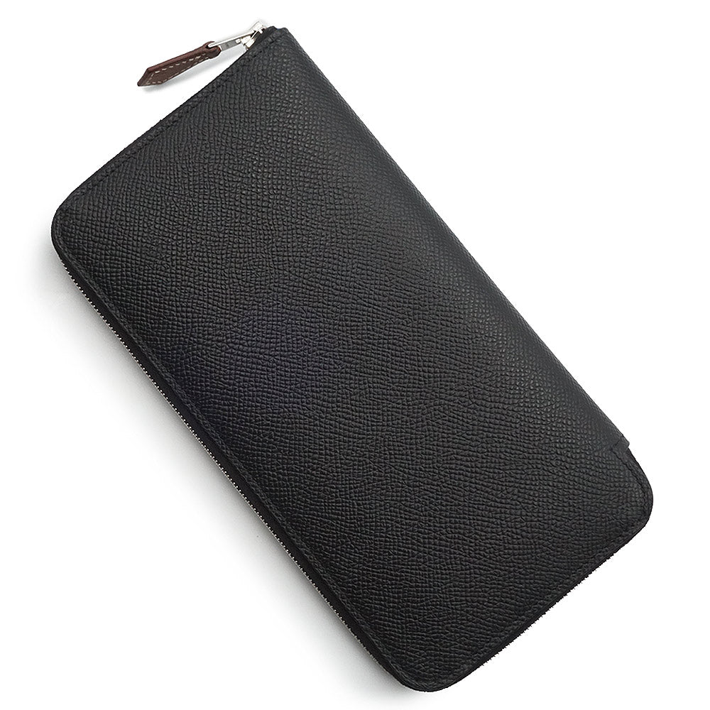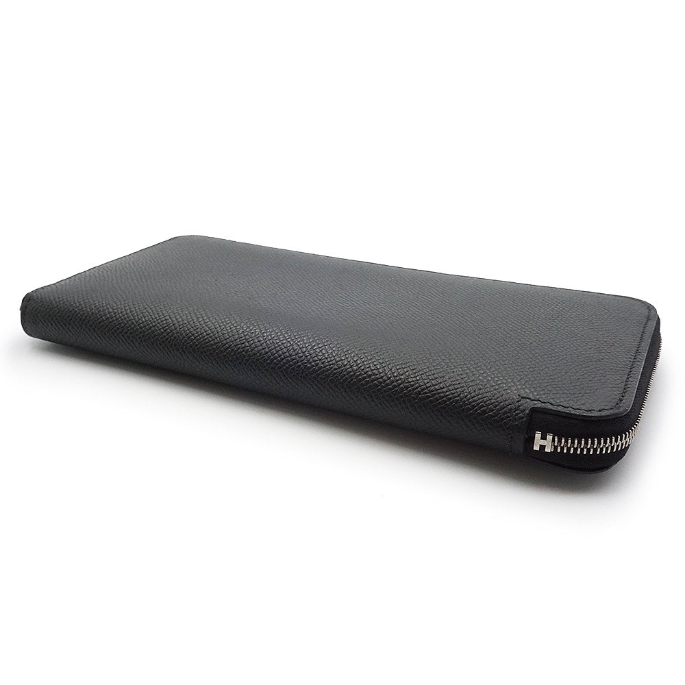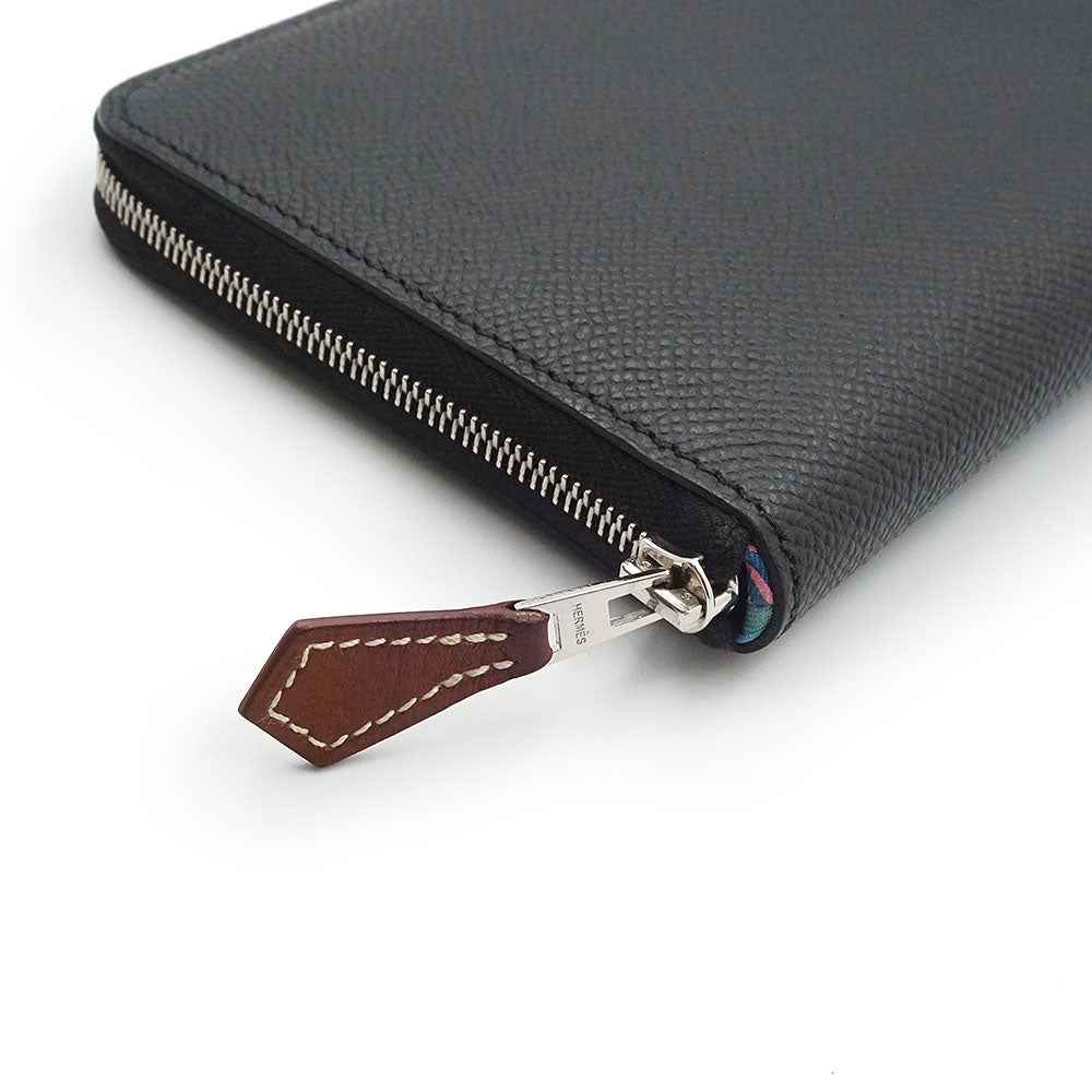 【中古】エルメス HERMES アザップ ロング シルクイン EN LIBERTE アンリベルテ 自由に ラウンドファスナー ジップ 長財布 ヴォーエプソン レザー ノワール カシス ヴェールフィズ ブラック シルバー金具 W刻印