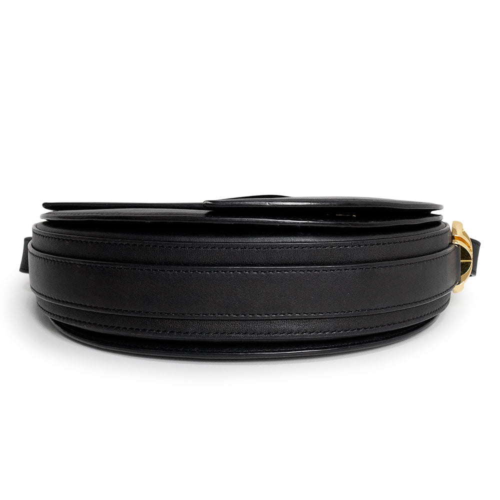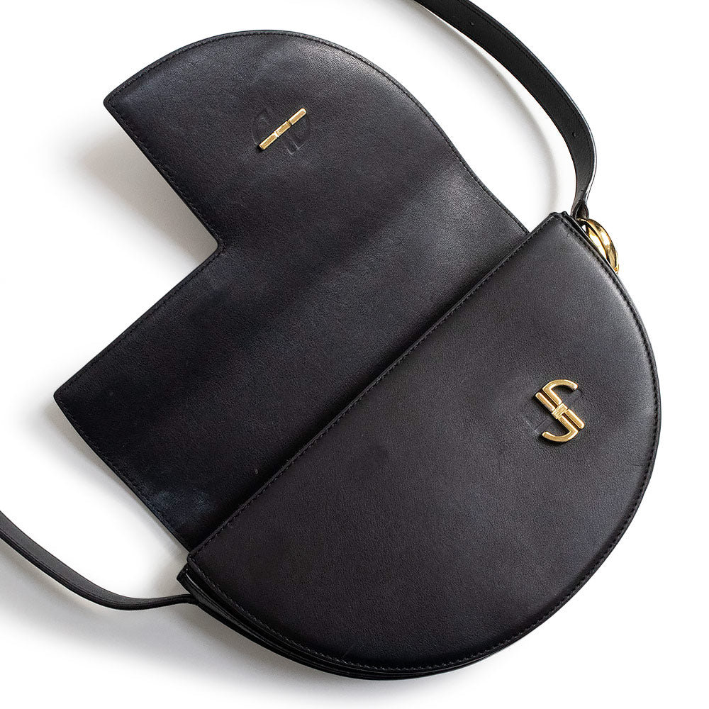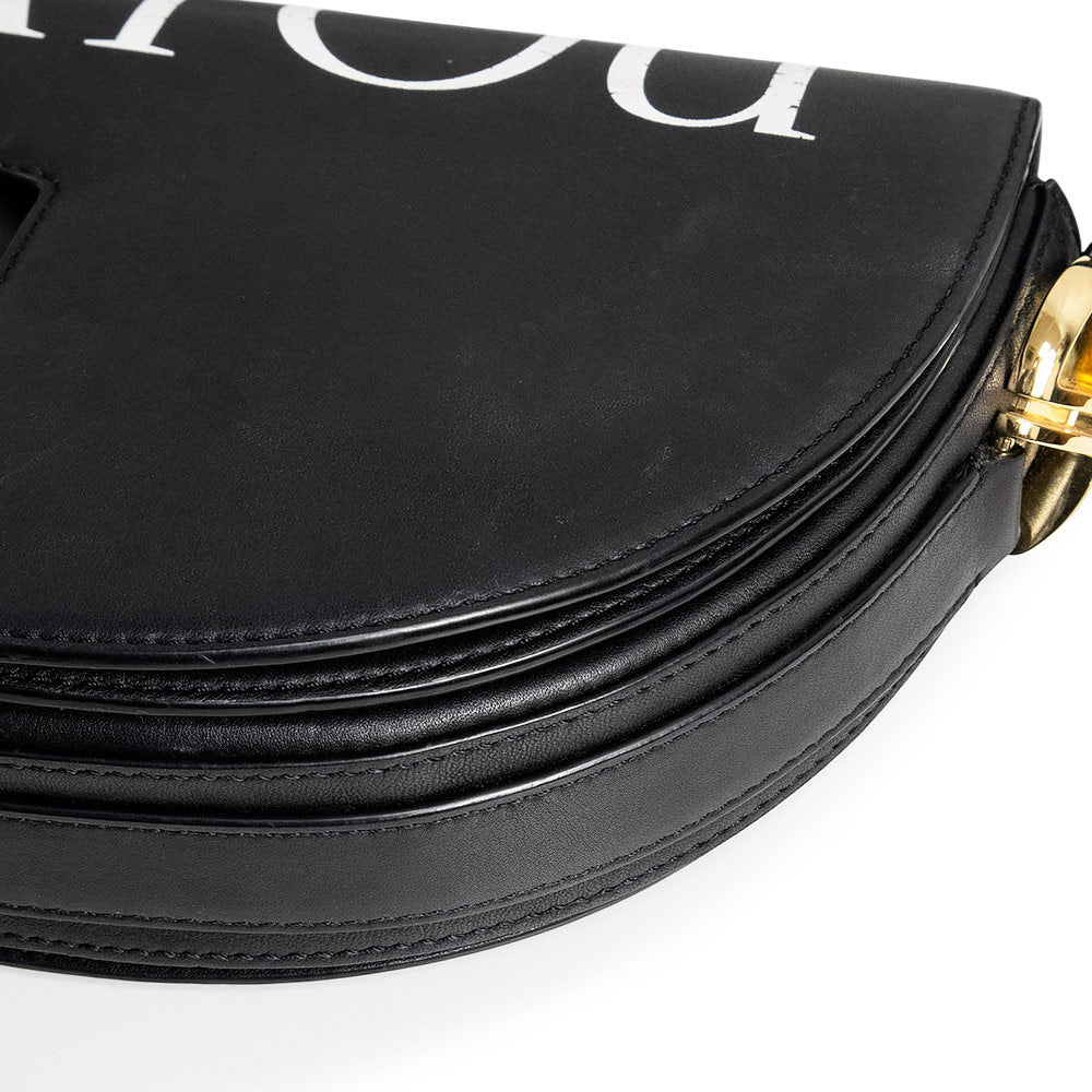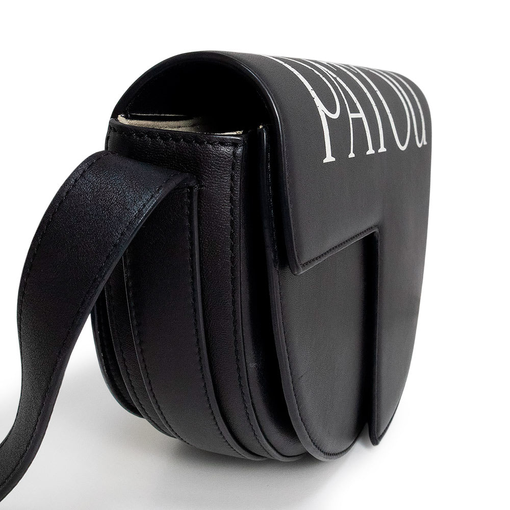 【中古】パトゥ PATOU ロゴプリント ショルダーバッグ 斜め掛け カーフスキン レザー ブラック ゴールド金具 BA0225000900B