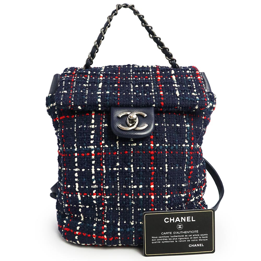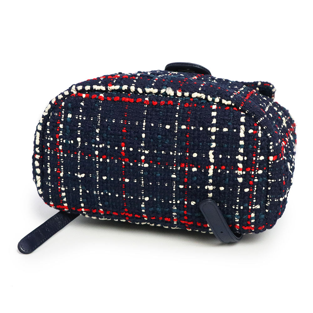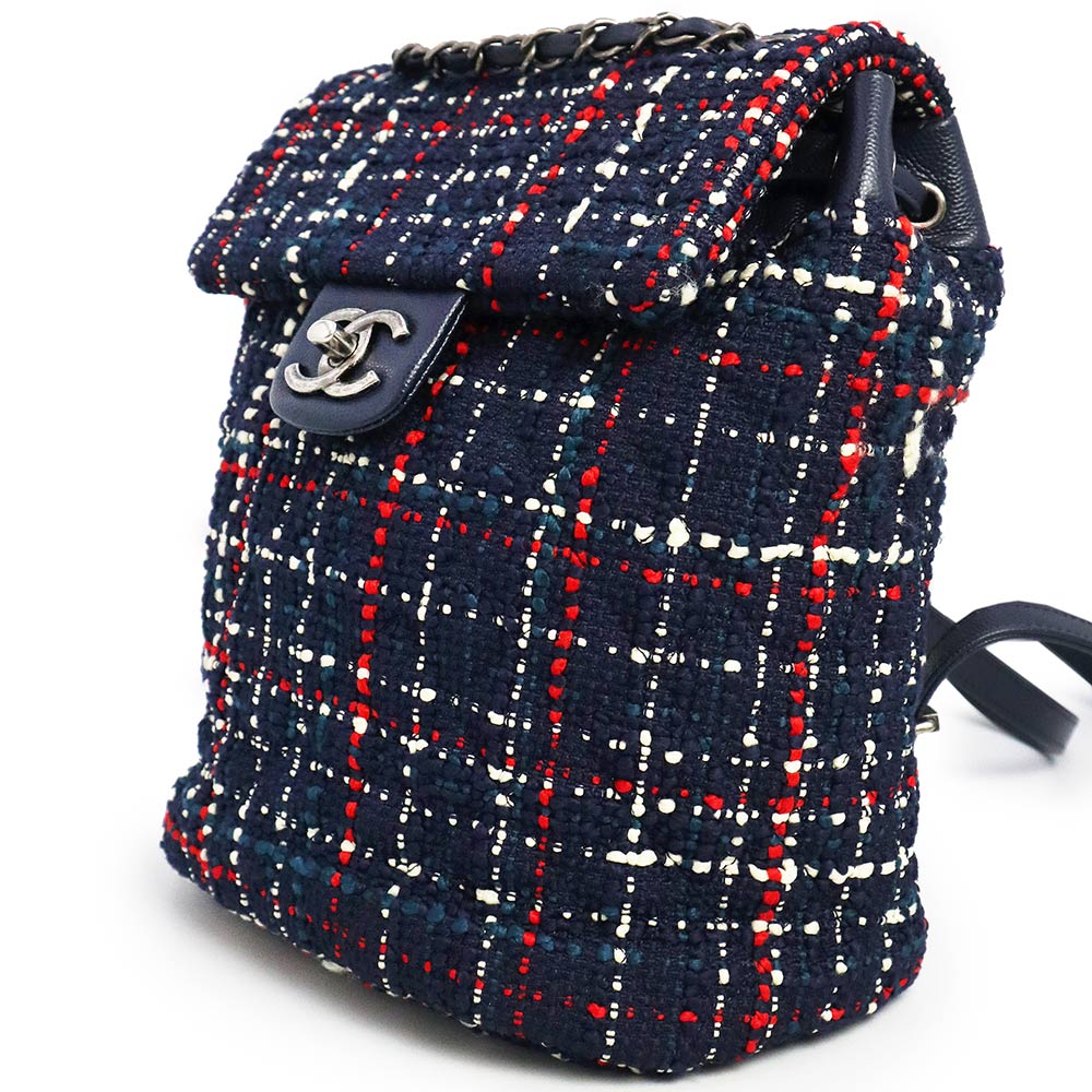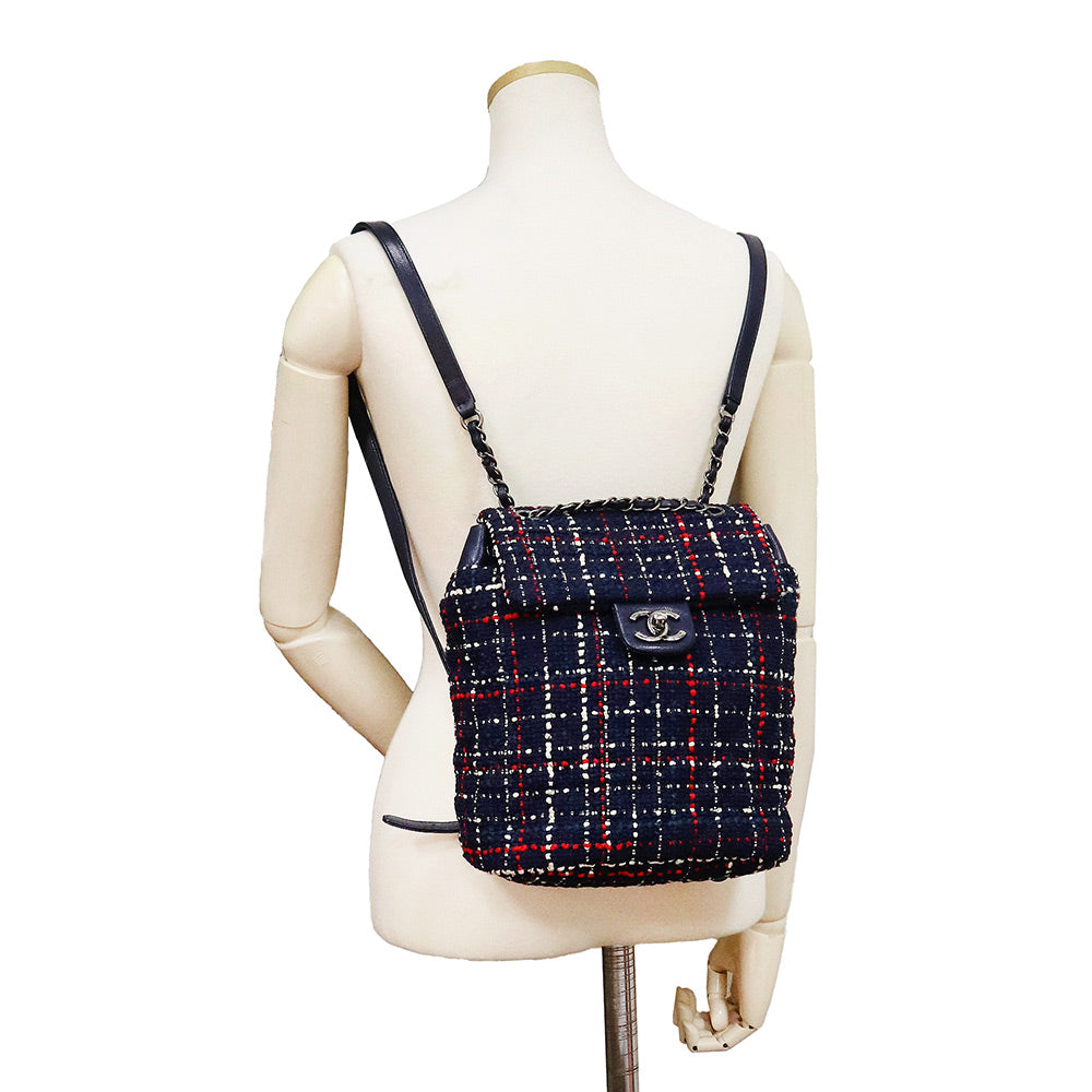 【美品】シャネル CHANEL アーバンスピリット リュック デイパック バックパック ツイード カーフスキン レザー ネイビー アンティークシルバー金具 A91121