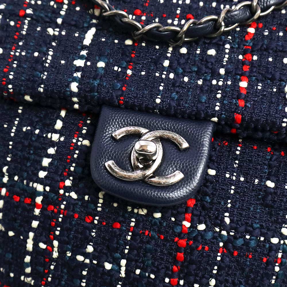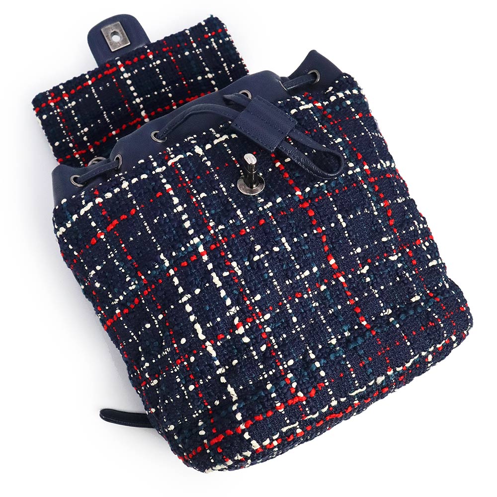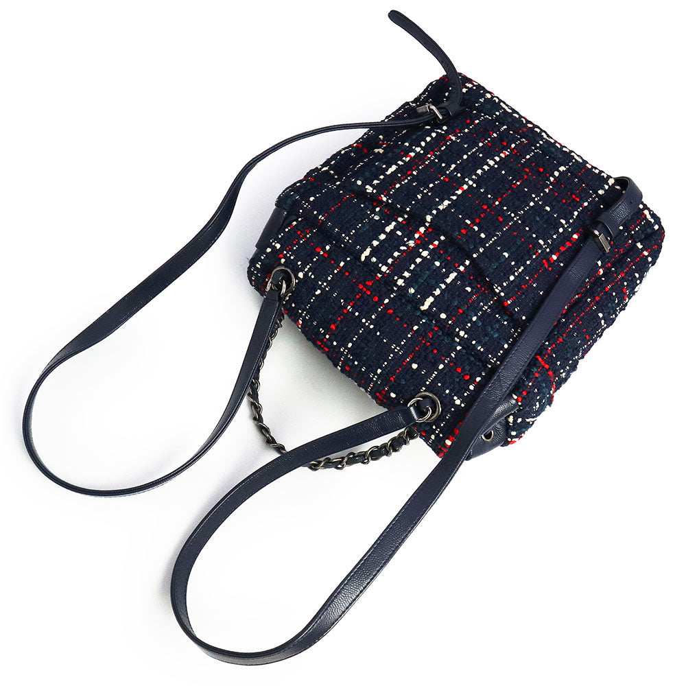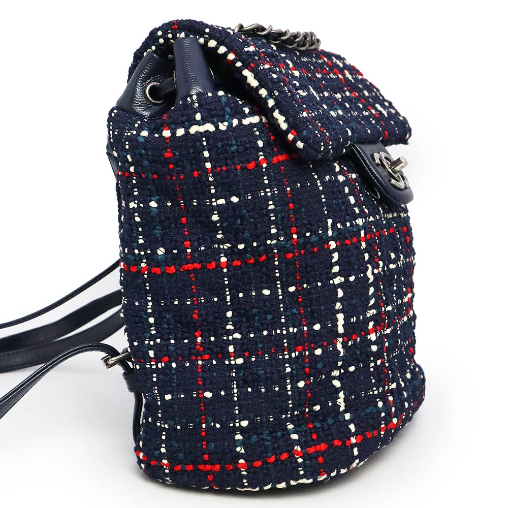 【美品】シャネル CHANEL アーバンスピリット リュック デイパック バックパック ツイード カーフスキン レザー ネイビー アンティークシルバー金具 A91121