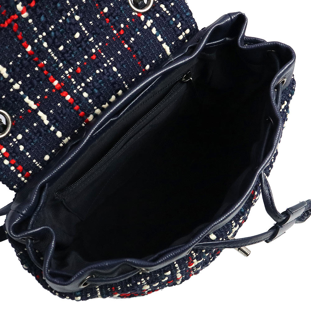 上品な雰囲気漂うCHANELのツイードリュックです。内側は収納力が高く、日常使いにもぴったり。ショッピングや旅行などアクティブシーンにも相性抜群っです。 |