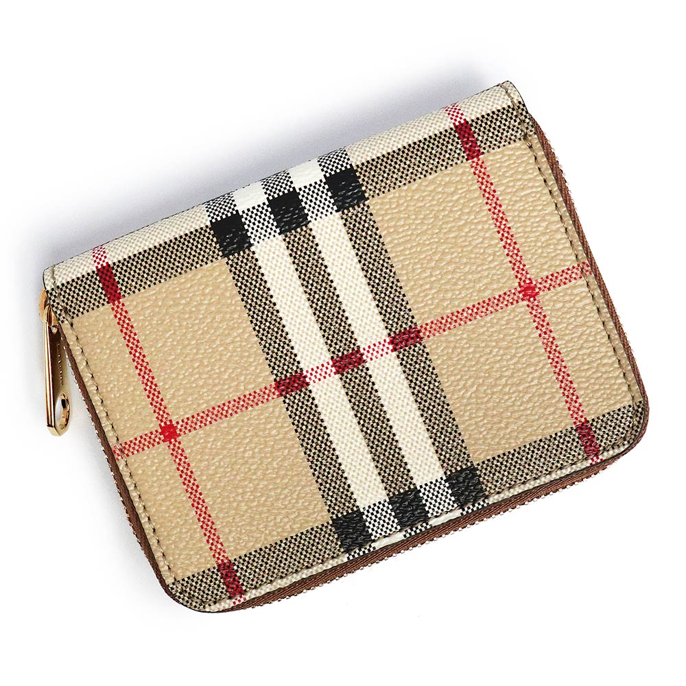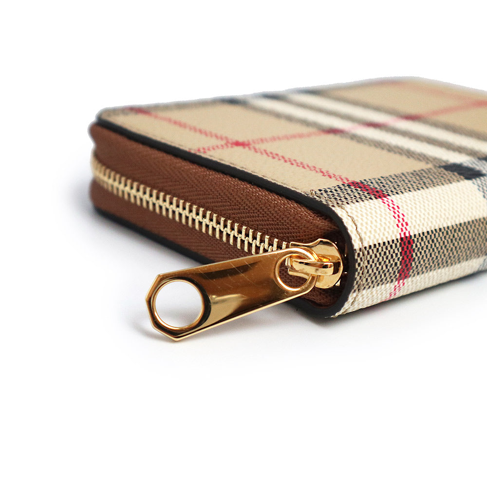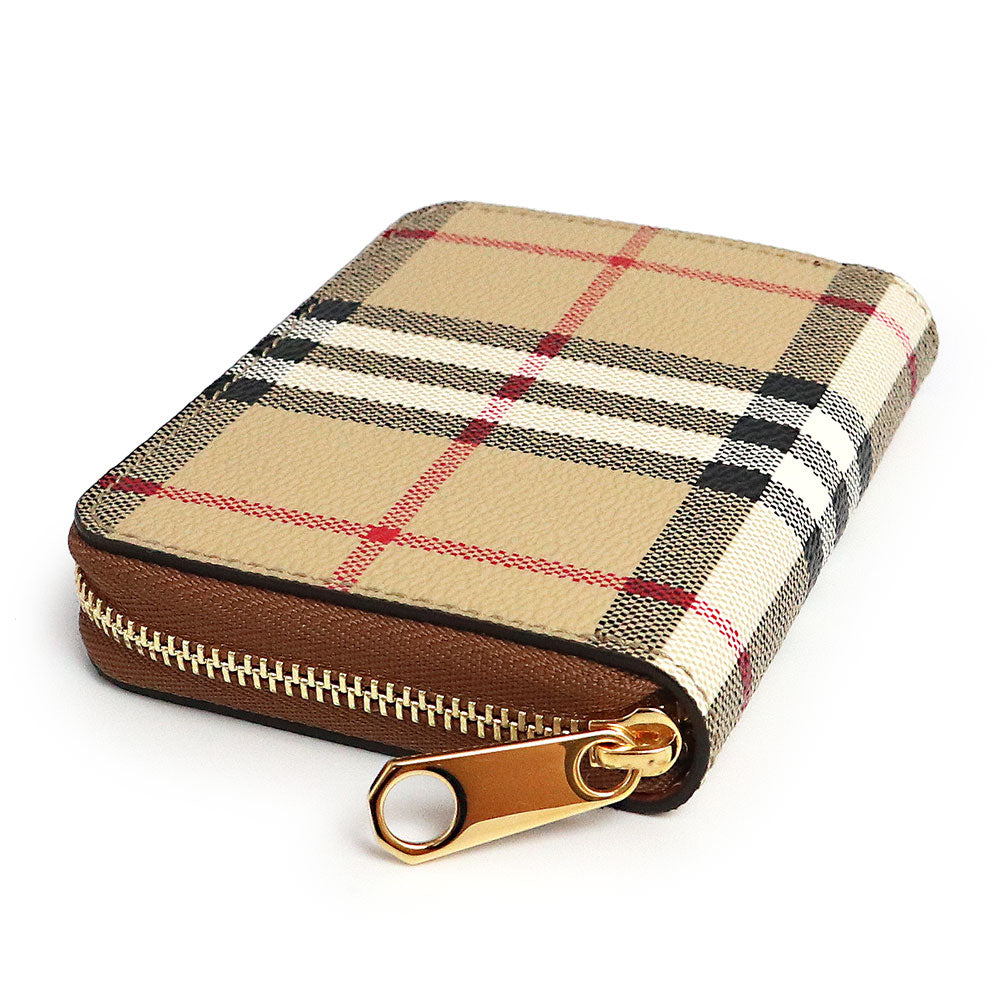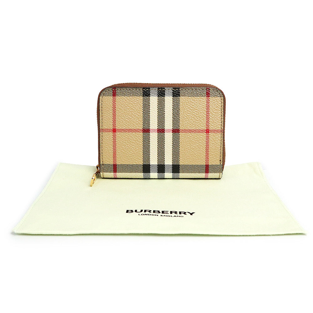 【美品】バーバリー BURBERRY ヴィンテージチェック ジップウォレット コインケース 小銭入れ 財布 コーティングキャンバス カーフスキン レザー ベージュ ブラウン ゴールド金具 8094439