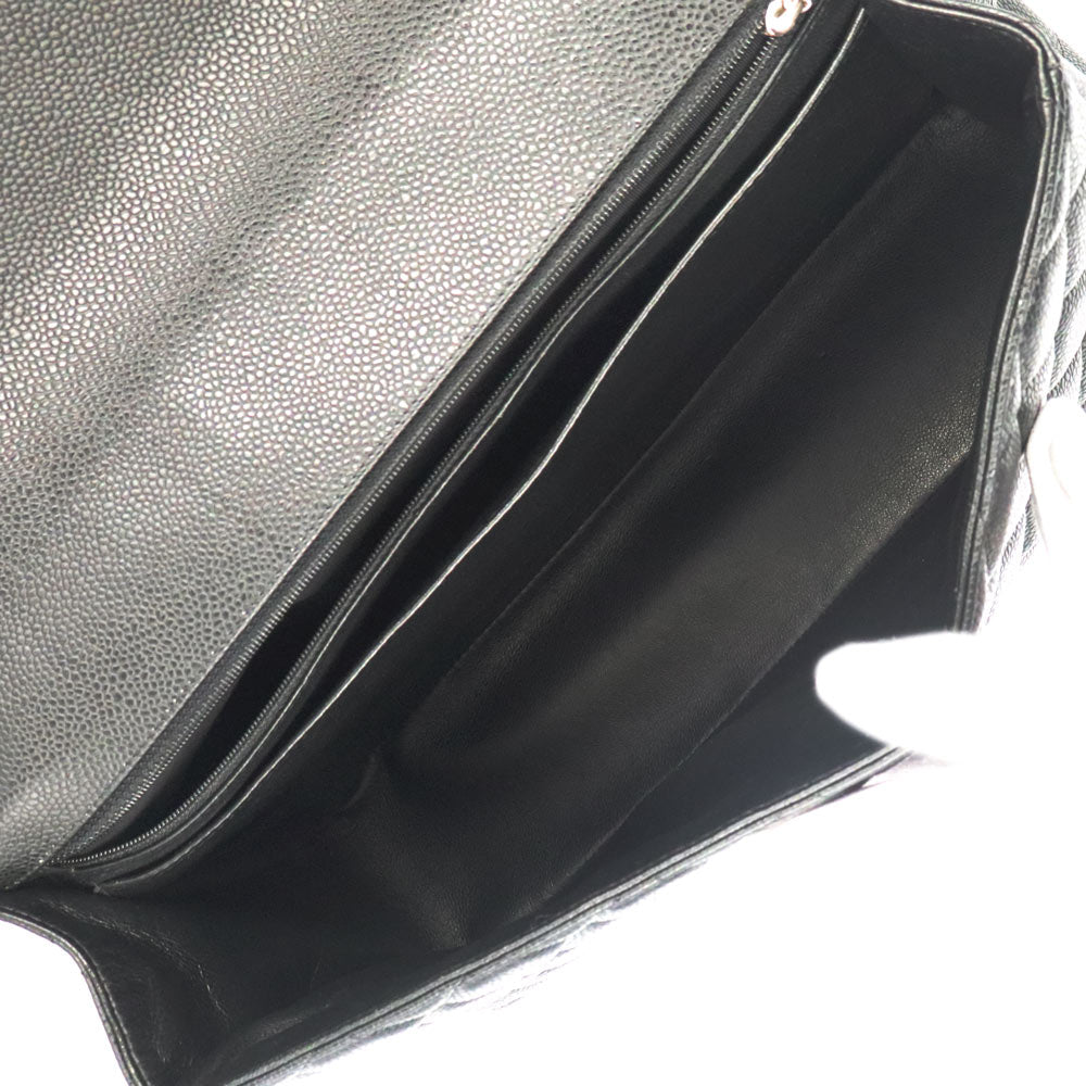 【美品】シャネル CHANEL デカマトラッセ 34 チェーン ショルダーバッグ 斜め掛け 2WAY キャビアスキン レザー ブラック シルバー金具 A58601