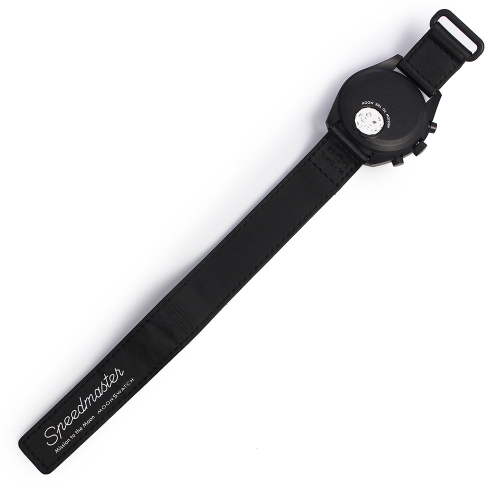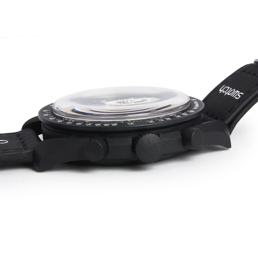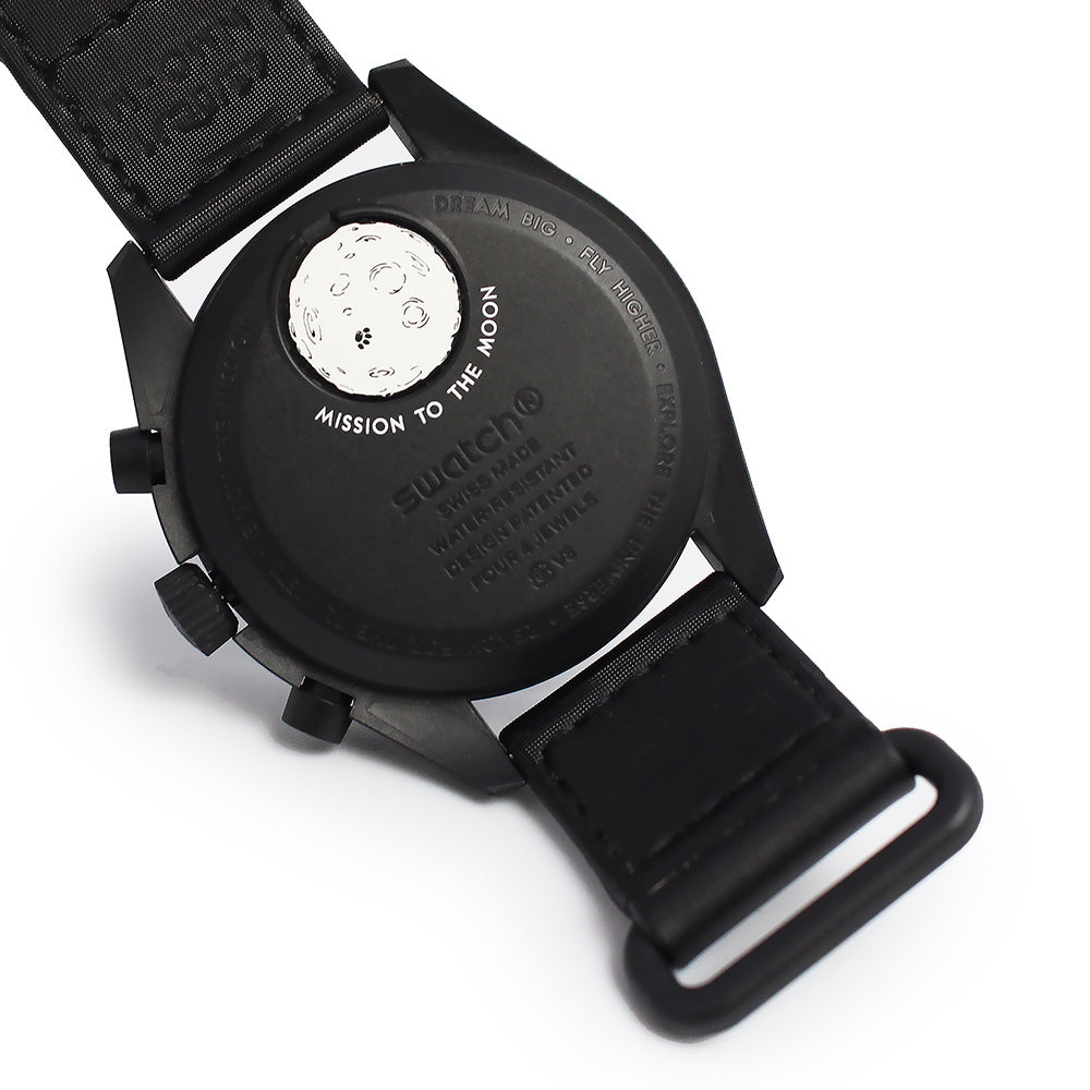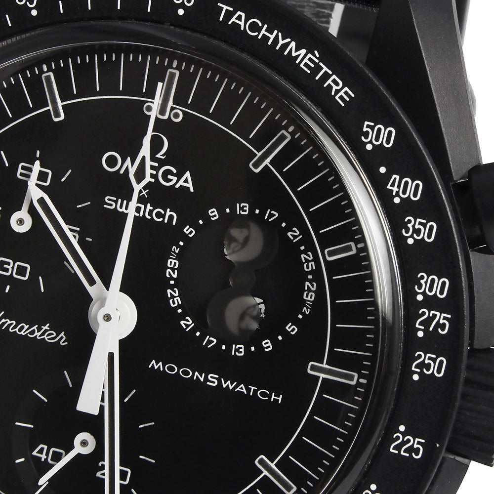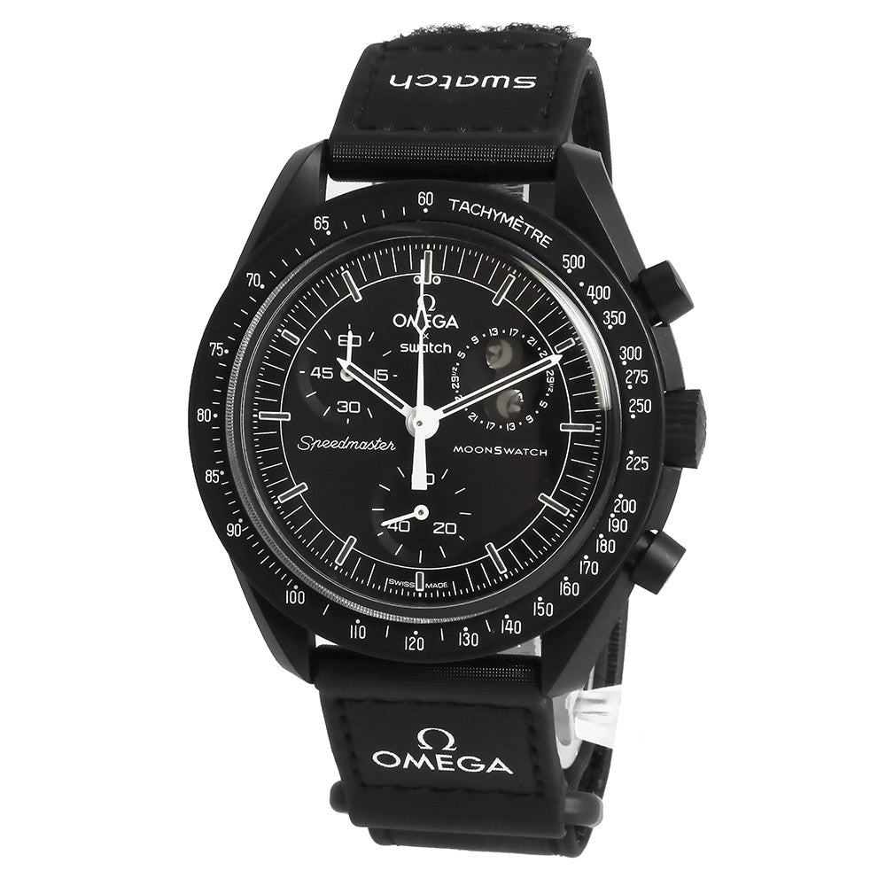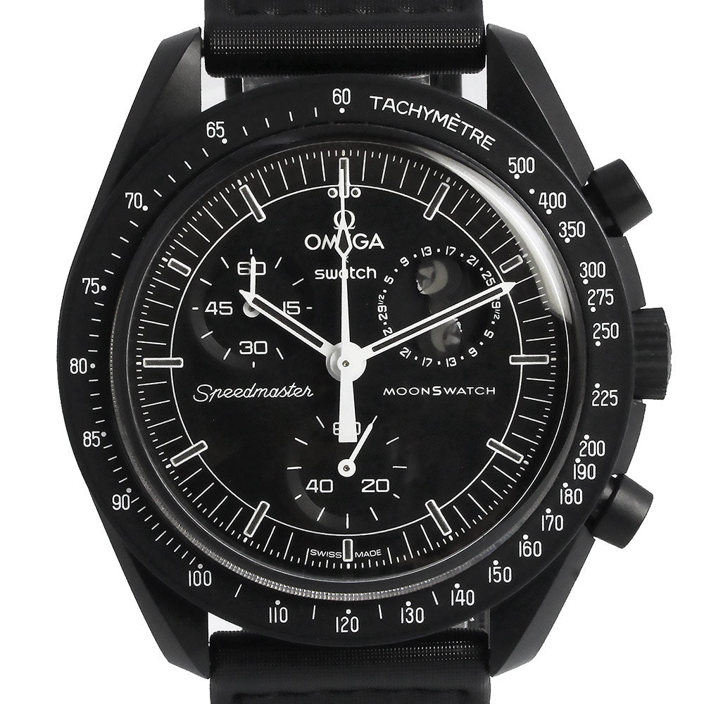【美品】オメガ OMEGA スウォッチ Swatch ミッション トゥ ムーンフェイズ ニュームーン スヌーピー 限定モデル クロノグラフ クオーツ 腕時計 ナイロン バイオセラミック ブラック SO33B700