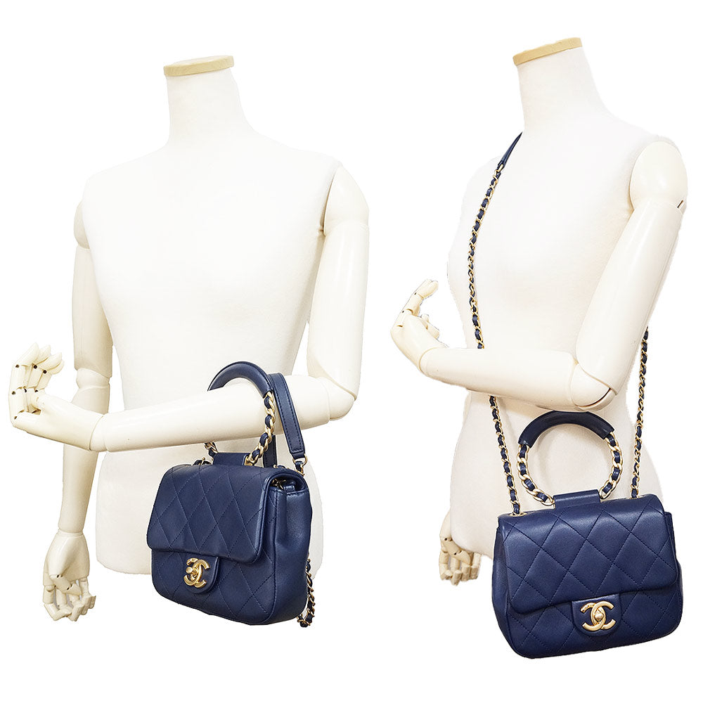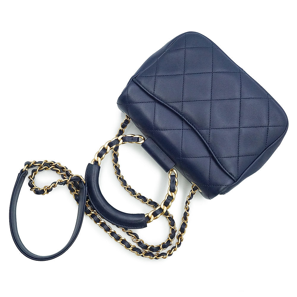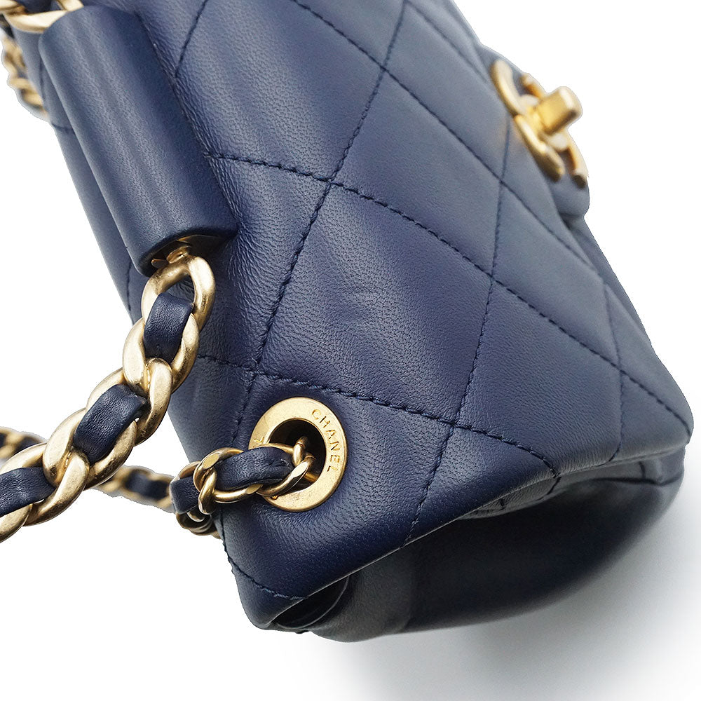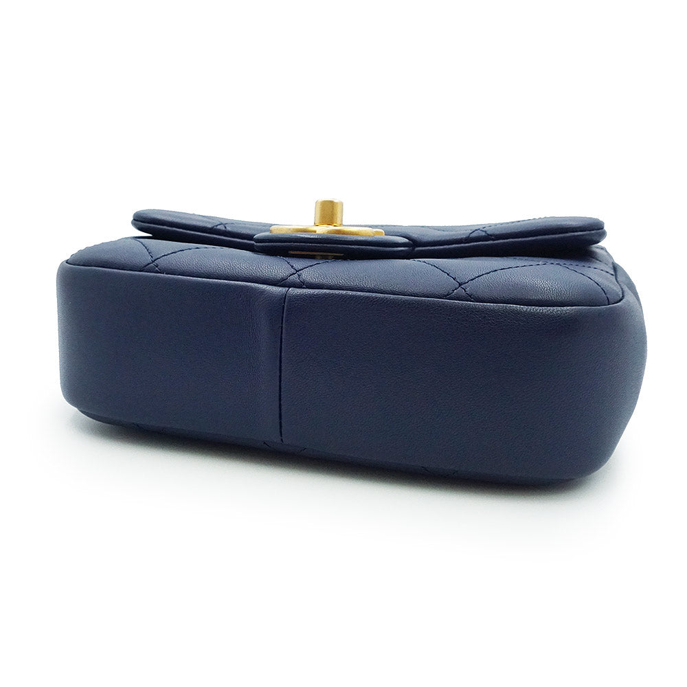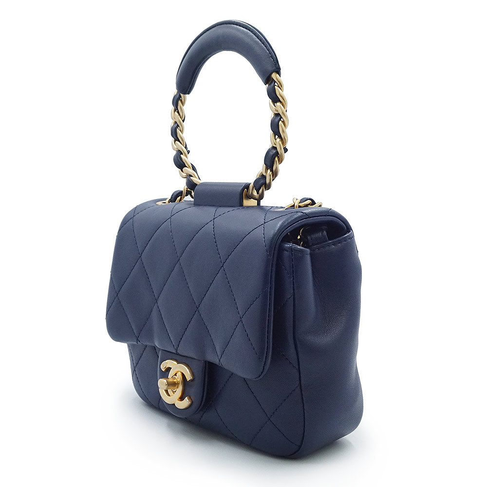 【美品】シャネル CHANEL マトラッセ ココマーク スモール フラップ チェーン 2WAY ショルダー ハンドバッグ 斜め掛け ラムスキン レザー ネイビー アンティークゴールド金具 AS1357