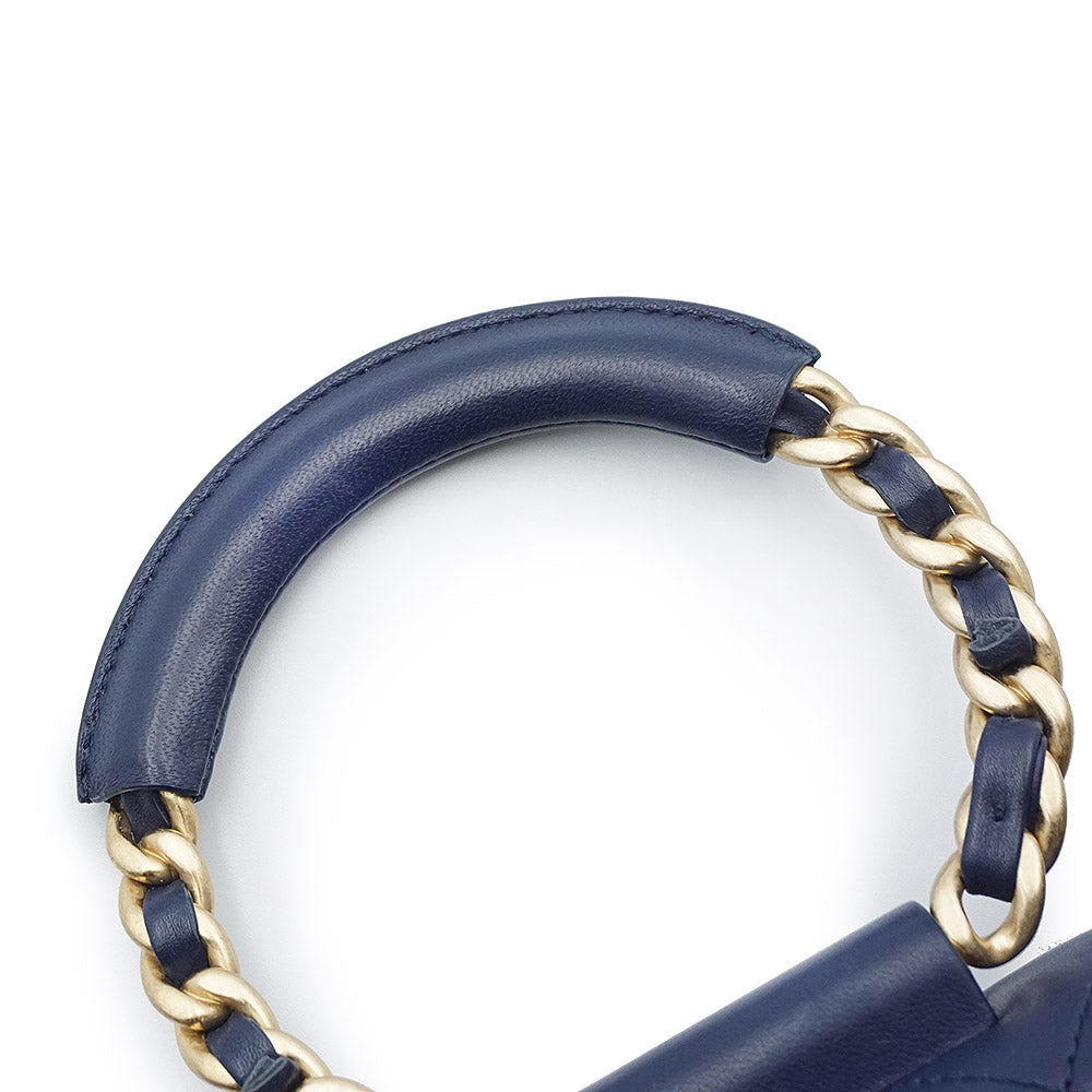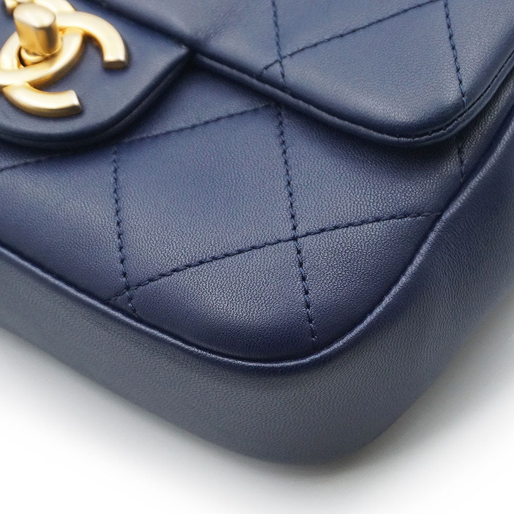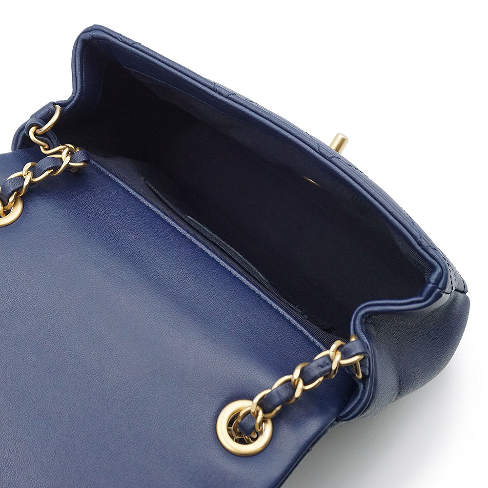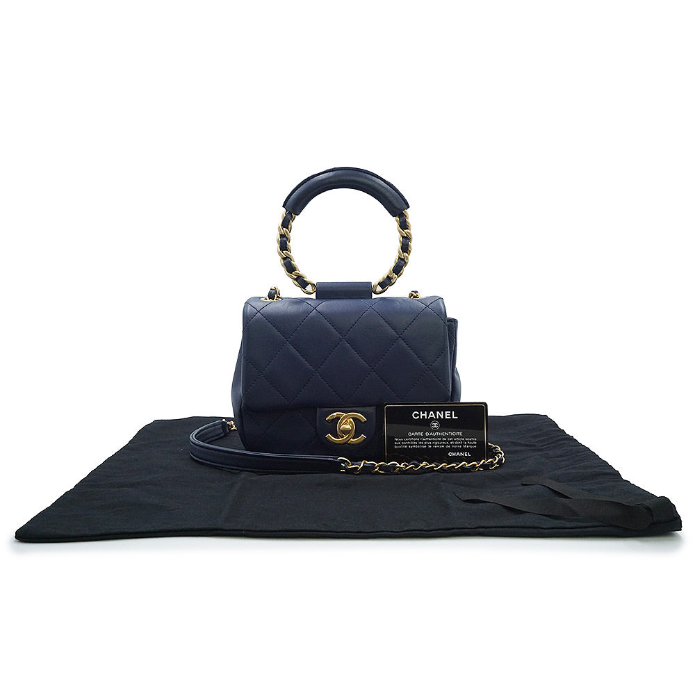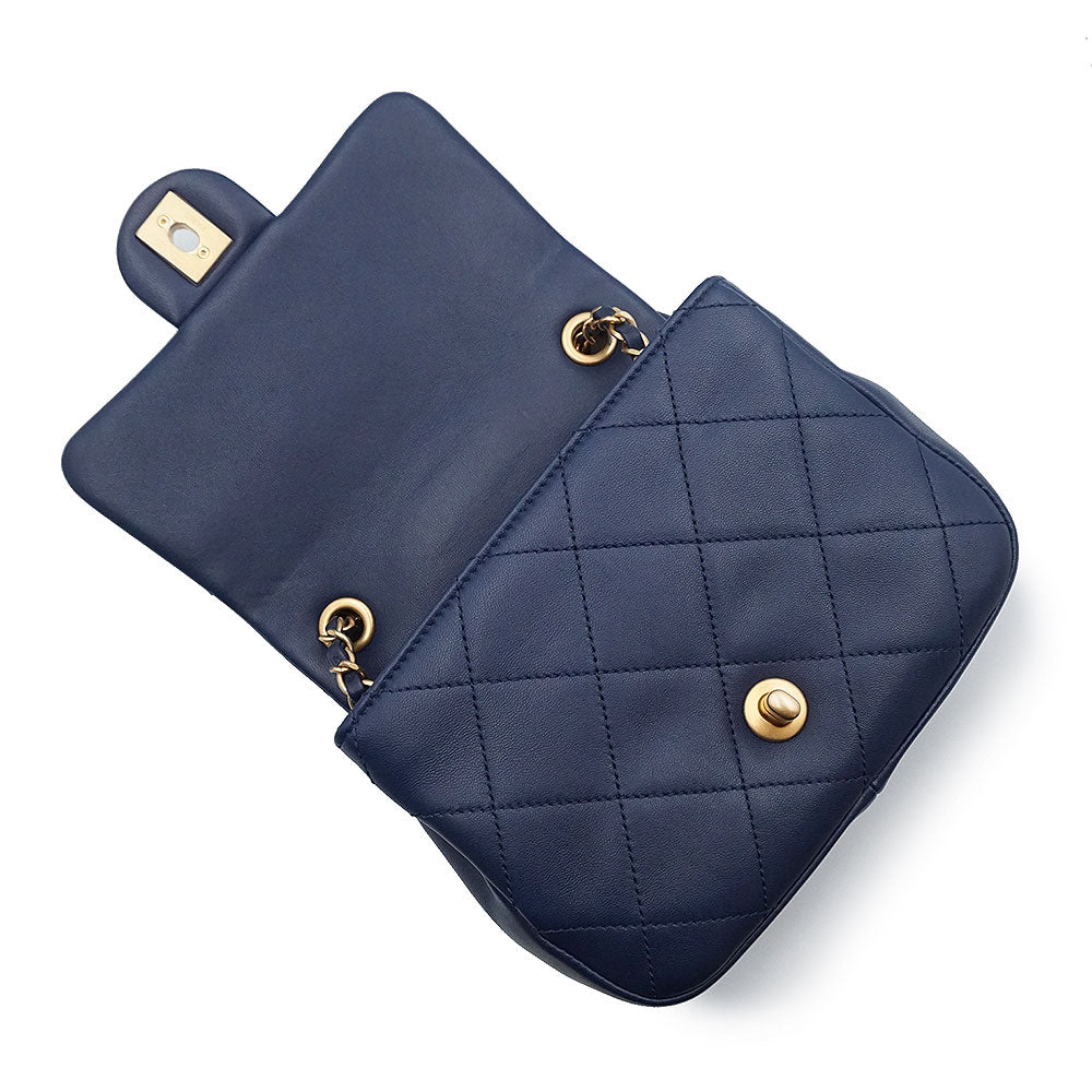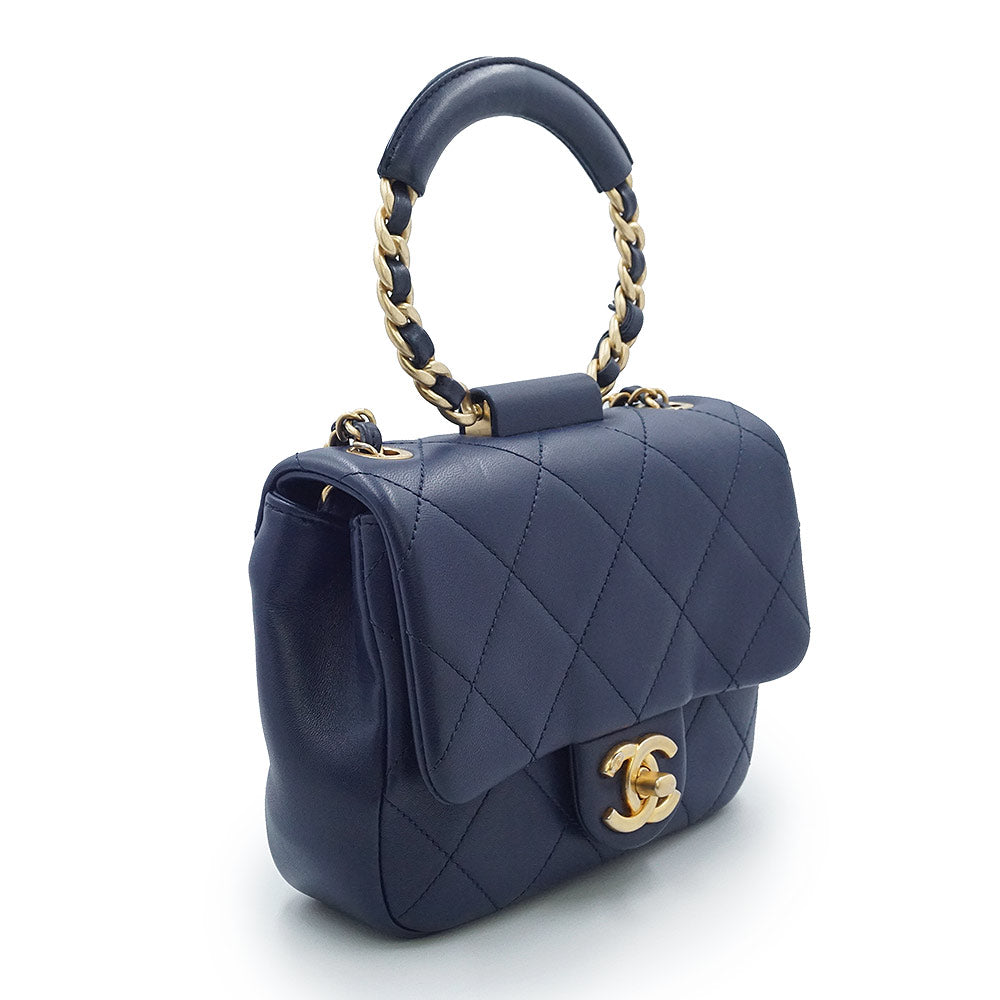 【美品】シャネル CHANEL マトラッセ ココマーク スモール フラップ チェーン 2WAY ショルダー ハンドバッグ 斜め掛け ラムスキン レザー ネイビー アンティークゴールド金具 AS1357