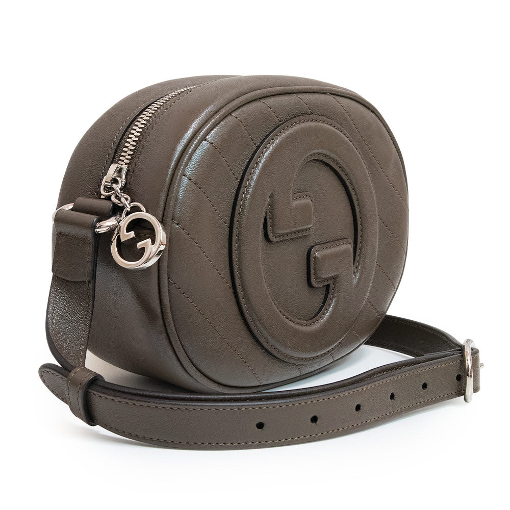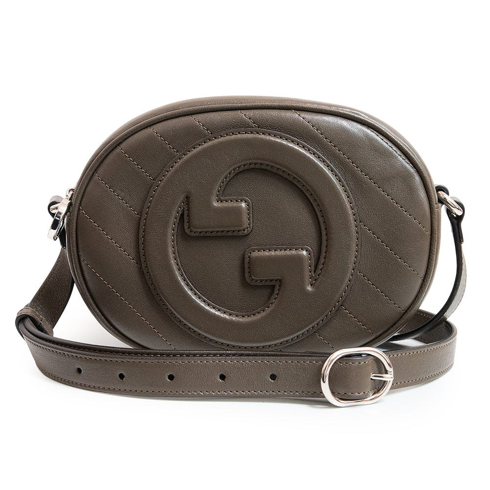 グッチのショルダーバッグ。インターロッキングGエンボスがデザインのアクセントになっています。コンパクトで使いやすいサイズ感が魅力的で、ちょっとしたお出かけにもピッタリです。 |