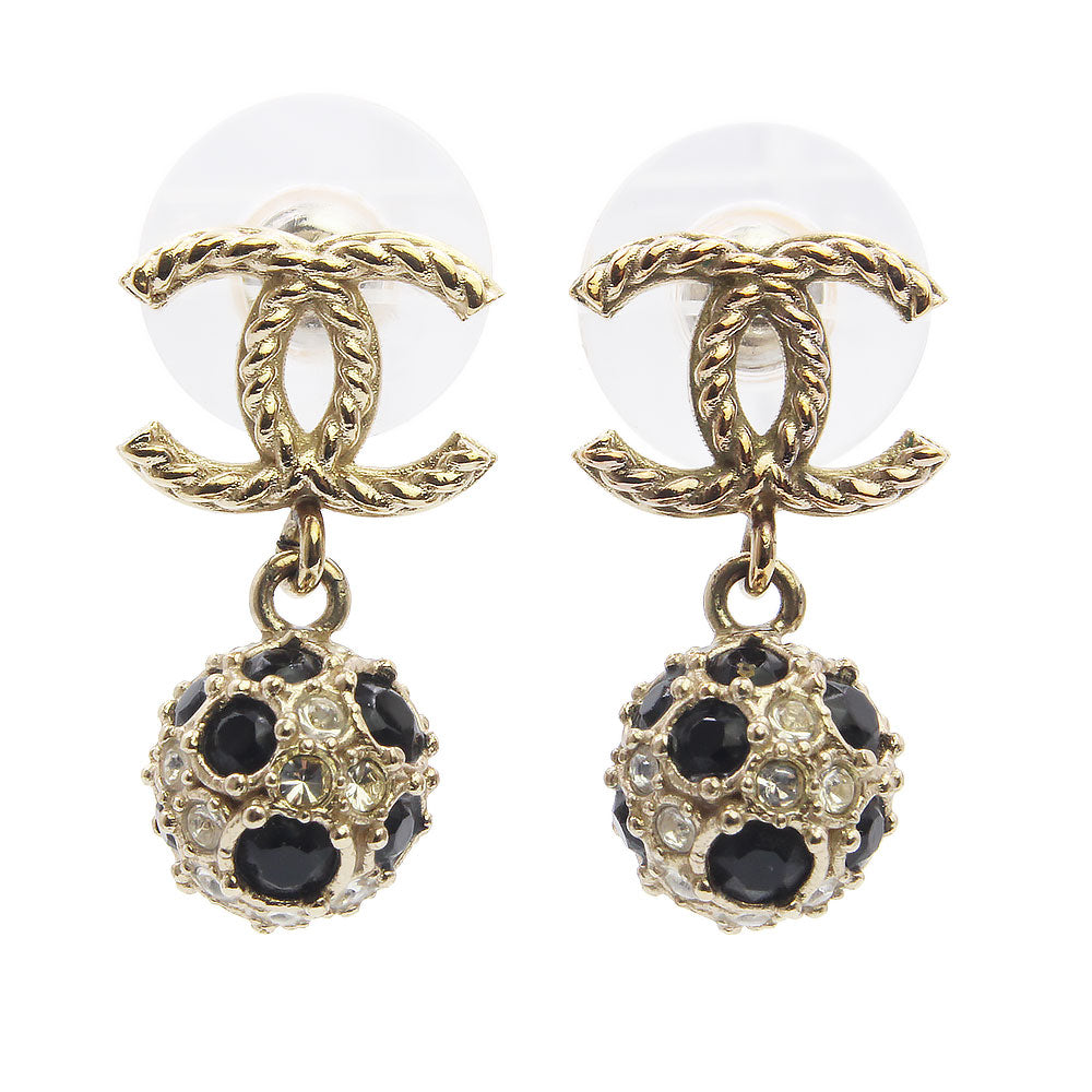 【未使用保管品】シャネル CHANEL ラインストーン ミラーボール ココマーク スイング ピアス ゴールド ブラック AB0582