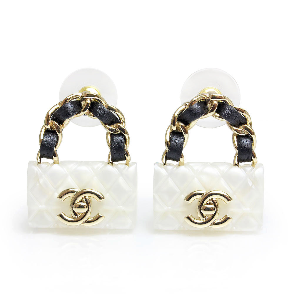 【新品・未使用品】シャネル CHANEL マトラッセ バッグ チェーン ココマーク ピアス レジン カーフスキン レザー ホワイト ブラック ゴールド金具 ABA007 箱付