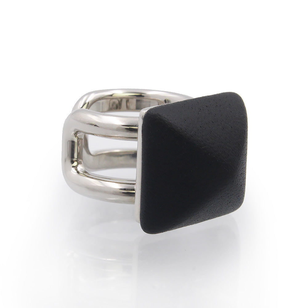 【新品・未使用品】エルメス HERMES メドール ガイネ イヤーカフ イヤリング ヴォースイフト レザー ノワール ブラック シルバー金具 箱付