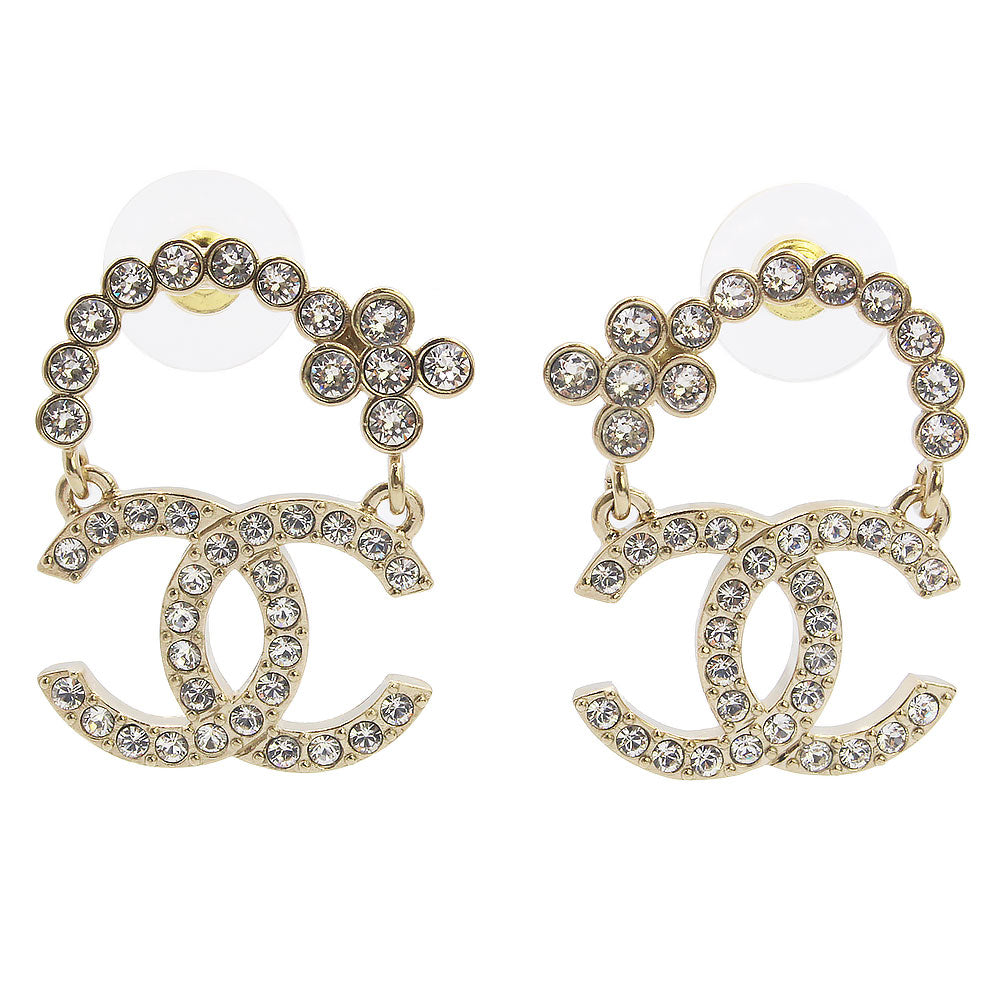【新品・未使用品】シャネル CHANEL ラインストーン ココマーク カメリア スイング ピアス ゴールド ABB315