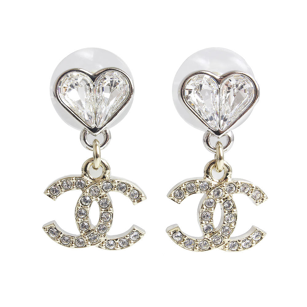 【新品・未使用品】シャネル CHANEL ハート ココマーク ラインストーン スイング ピアス シルバー ゴールド ABA909 箱付